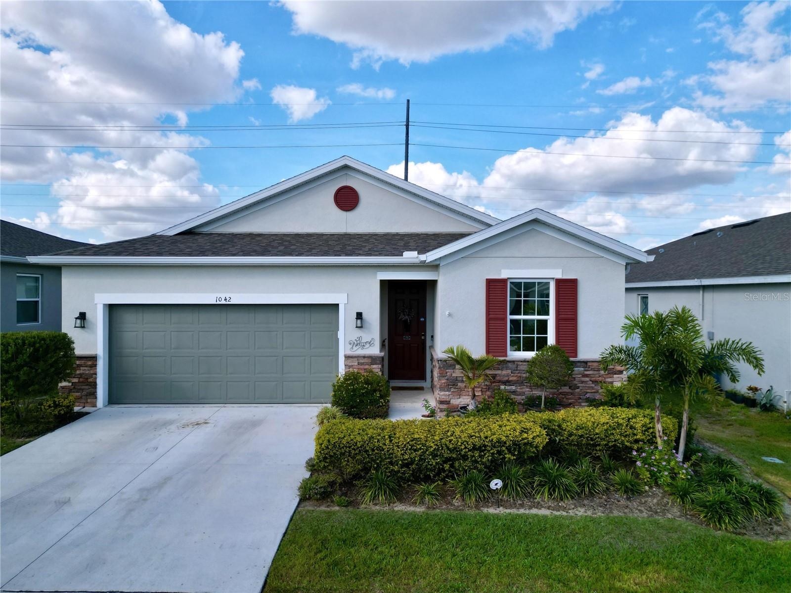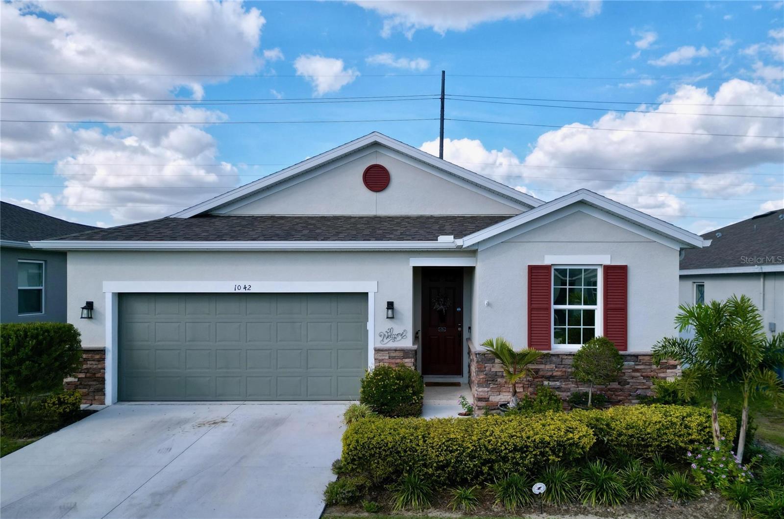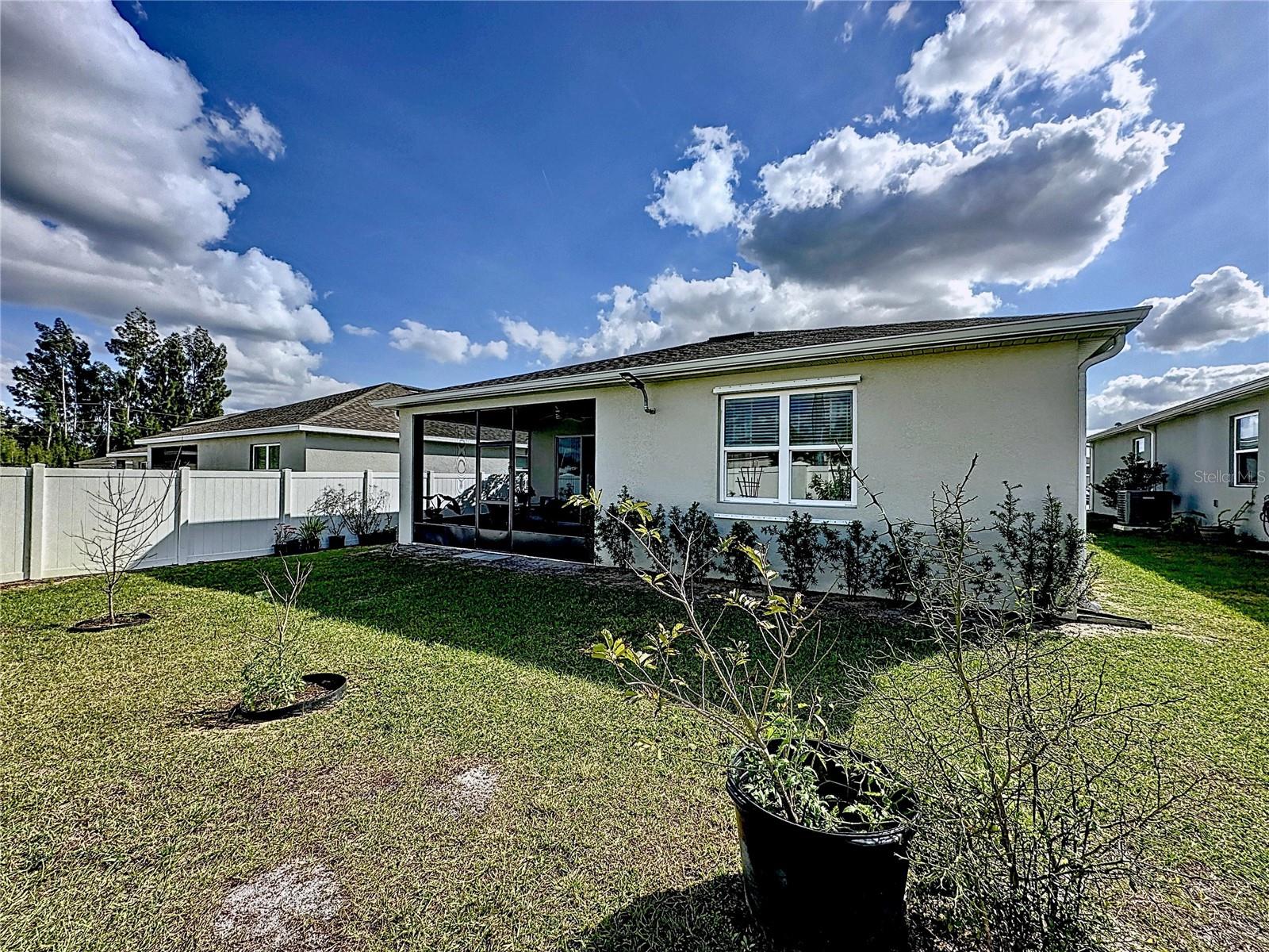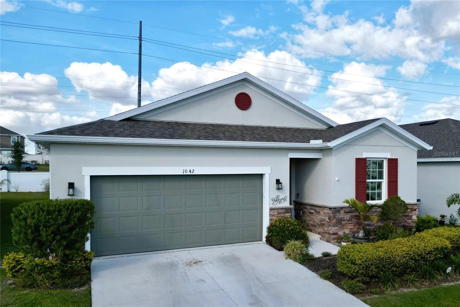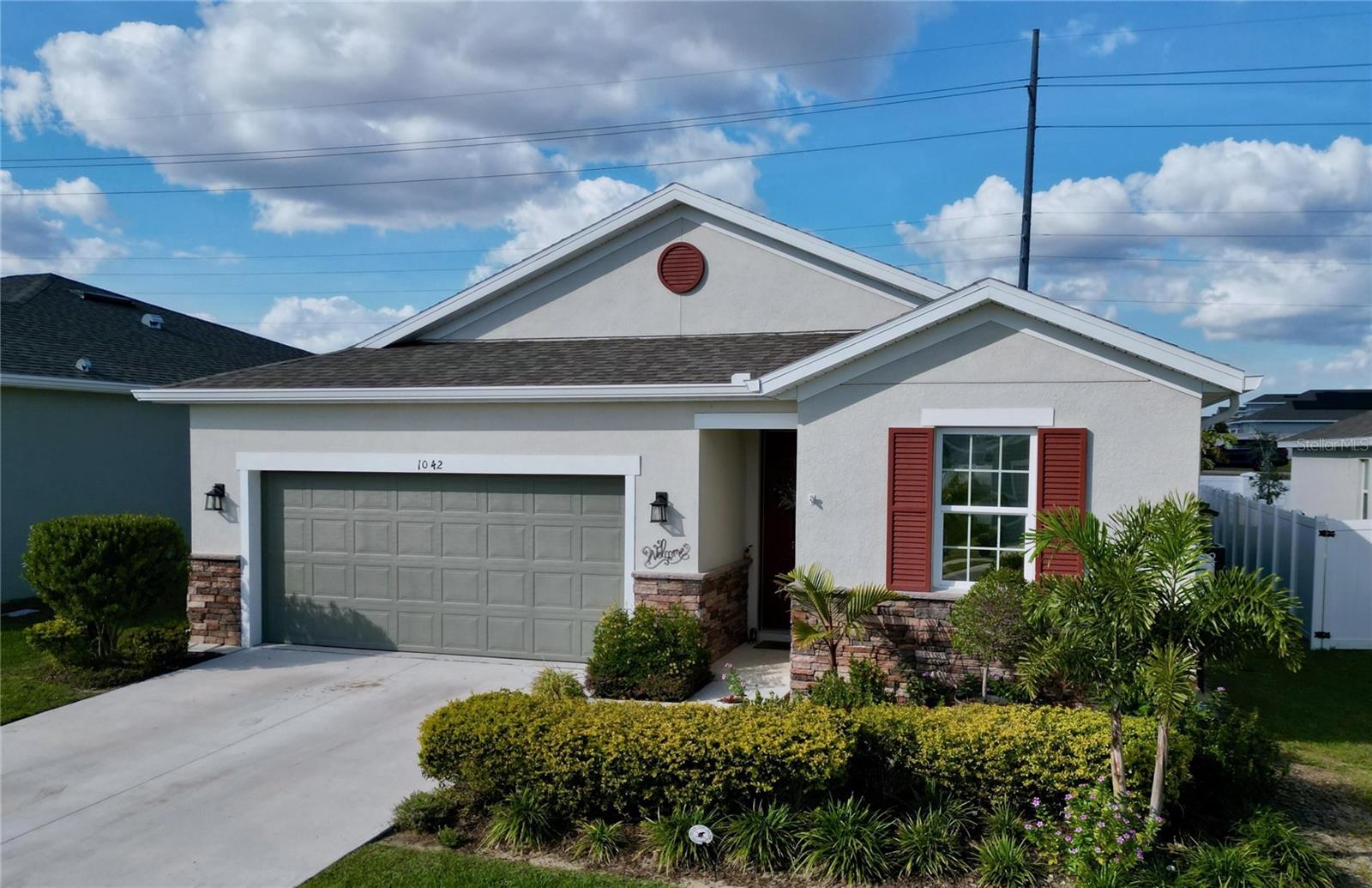 Welcome, you can't miss this great opportunity, This beautiful home has contemporary tile floors that flow seamlessly through the main hallway, dining room, kitchen, and great room. The luxury-style kitchen is a chef's dream, with sleek quartz countertops, 42" cabinets, and high-end GE stainless steel appliances. Imagine coming home from a long day and unwinding on a spacious screened-in lanai, offering privacy with no rear neighbors and a premium lot for added peace of mind. The spacious master suite offers a retreat-like experience, complete with an en-suite bathroom with a gorgeous tiled shower stall and double vanity. This home is packed with elegant upgrades, from the sleek stone facade and custom closet organizer in the master bedroom to the gas stove and upgraded central air conditioning with UV light. Additional details that make this property extraordinary include gutters a covered porch for outdoor enjoyment, and a ladder in the garage for extra storage so you don't have to pay for storage anymore. There are ceiling fans in the living room and lanai for added comfort. Beautiful lighting under the kitchen counters, blinds on every window for privacy, and a water filtration system with UV technology for the entire home. The landscaped backyard is a tropical paradise, with fruit trees such as soursop, avocado, acerola, grapefruit, fig, prunes, mango, papaya, and pennyroyal. Don't miss this incredible opportunity to own a home with luxurious finishes and practical amenities.