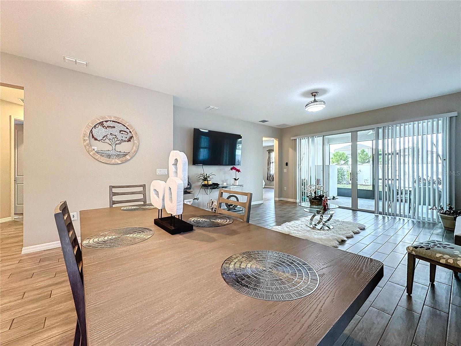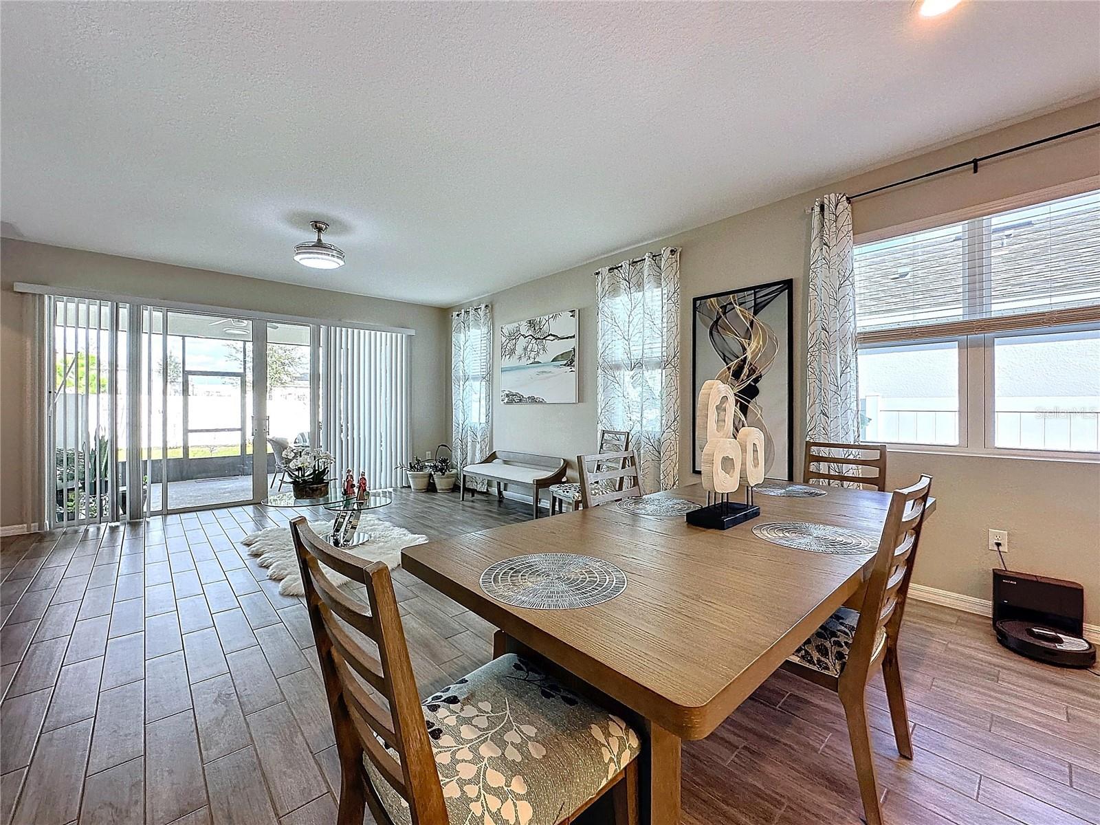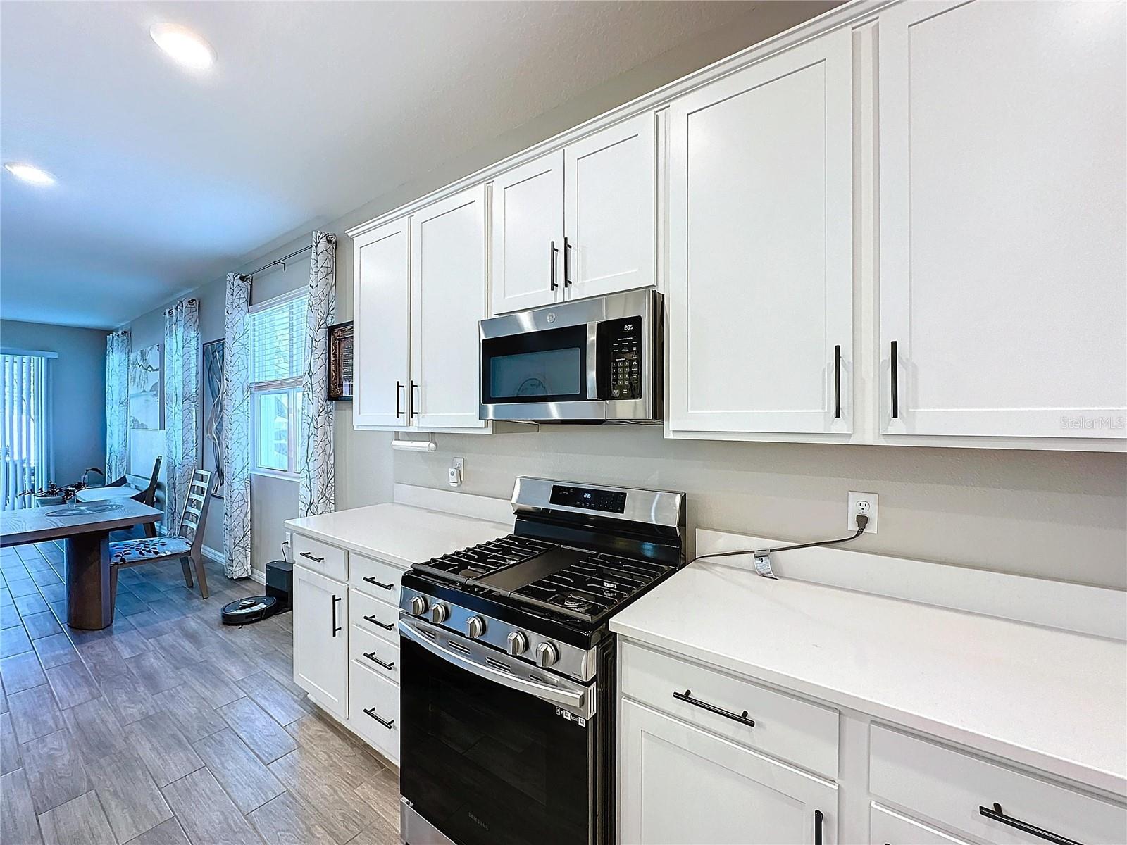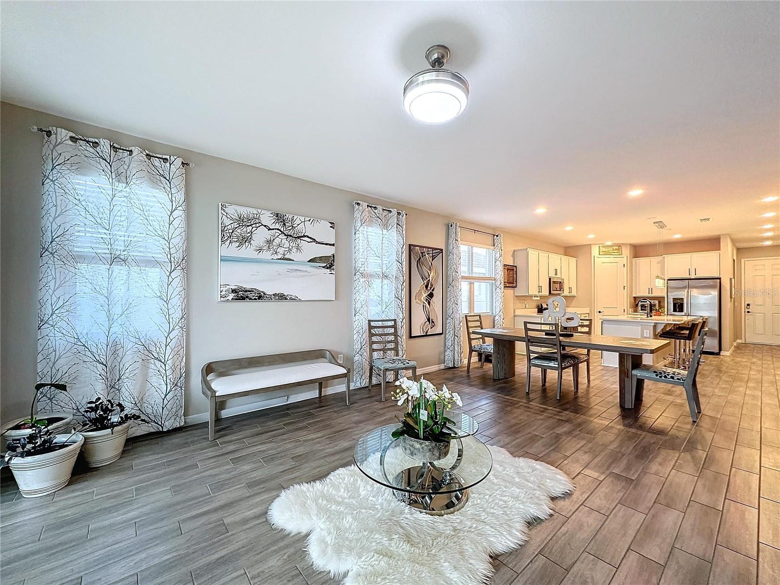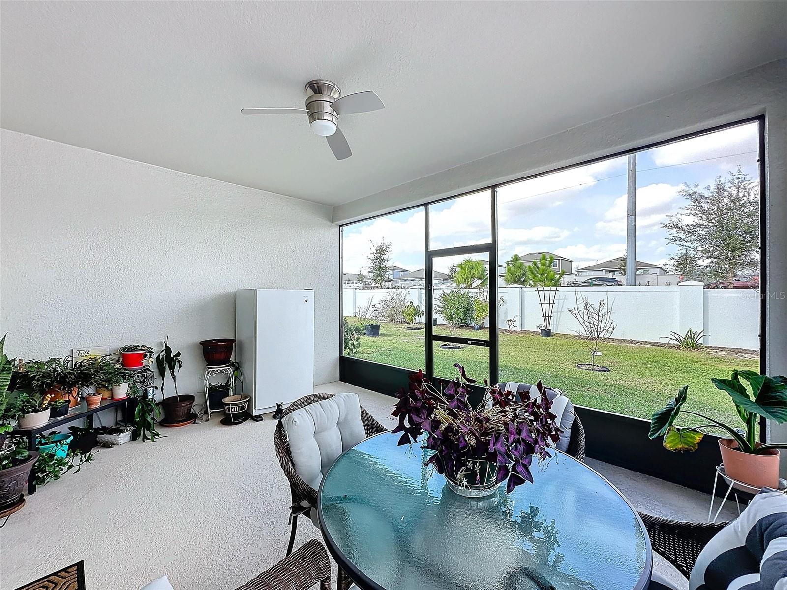 Welcome, you can't miss this great opportunity, This beautiful home has contemporary tile floors that flow seamlessly through the main hallway, dining room, kitchen, and great room. The luxury-style kitchen is a chef's dream, with sleek quartz countertops, 42" cabinets, and high-end GE stainless steel appliances. Imagine coming home from a long day and unwinding on a spacious screened-in lanai, offering privacy with no rear neighbors and a premium lot for added peace of mind. The spacious master suite offers a retreat-like experience, complete with an en-suite bathroom with a gorgeous tiled shower stall and double vanity. This home is packed with elegant upgrades, from the sleek stone facade and custom closet organizer in the master bedroom to the gas stove and upgraded central air conditioning with UV light. Additional details that make this property extraordinary include gutters a covered porch for outdoor enjoyment, and a ladder in the garage for extra storage so you don't have to pay for storage anymore. There are ceiling fans in the living room and lanai for added comfort. Beautiful lighting under the kitchen counters, blinds on every window for privacy, and a water filtration system with UV technology for the entire home. The landscaped backyard is a tropical paradise, with fruit trees such as soursop, avocado, acerola, grapefruit, fig, prunes, mango, papaya, and pennyroyal. Don't miss this incredible opportunity to own a home with luxurious finishes and practical amenities.