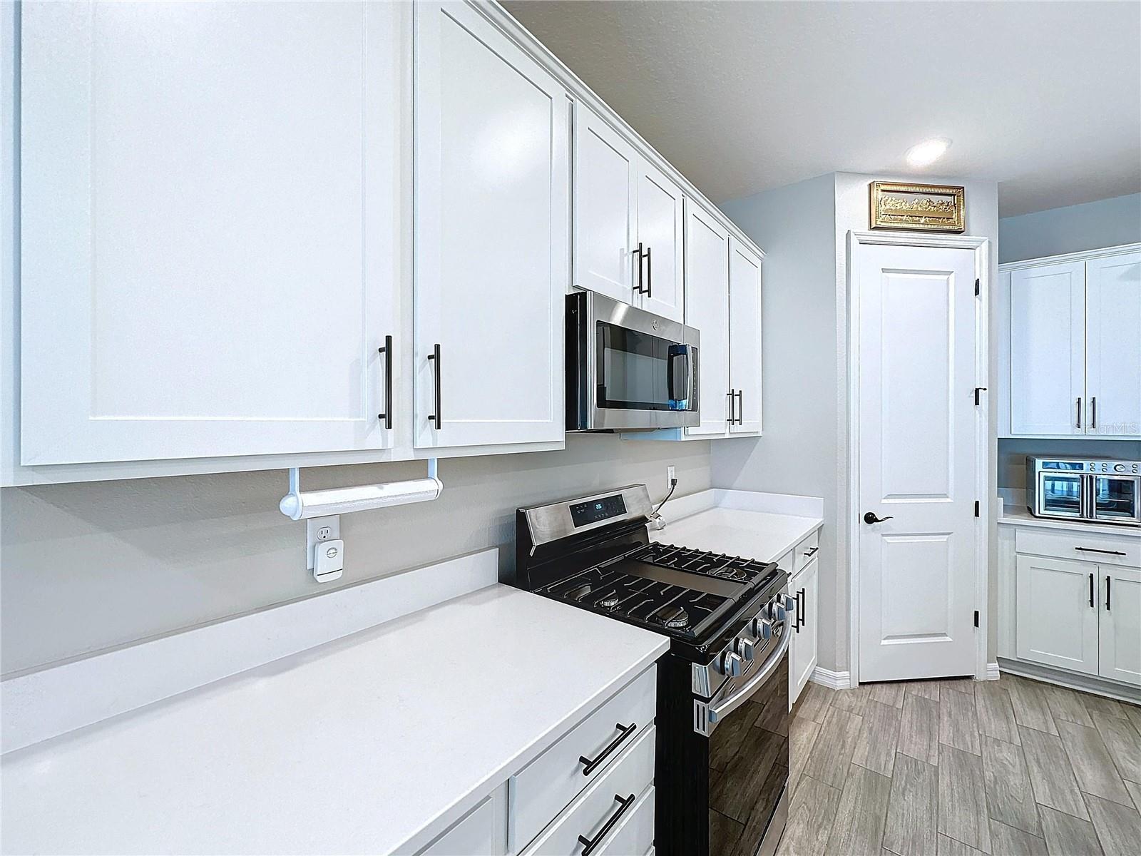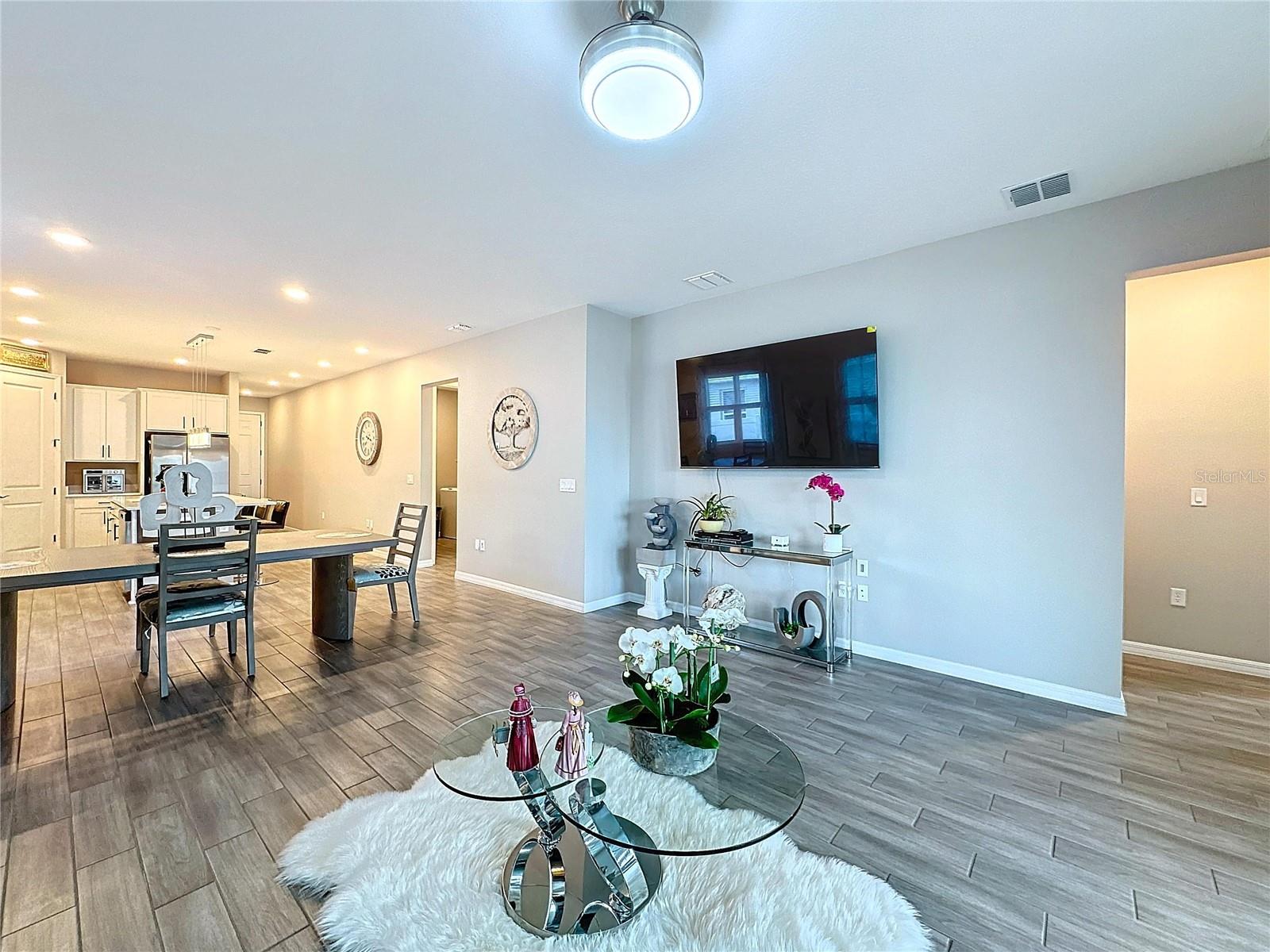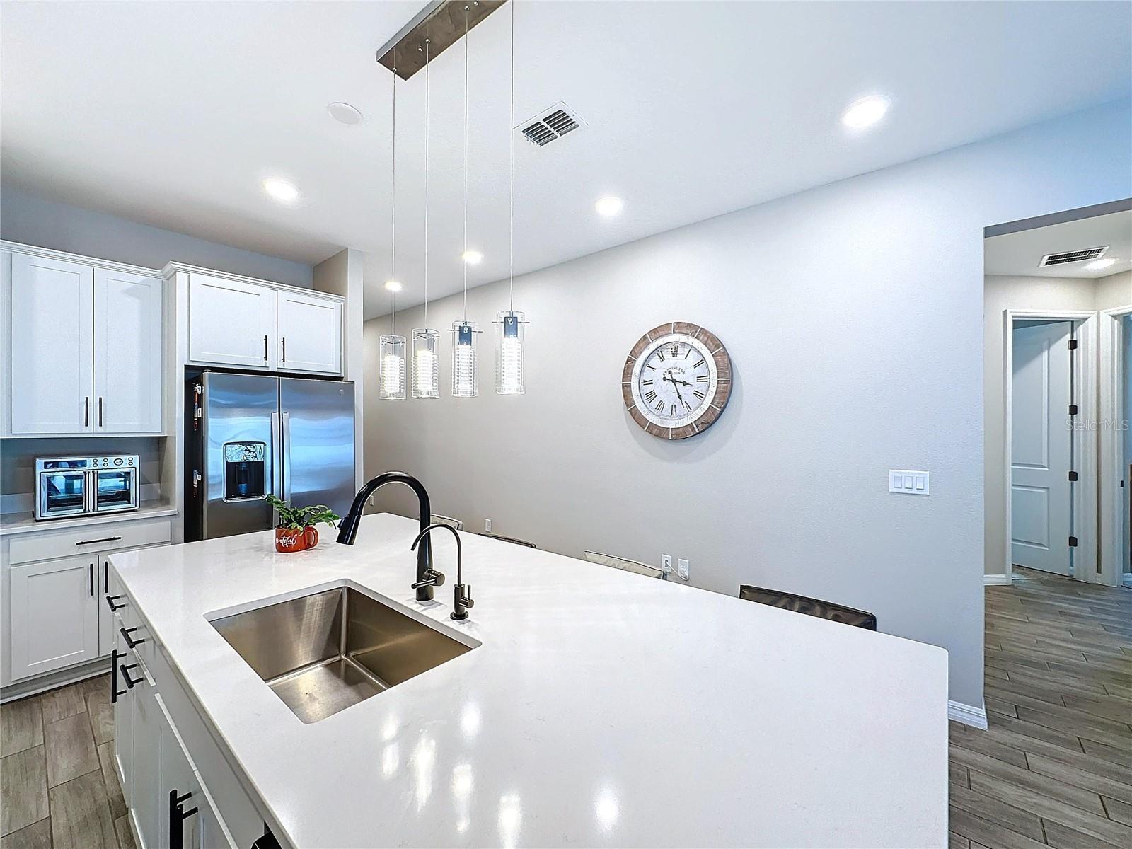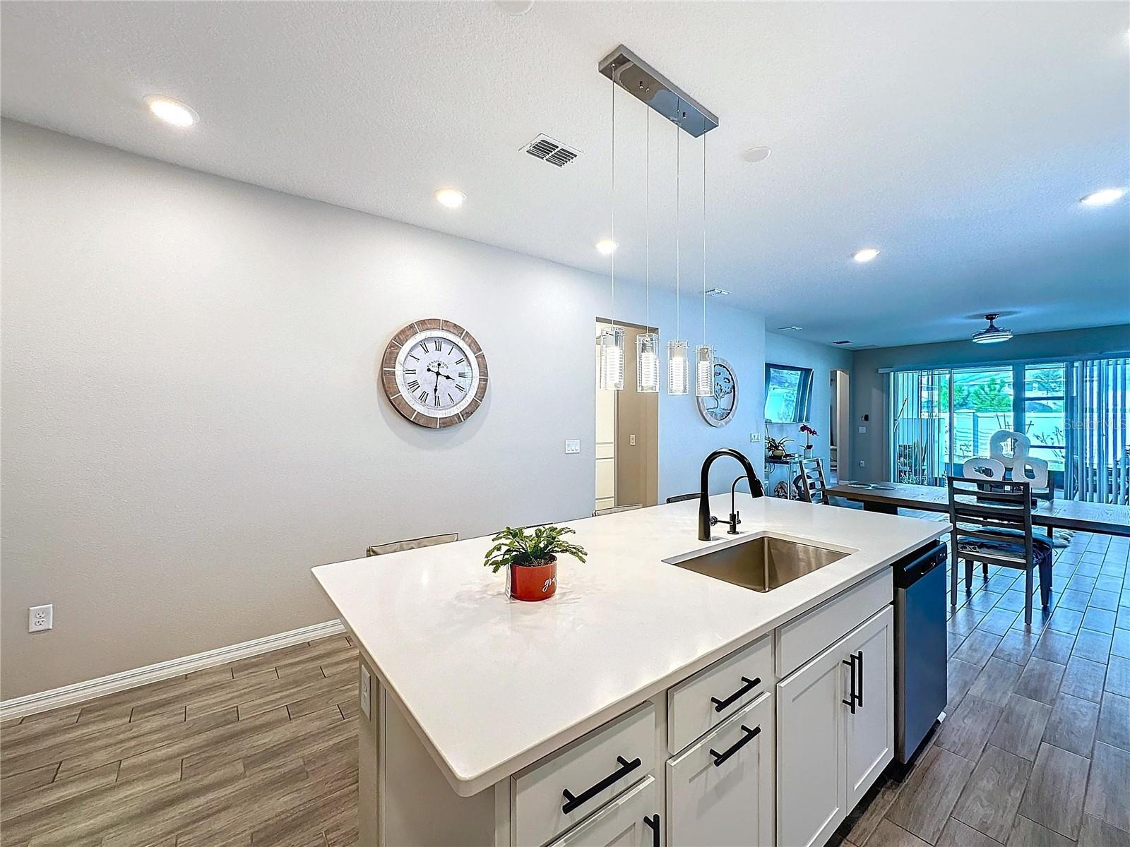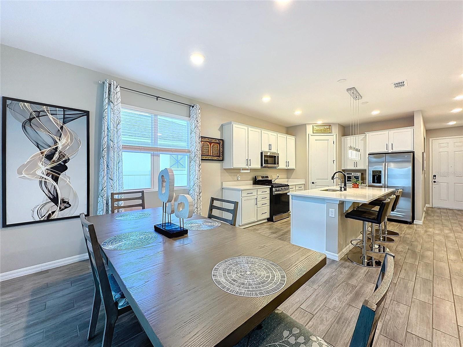 Welcome, you can't miss this great opportunity, This beautiful home has contemporary tile floors that flow seamlessly through the main hallway, dining room, kitchen, and great room. The luxury-style kitchen is a chef's dream, with sleek quartz countertops, 42" cabinets, and high-end GE stainless steel appliances. Imagine coming home from a long day and unwinding on a spacious screened-in lanai, offering privacy with no rear neighbors and a premium lot for added peace of mind. The spacious master suite offers a retreat-like experience, complete with an en-suite bathroom with a gorgeous tiled shower stall and double vanity. This home is packed with elegant upgrades, from the sleek stone facade and custom closet organizer in the master bedroom to the gas stove and upgraded central air conditioning with UV light. Additional details that make this property extraordinary include gutters a covered porch for outdoor enjoyment, and a ladder in the garage for extra storage so you don't have to pay for storage anymore. There are ceiling fans in the living room and lanai for added comfort. Beautiful lighting under the kitchen counters, blinds on every window for privacy, and a water filtration system with UV technology for the entire home. The landscaped backyard is a tropical paradise, with fruit trees such as soursop, avocado, acerola, grapefruit, fig, prunes, mango, papaya, and pennyroyal. Don't miss this incredible opportunity to own a home with luxurious finishes and practical amenities.