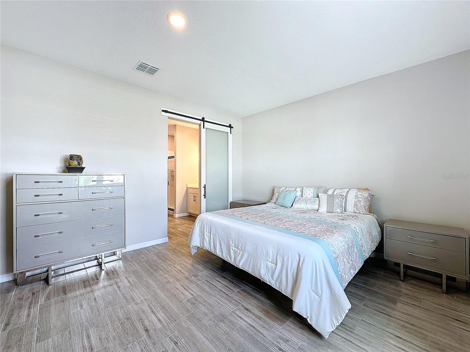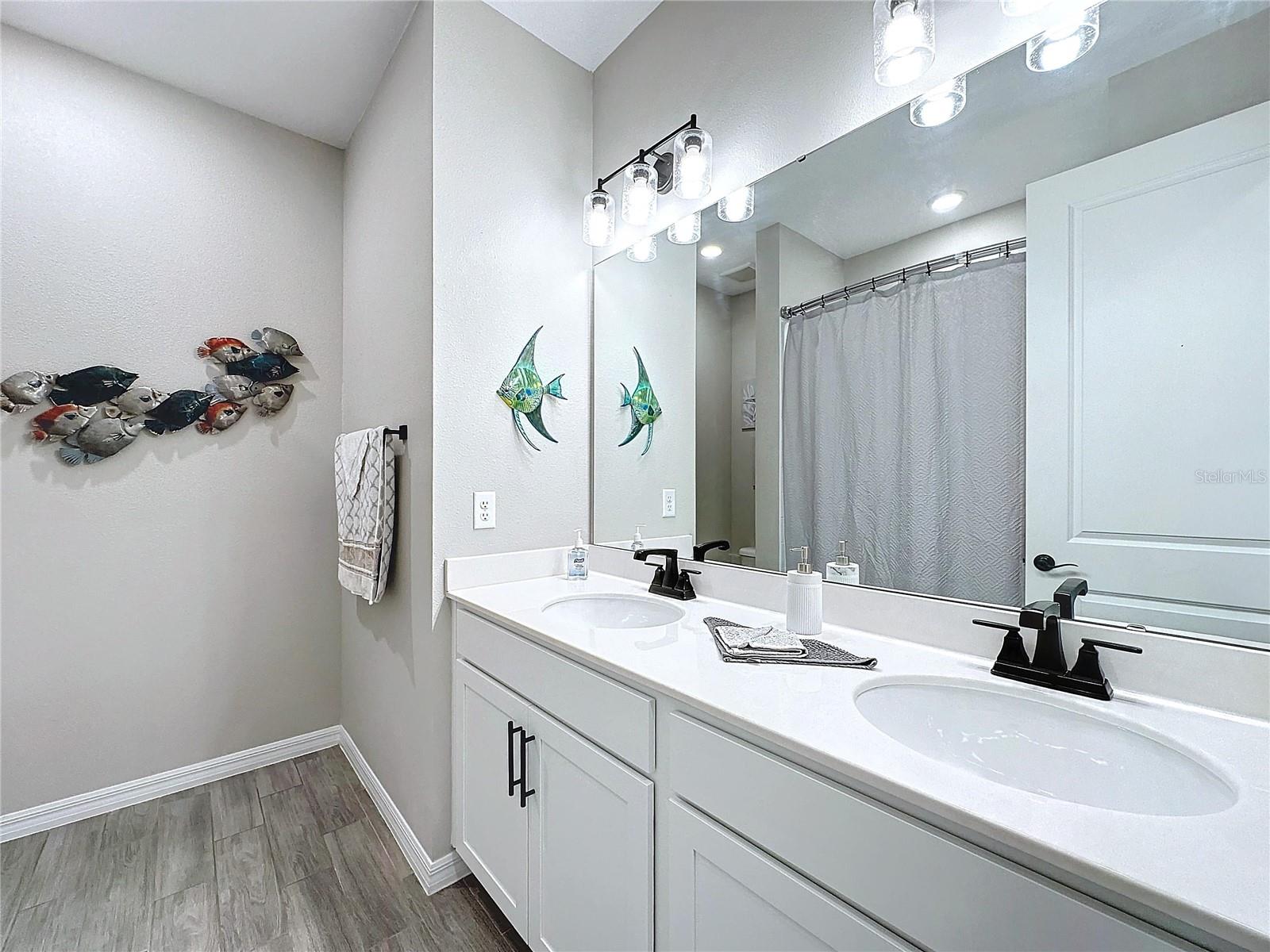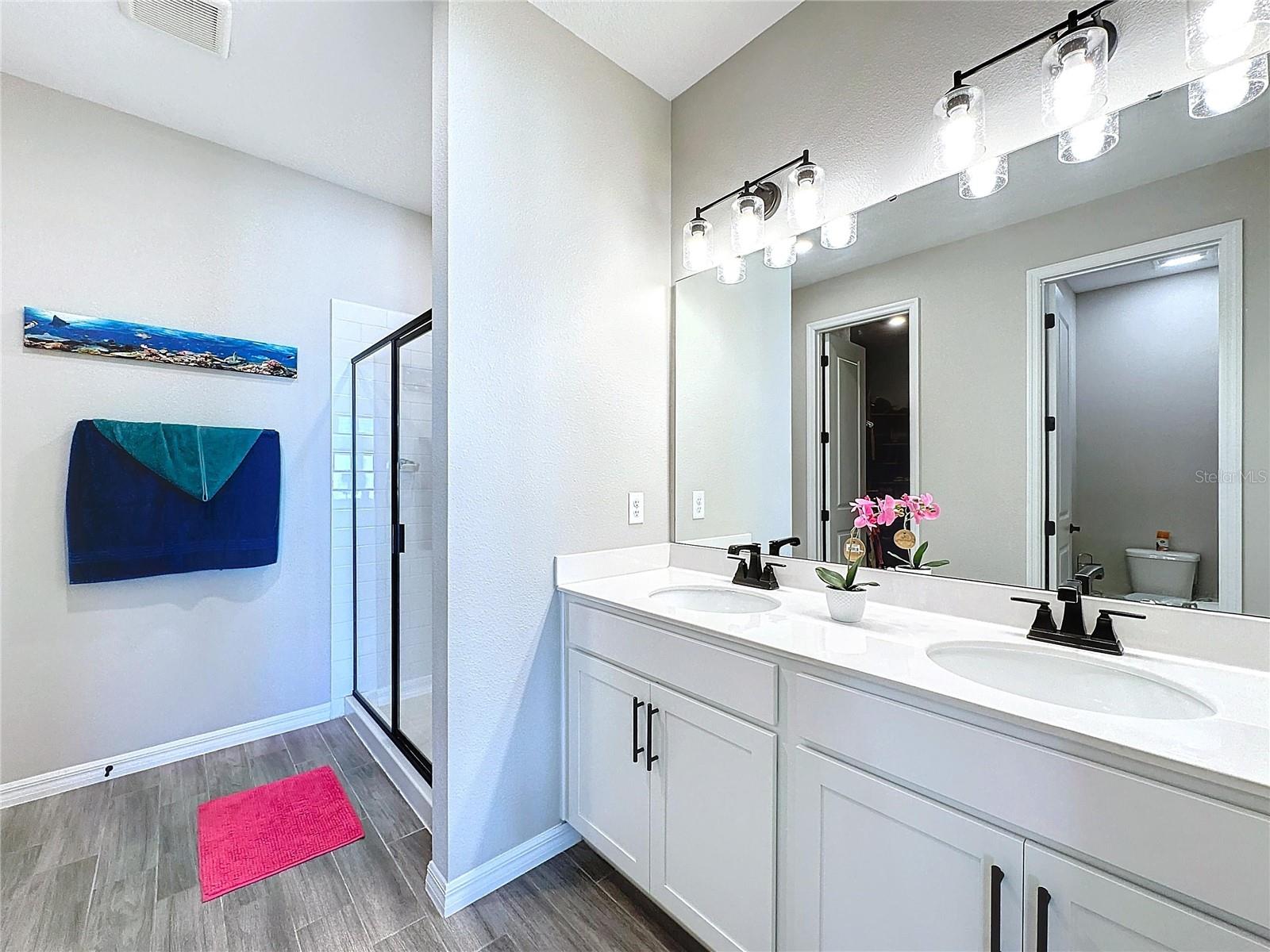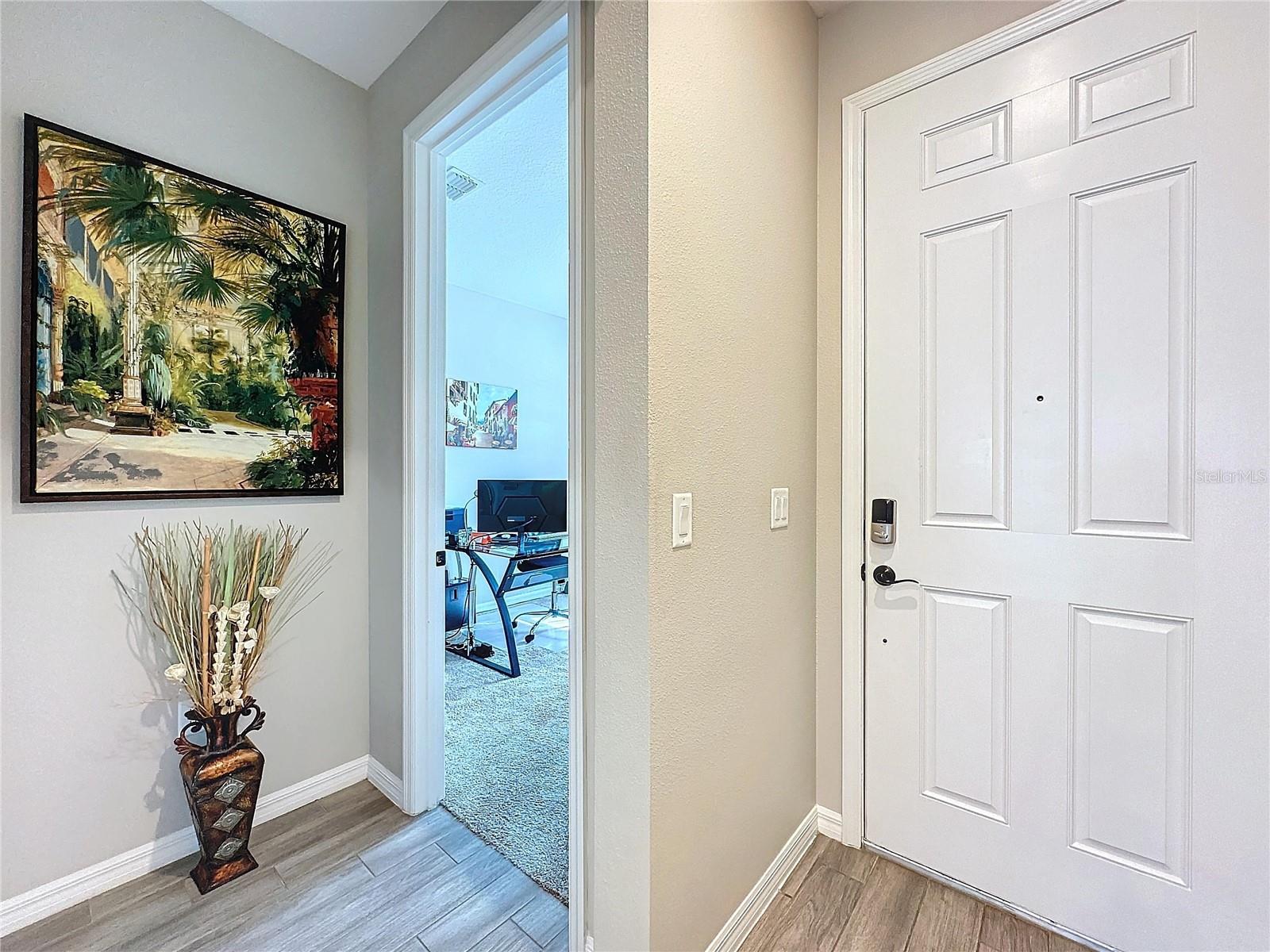 Welcome, you can't miss this great opportunity, This beautiful home has contemporary tile floors that flow seamlessly through the main hallway, dining room, kitchen, and great room. The luxury-style kitchen is a chef's dream, with sleek quartz countertops, 42" cabinets, and high-end GE stainless steel appliances. Imagine coming home from a long day and unwinding on a spacious screened-in lanai, offering privacy with no rear neighbors and a premium lot for added peace of mind. The spacious master suite offers a retreat-like experience, complete with an en-suite bathroom with a gorgeous tiled shower stall and double vanity. This home is packed with elegant upgrades, from the sleek stone facade and custom closet organizer in the master bedroom to the gas stove and upgraded central air conditioning with UV light. Additional details that make this property extraordinary include gutters a covered porch for outdoor enjoyment, and a ladder in the garage for extra storage so you don't have to pay for storage anymore. There are ceiling fans in the living room and lanai for added comfort. Beautiful lighting under the kitchen counters, blinds on every window for privacy, and a water filtration system with UV technology for the entire home. The landscaped backyard is a tropical paradise, with fruit trees such as soursop, avocado, acerola, grapefruit, fig, prunes, mango, papaya, and pennyroyal. Don't miss this incredible opportunity to own a home with luxurious finishes and practical amenities.