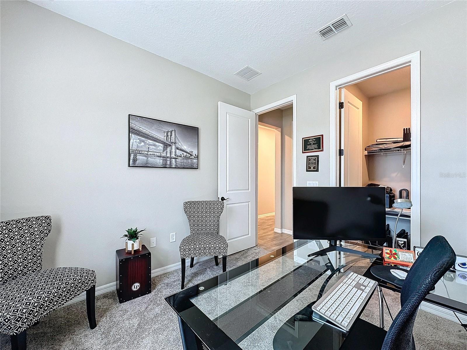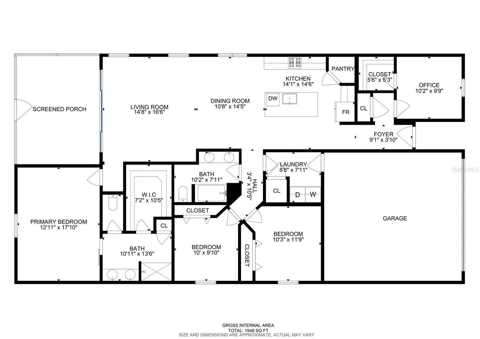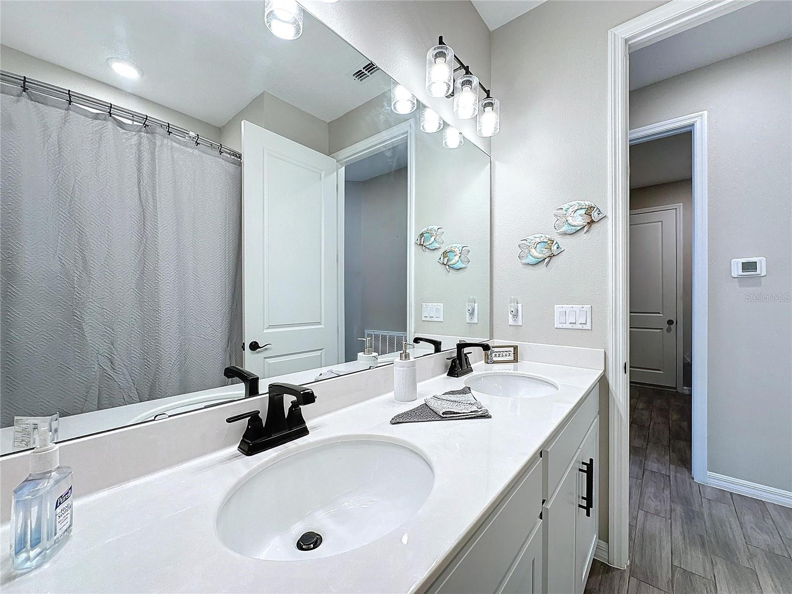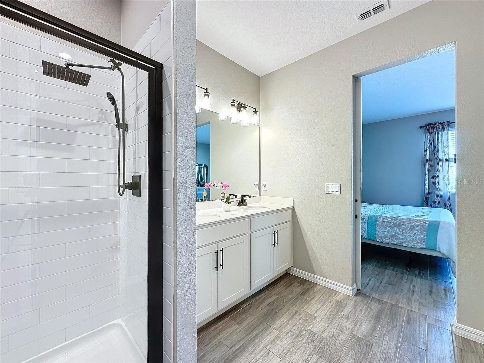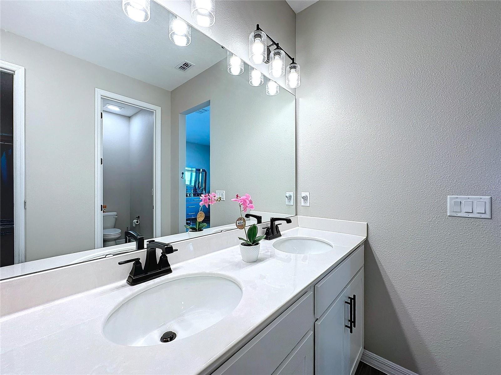 Welcome, you can't miss this great opportunity, This beautiful home has contemporary tile floors that flow seamlessly through the main hallway, dining room, kitchen, and great room. The luxury-style kitchen is a chef's dream, with sleek quartz countertops, 42" cabinets, and high-end GE stainless steel appliances. Imagine coming home from a long day and unwinding on a spacious screened-in lanai, offering privacy with no rear neighbors and a premium lot for added peace of mind. The spacious master suite offers a retreat-like experience, complete with an en-suite bathroom with a gorgeous tiled shower stall and double vanity. This home is packed with elegant upgrades, from the sleek stone facade and custom closet organizer in the master bedroom to the gas stove and upgraded central air conditioning with UV light. Additional details that make this property extraordinary include gutters a covered porch for outdoor enjoyment, and a ladder in the garage for extra storage so you don't have to pay for storage anymore. There are ceiling fans in the living room and lanai for added comfort. Beautiful lighting under the kitchen counters, blinds on every window for privacy, and a water filtration system with UV technology for the entire home. The landscaped backyard is a tropical paradise, with fruit trees such as soursop, avocado, acerola, grapefruit, fig, prunes, mango, papaya, and pennyroyal. Don't miss this incredible opportunity to own a home with luxurious finishes and practical amenities.
