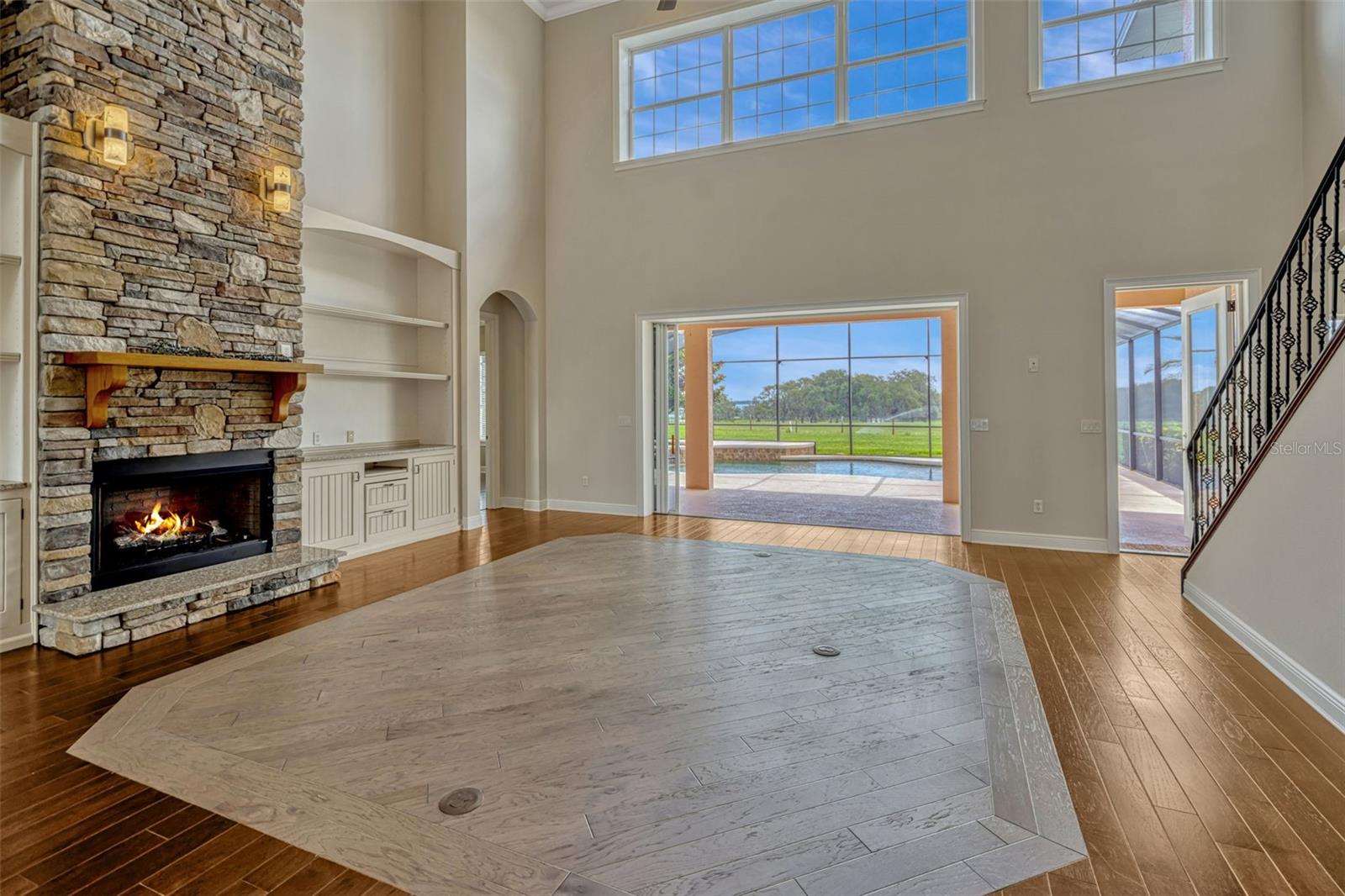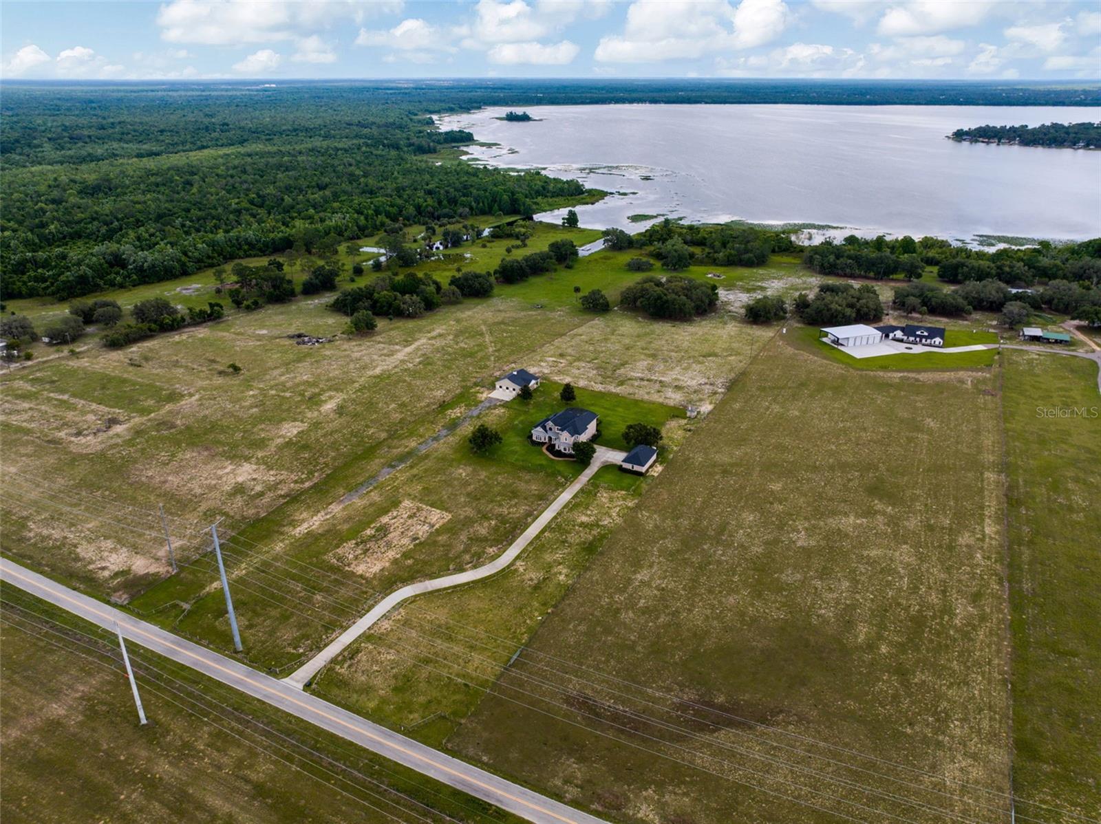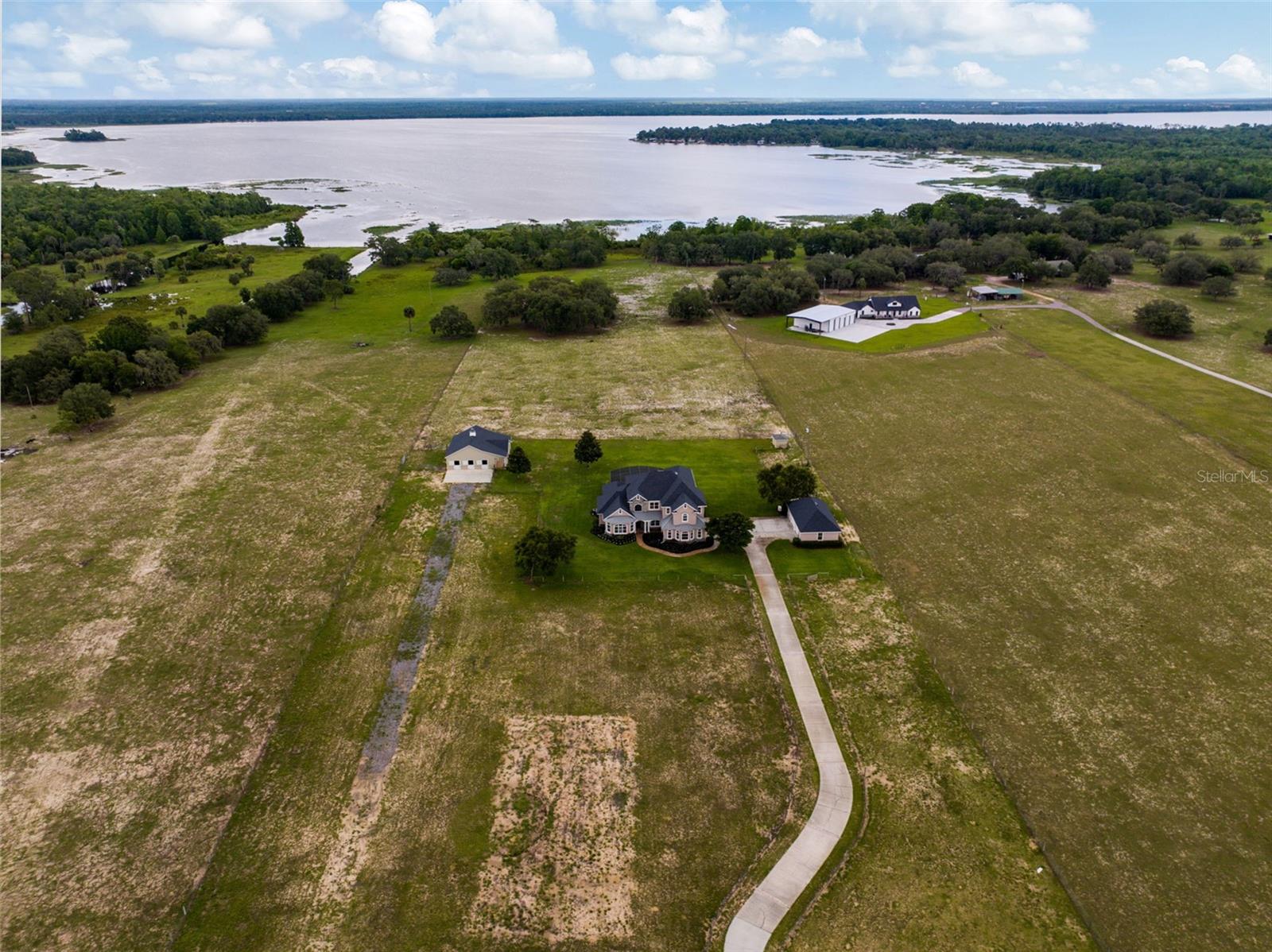 Ready to begin your Family Story in this 5 bedroom French style estate? This meticulously designed home, set on over 14 acres of breathtaking land with 317 feet of stunning lakefront on Lake Marion can be yours! As you step inside, you’ll be captivated by the impressive 23-foot ceilings that highlight a grand stone fireplace, surrounded by custom built-ins that serve as the heart of the home, perfect for hosting cherished family gatherings. On the main level, two generous primary suites await, each featuring expansive walk-in closets and luxurious ensuite bathrooms. Culinary enthusiasts will adore the gourmet kitchen, equipped with modern stainless-steel appliances, stunning granite countertops, a wealth of custom cabinetry, an island with a convenient washing sink, and a large walk-in pantry. The breakfast bar overlooks a spacious bay eat-in dining area, making it the ideal spot for casual meals. Adjacent to the kitchen, you’ll discover a thoughtfully designed laundry room (separate room) & also connects to the spacious 2-car garage adorned with Spartacote Poly flooring for added durability. You will also find a separate sitting area/formal dining room & half bath downstairs. Venture upstairs to find a delightful loft area complete with a custom built-in entertainment center, alongside two generously sized bedrooms, each with ample walk-in closets and a dedicated storage room. The bedroom is connected by a bathroom that features two separate vanities with sink with each having a door for privacy, but can be opened to connect and include a shared shower/tub combo. Upstairs, you will also find a room within a room that could be used as an office, an extra bedroom if you added a closet, or even converted into a full closet space. Back on the main floor, oversized sliding glass doors bring the outdoors in, leading to a covered lanai that overlooks a screened-in saltwater pool and spa with a Pebbletec finish, perfect for relaxing on warm afternoons. The property’s expansive pasture is home to a stunning 6-stall horse barn, beautifully designed with metal stall grills and elegant Brazilian Rosewood dividers, making it a dream for equestrian enthusiasts. The barn also includes a room and 1 full bath: the room could be used as a tack room or sleeping quarters. You name it! One side of the barn has amazing views of Lake Marion. Welcome home to a sanctuary of sophistication and comfort, where every corner invites you to create unforgettable memories against the backdrop of nature’s beauty. This estate is not just a house; it’s a lifestyle waiting for you to embrace. Some of the features/upgrades include: detached building provides additional 2 car parking spaces and attic storage, in wall pest control system, gas fireplace and hot tub, large owned propane tank, both primary bathrooms downstairs are wheelchair accessible, laundry shoot upstairs connects to downstairs laundry, 2 new electric hot water heaters replaced in 2025. 1 AC unit new in 2025, one in 2021 & one original in 2007. Water softener system. 2021 Generac. May 2025 new refrigerator/freezer and microwave/oven is being replaced. Irrigated front 2 pastures. Barn: 36x36 metal horse barn with full bathroom, and tack room. Dog wash tub with hot and cold water and electric dog grooming table are included in sale but not guaranteed to work. 5- 12x12 stalls, 1- 12x 16 foaling stall, 24x24 concrete center aisle, , 36x8 concrete and covered porch on barn overlooking back pasture & lake view