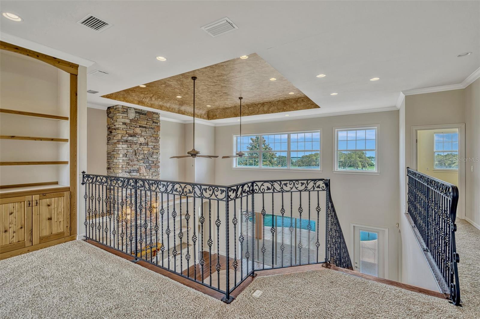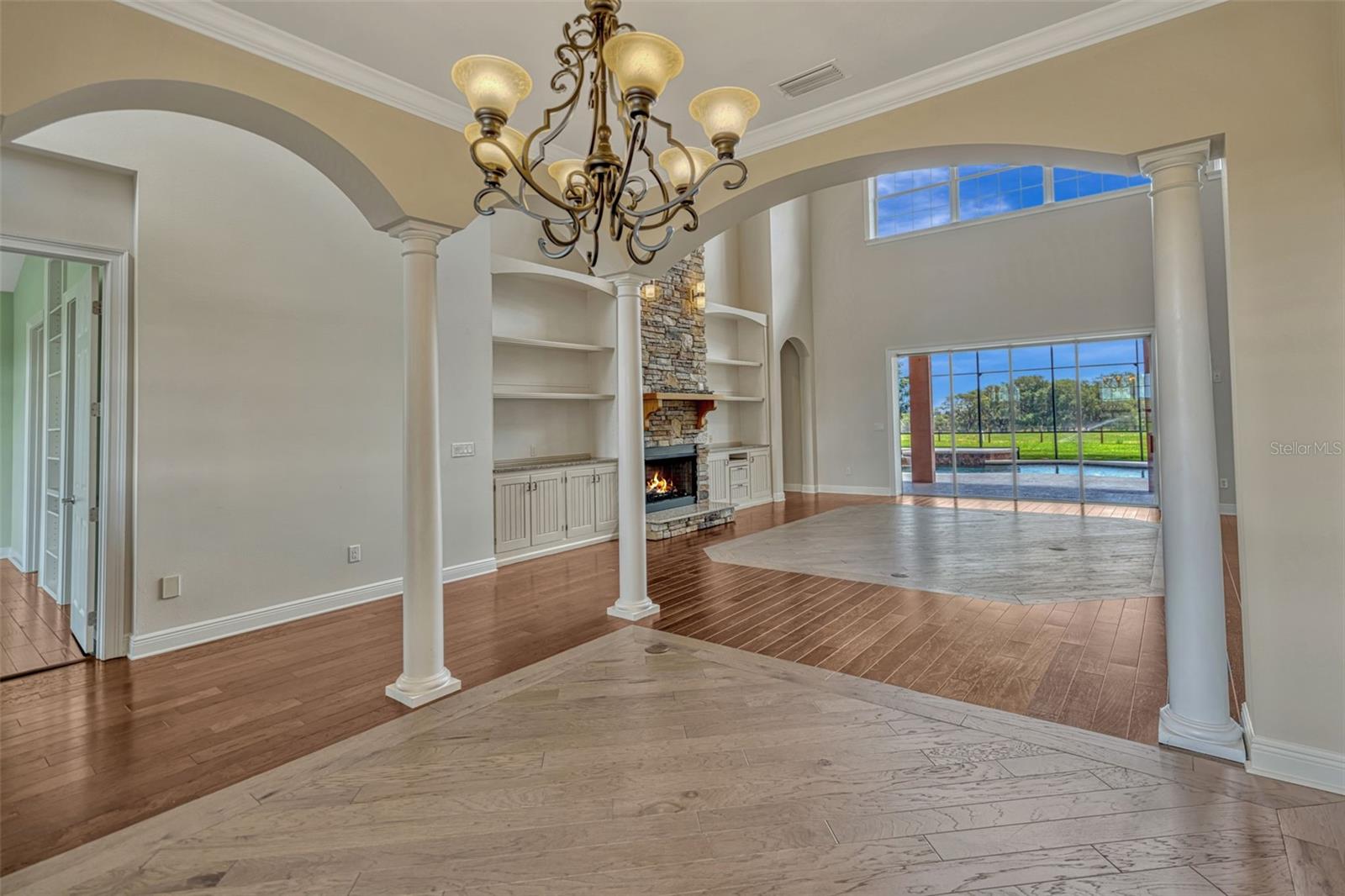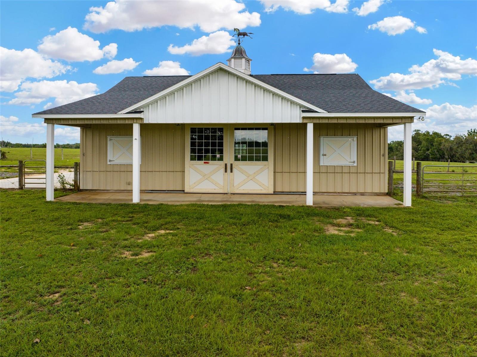Ready to begin your Family Story in this 5 bedroom French style estate? This meticulously designed home, set on over 14 acres of breathtaking land with 317 feet of stunning lakefront on Lake Marion can be yours! As you step inside, you’ll be captivated by the impressive 23-foot ceilings that highlight a grand stone fireplace, surrounded by custom built-ins that serve as the heart of the home, perfect for hosting cherished family gatherings. On the main level, two generous primary suites await, each featuring expansive walk-in closets and luxurious ensuite bathrooms. Culinary enthusiasts will adore the gourmet kitchen, equipped with modern stainless-steel appliances, stunning granite countertops, a wealth of custom cabinetry, an island with a convenient washing sink, and a large walk-in pantry. The breakfast bar overlooks a spacious bay eat-in dining area, making it the ideal spot for casual meals. Adjacent to the kitchen, you’ll discover a thoughtfully designed laundry room (separate room) & also connects to the spacious 2-car garage adorned with Spartacote Poly flooring for added durability. You will also find a separate sitting area/formal dining room & half bath downstairs. Venture upstairs to find a delightful loft area complete with a custom built-in entertainment center, alongside two generously sized bedrooms, each with ample walk-in closets and a dedicated storage room. The bedroom is connected by a bathroom that features two separate vanities with sink with each having a door for privacy, but can be opened to connect and include a shared shower/tub combo. Upstairs, you will also find a room within a room that could be used as an office, an extra bedroom if you added a closet, or even converted into a full closet space. Back on the main floor, oversized sliding glass doors bring the outdoors in, leading to a covered lanai that overlooks a screened-in saltwater pool and spa with a Pebbletec finish, perfect for relaxing on warm afternoons. The property’s expansive pasture is home to a stunning 6-stall horse barn, beautifully designed with metal stall grills and elegant Brazilian Rosewood dividers, making it a dream for equestrian enthusiasts. The barn also includes a room and 1 full bath: the room could be used as a tack room or sleeping quarters. You name it! One side of the barn has amazing views of Lake Marion. Welcome home to a sanctuary of sophistication and comfort, where every corner invites you to create unforgettable memories against the backdrop of nature’s beauty. This estate is not just a house; it’s a lifestyle waiting for you to embrace. Some of the features/upgrades include: detached building provides additional 2 car parking spaces and attic storage, in wall pest control system, gas fireplace and hot tub, large owned propane tank, both primary bathrooms downstairs are wheelchair accessible, laundry shoot upstairs connects to downstairs laundry, 2 new electric hot water heaters replaced in 2025. 1 AC unit new in 2025, one in 2021 & one original in 2007. Water softener system. 2021 Generac. May 2025 new refrigerator/freezer and microwave/oven is being replaced. Irrigated front 2 pastures. Barn: 36x36 metal horse barn with full bathroom, and tack room. Dog wash tub with hot and cold water and electric dog grooming table are included in sale but not guaranteed to work. 5- 12x12 stalls, 1- 12x 16 foaling stall, 24x24 concrete center aisle, , 36x8 concrete and covered porch on barn overlooking back pasture & lake view
