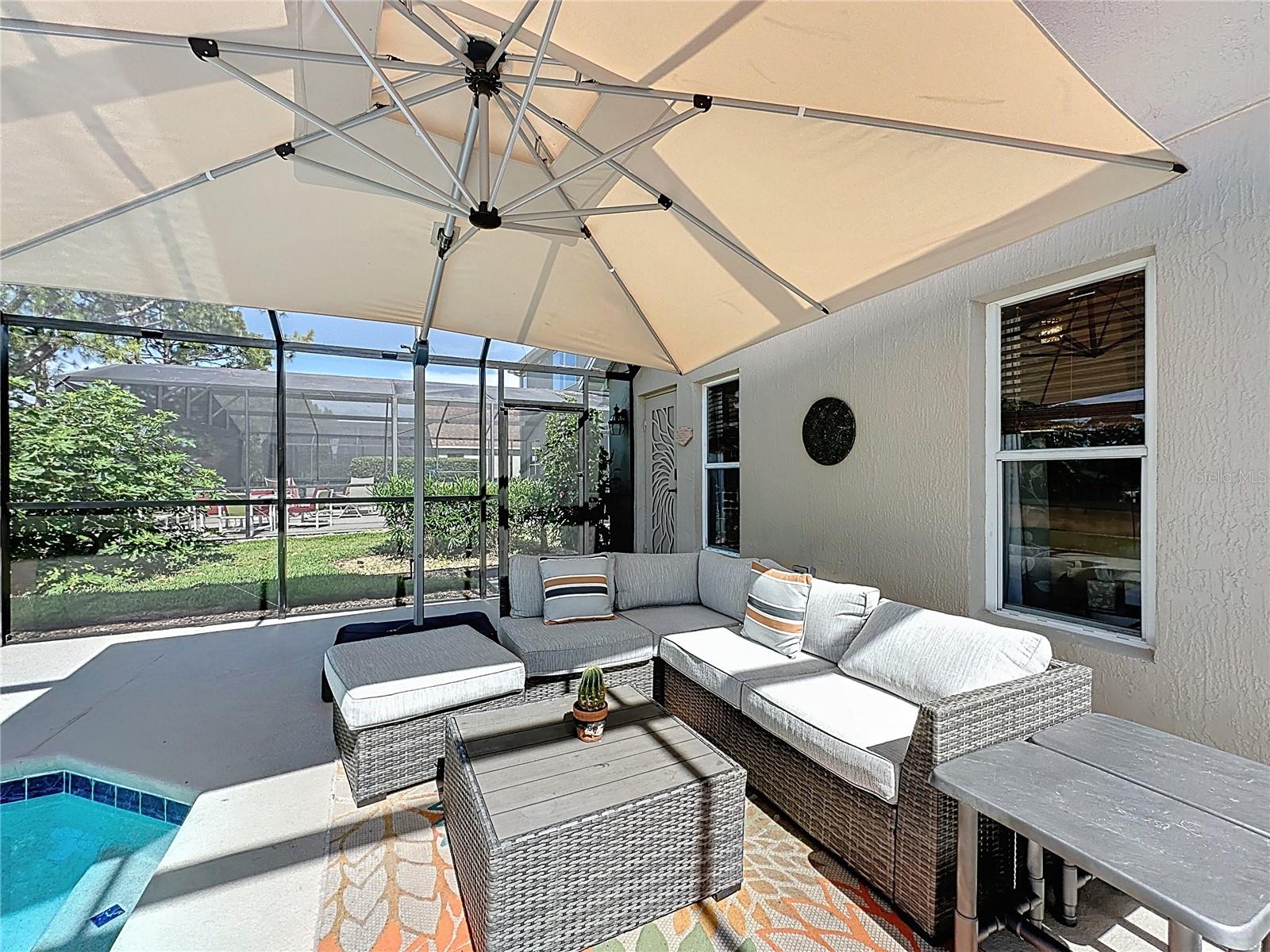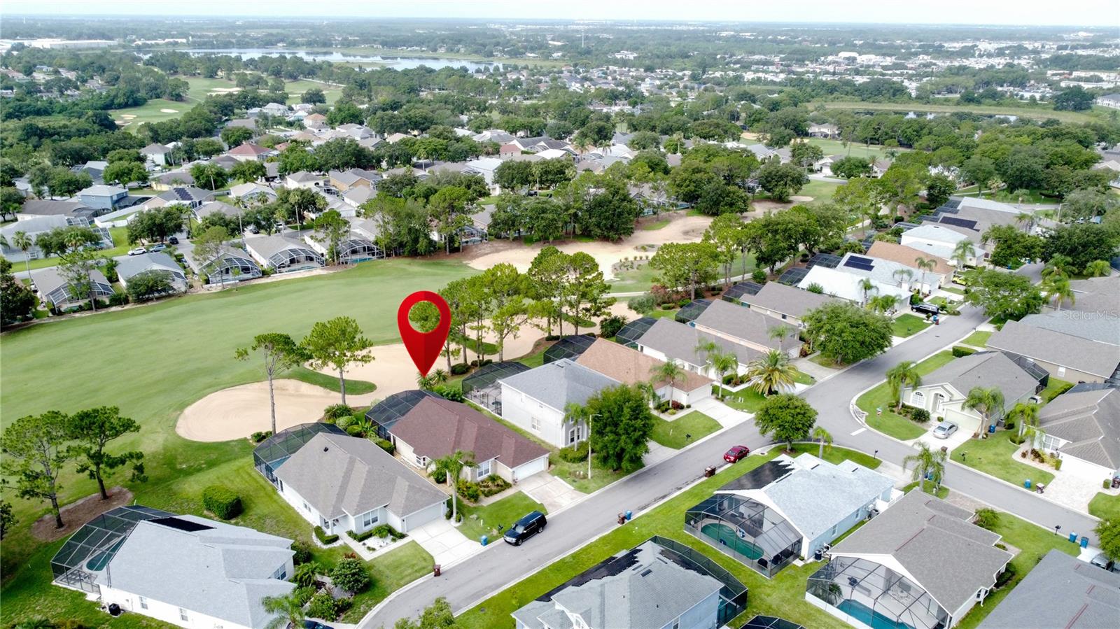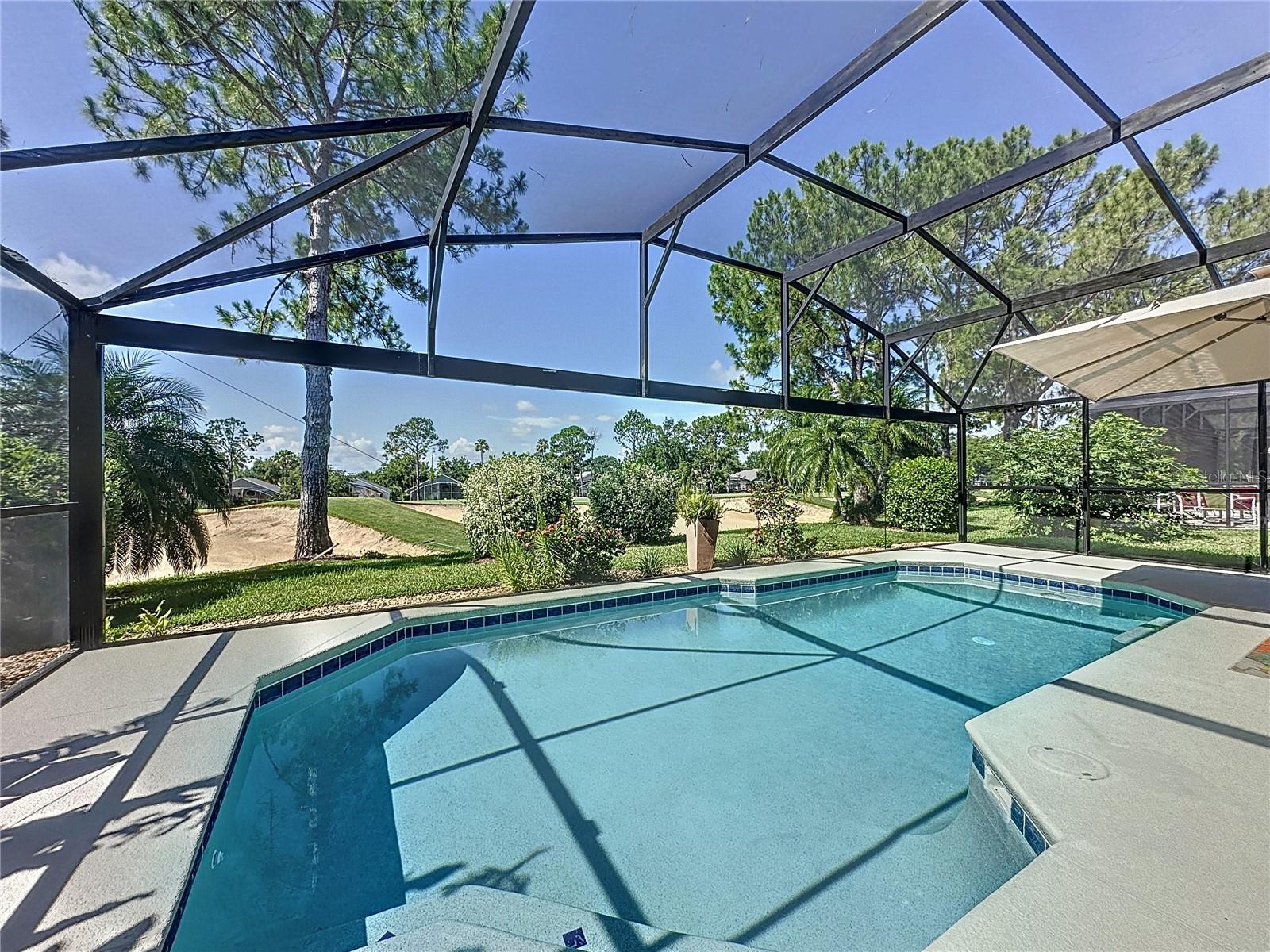 ADJUSTED PRICE, GREAT VALUE FOR MONEY! Stunning Golf course home in the prestigious golf community of Southern Dunes. *2018 ROOF * 2022 AC * WHOLE HOUSE WATER FILTRATION SYSTEM* PANORMAIC POOL SCREEN WITH GOLF COURSE VIEW*. This home shows real pride of ownership. Solid surface counters, luxurious new carpet and custom cabinetry in the dining area make you feel like you want to relax and stay a while. The refinished pool deck is south facing and features a PANORAMIC POOL SCREEN to really take in the beautiful GOLF COURSE VIEW. The lanai has a beautiful covered area for relaxing and enjoying the view of the course. The layout of this home is wonderful with two master suite's (Primary bath has pool access) and 2 additional bedrooms, making this perfect as a vacation rental investment winter home or permanent residence. Both bathrooms have had elegant upgrades including vanities with granite counters. The home is offered with some furniture and has a relaxing and elegant feel to it in one of the areas premier golf communities. Located in the highly acclaimed, 24-hour guard-gated Southern Dunes Golf & Country Club, the community also offers TENNIS COURTS, a CLUBHOUSE, PLAYGROUND and more. Shops, restaurants, and daily conveniences are just minutes away, with easy access to both Orlando and Tampa, the Gulf and Atlantic beaches, and major airports. Fairway homes of this standard are rarely available so come and see it for yourself today, You'll be glad you did!
