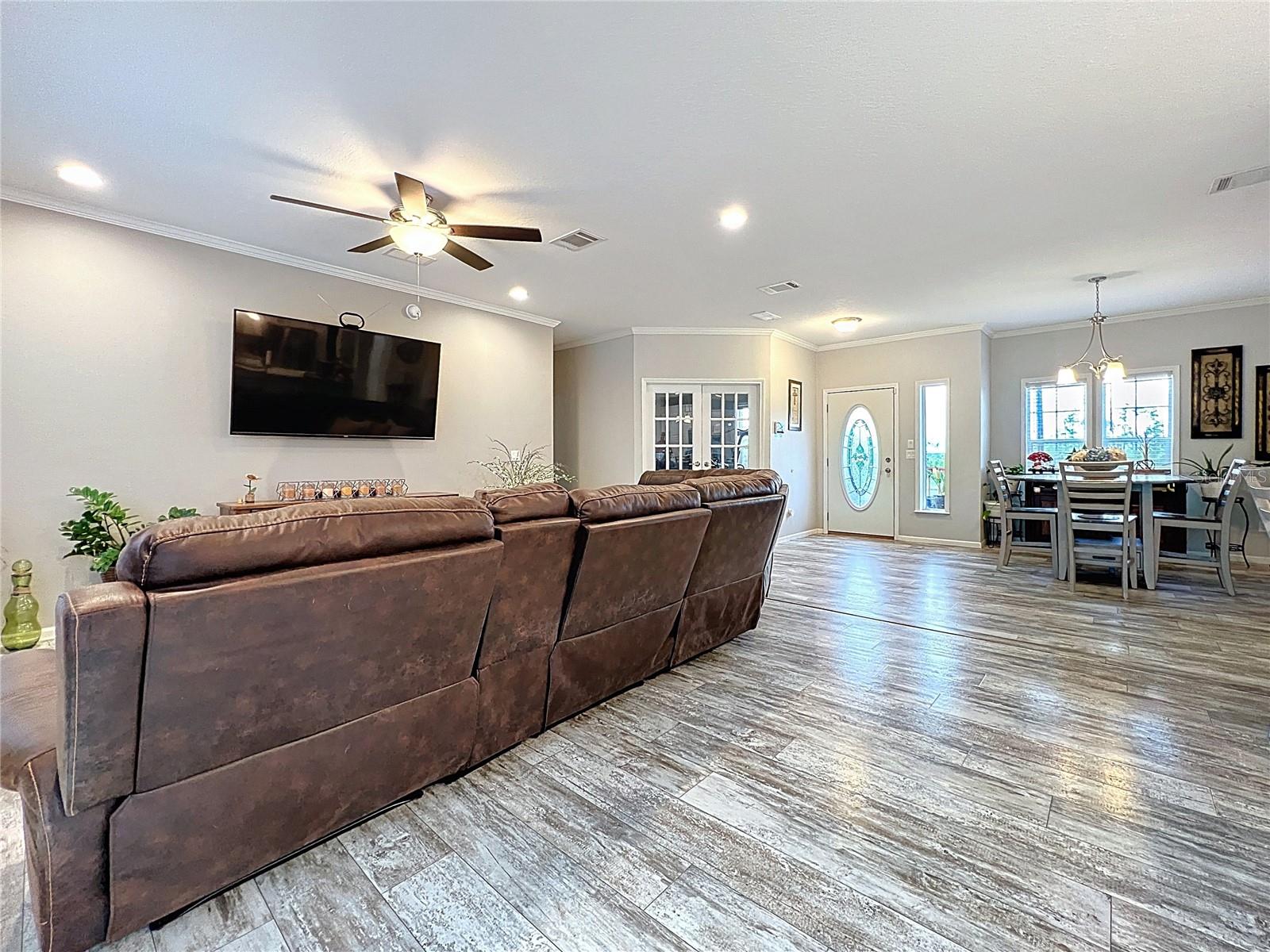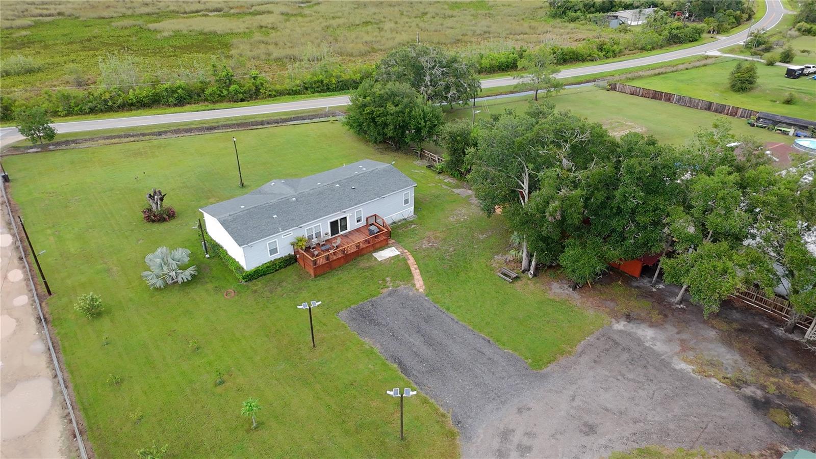 Spacious 2022-built double-wide manufactured home on approximately 1.5 acres in the fast-growing Haines City area—NO HOA or deed restrictions! This 3-bedroom, 2-bath home also features a versatile den/flex room and an open-concept floor plan designed for comfort and entertaining. The chef-style kitchen includes stainless steel appliances, double oven, cooktop, sleek range hood, and a large island that opens into expansive living and dining areas. Durable hard surface flooring throughout—no carpet. The split-bedroom layout offers a private primary suite with two walk-in closets and a luxurious bathroom featuring double vanities, a soaking tub, and a glass-enclosed shower. Enjoy rural living with room for RVs, boats, work trucks, or animals. A backyard workshop/shed provides additional storage or workspace. Conveniently located just minutes from shopping, dining, and major highways.