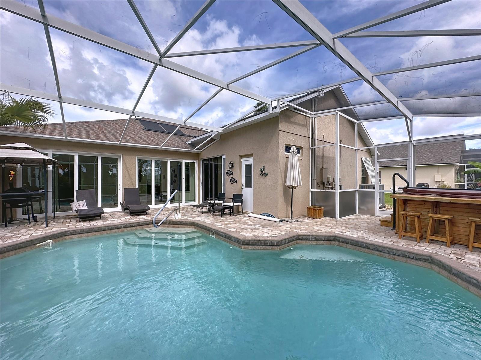 SIMPLY STUNNING! Tucked away on a private cul-de-sac in the prestigious Southern Dunes Golf & Country Club, this 4-bedroom, 3-bathroom pool home is the perfect blend of elegance, comfort, and Florida lifestyle. With an extra-long paver driveway that can accommodate numerous cars—an uncommon and attractive feature—you’ll feel the sense of arrival the moment you pull up. Set directly on the 12th fairway, this home offers unparalleled privacy and breathtaking golf course views. The highlight of the living space is the fully enclosed Florida Sunroom under air, complete with an electric fireplace, overlooking the sparkling pool and lush fairways beyond. It’s the perfect spot to relax, entertain, or simply take in the serenity of your surroundings. Inside, upgrades abound: an upgraded kitchen with granite counters and cabinetry, updated bathrooms, laminate flooring in the main living areas, and an inside laundry room. The spacious, open layout features formal living and dining rooms, a family room, and a charming breakfast nook—all with views of the pool and course. The primary suite is privately situated on one side of the home, with direct access to the sunroom, while the remaining bedrooms and baths (including a pool bath) are thoughtfully placed at the rear for convenience and comfort. The pool area is an entertainer’s dream with brick pavers, a freestanding hot tub, and wide-open views of the 12th fairway—perfect for soaking up the Florida sun or enjoying evenings under the stars. With a 2019 roof, newer AC, water softener, generator, and solar-heated pool, this home offers both peace of mind and energy efficiency. Southern Dunes is a master-planned, guard-gated golf community with 24-hour security, clubhouse, fitness center, tennis courts, playground, and the newly opened flood-lit driving range. Zoned for short-term rentals, it also provides excellent investment potential. Just minutes to Disney, Legoland, shopping, dining, medical facilities, and major highways, the location is as convenient as it is desirable. If you’ve been searching for a home that combines luxury, privacy, and unbeatable views, this is the one. Don’t miss your chance to make it yours!