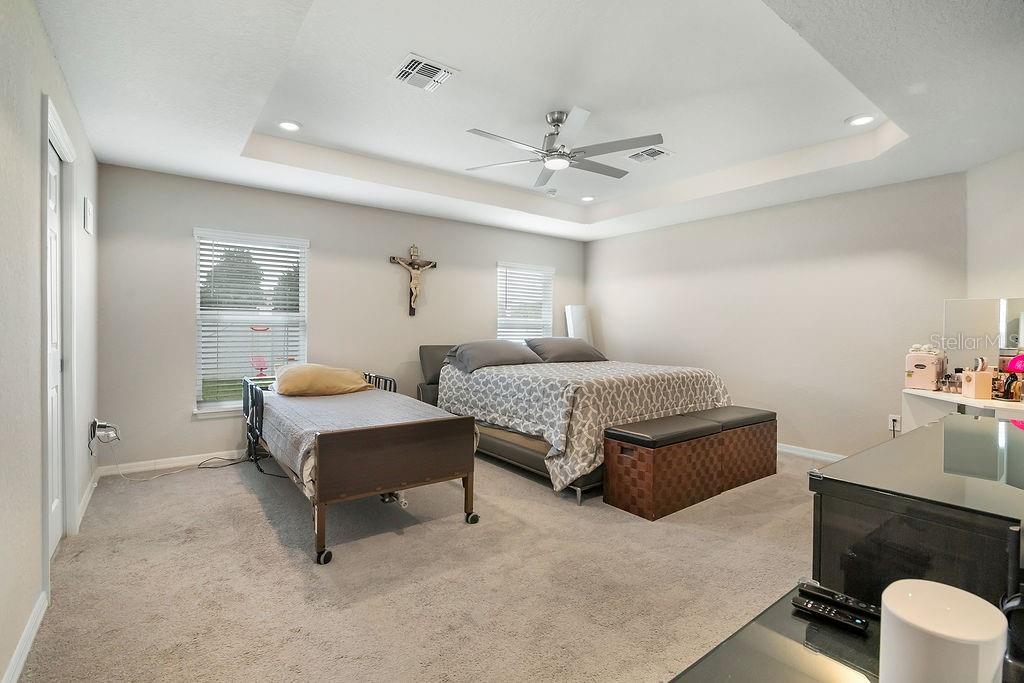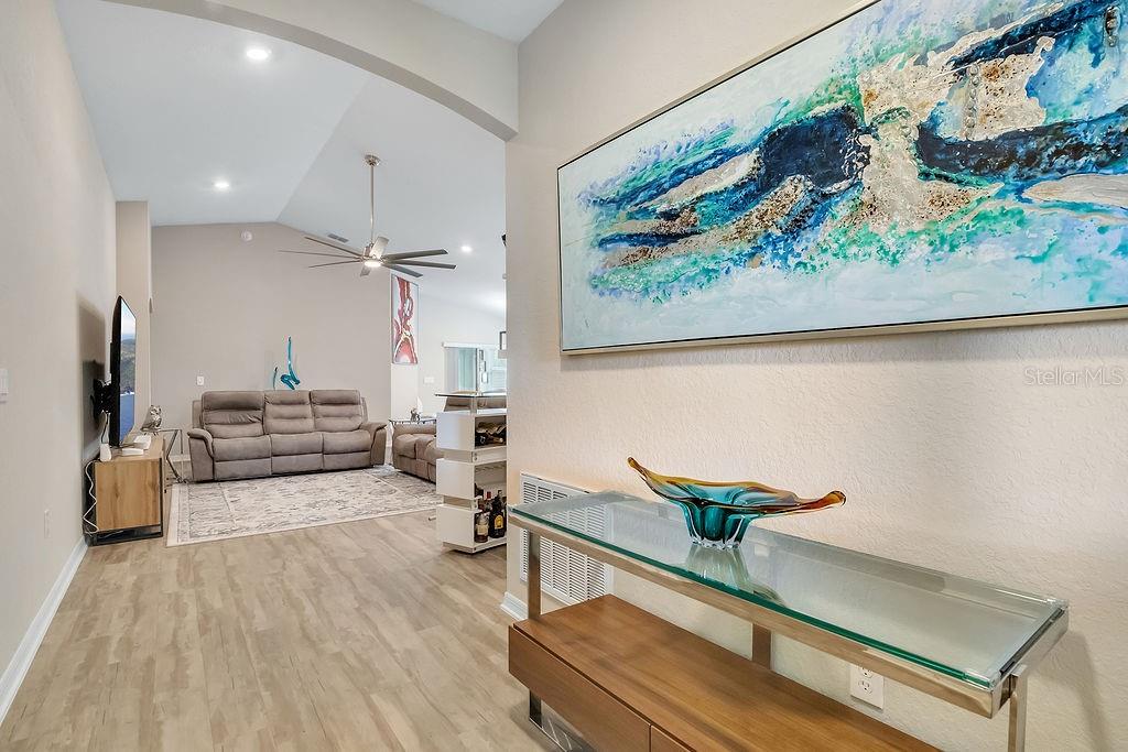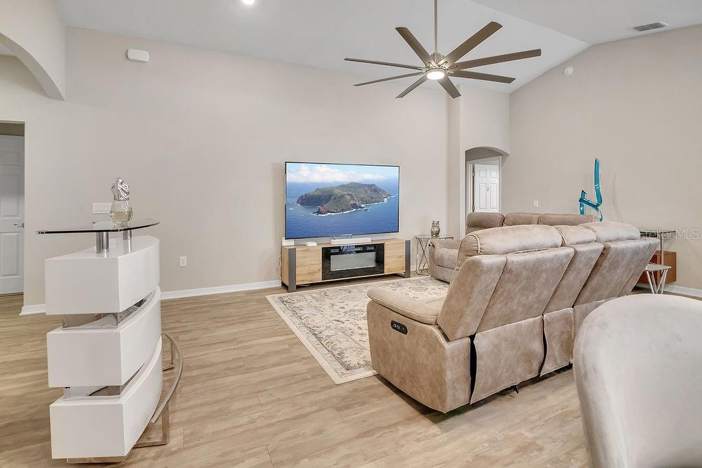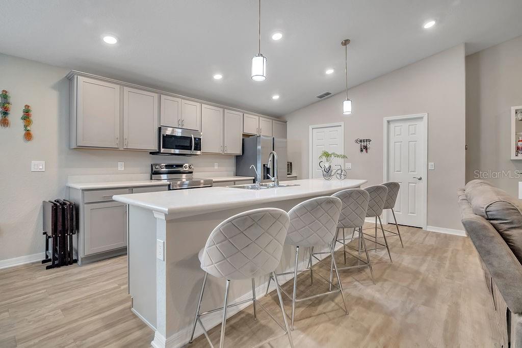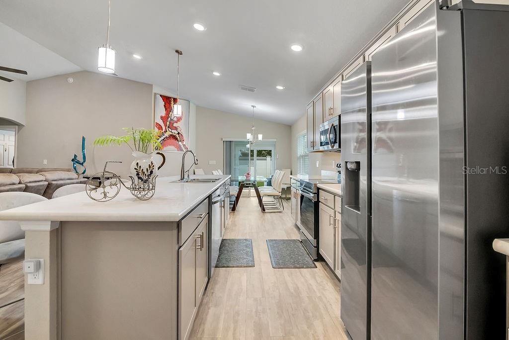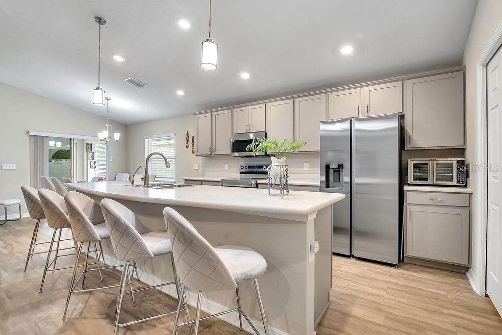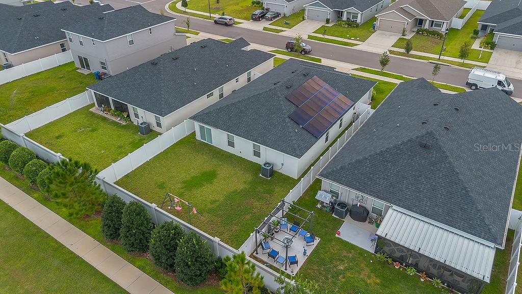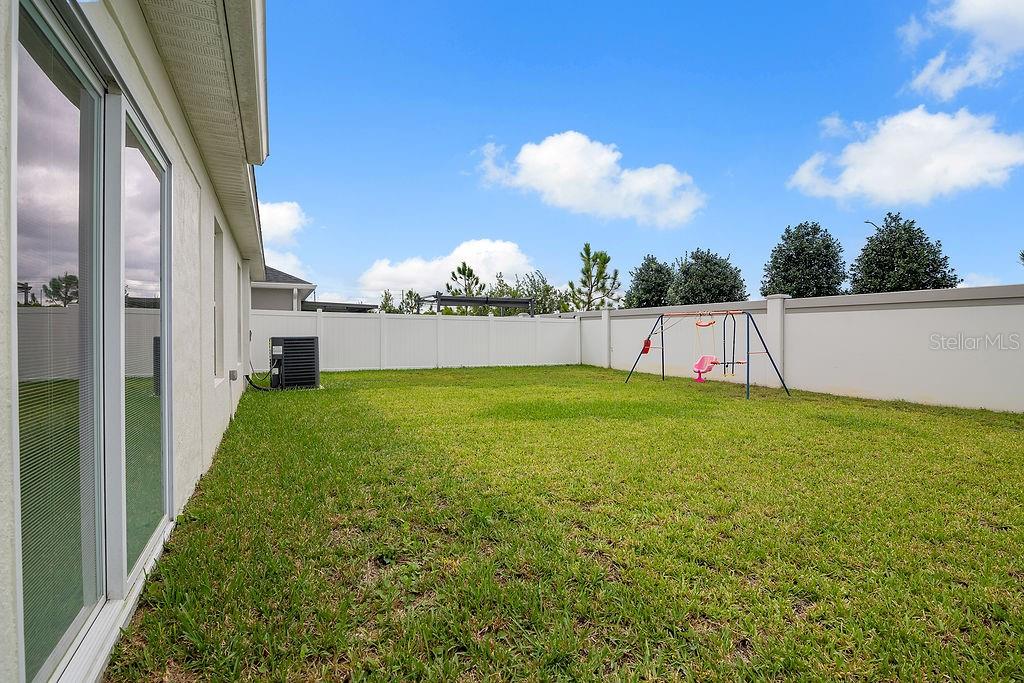 Welcome to this beautifully maintained and very spacious 4-bedroom, 2-bath single-story home nestled in the quite and desirable Haines City neighborhood of Gracelyn Grove. This spacious home offers an open-concept floor plan with abundant natural light, perfect for modern family living and entertaining. The kitchen features plenty of cabinet space, a large island, and overlooks the dining and living areas for effortless gatherings. The primary suite includes a walk-in closet and a private ensuite bathroom with dual sinks and a relaxing shower. Three additional bedrooms provide ample space for family, guests, or a home office. Step outside to enjoy a private fenced backyard—ideal for outdoor dining, gardening, or creating your own Florida oasis. Additional highlights include, ceiling fans in all rooms, whole home water filter, reverse osmosis water filter in kitchen, rain gutters, a two-car garage, solar panels, and enclosed lanai. Conveniently located near local schools, post office, parks, shopping, dining, Lake Eva Community Park, and major highways, this home combines comfort and convenience in one perfect package.