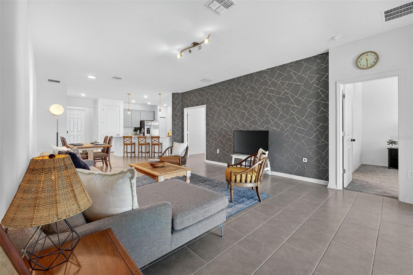 One or more photo(s) has been virtually staged. WELCOME to 763 Staffora Street — a thoughtfully designed residence featuring a PRIVATE ENTRY IN-LAW SUITE in the highly sought-after Magnolia Park community! This beautifully appointed home offers 4 spacious bedrooms, 3 full bathrooms, and a flexible office/den that can easily serve as a 5th bedroom. The open-concept design showcases soaring ceilings, abundant natural light, and a seamless flow ideal for both everyday living and entertaining. The owner’s suite provides a serene retreat complete with a large walk-in closet and a spa-inspired bathroom featuring dual vanities, a glass-enclosed shower, and elegant finishes. On the opposite side of the home, two additional bedrooms share a stylish full bathroom, ensuring privacy and comfort for everyone. At the heart of the home, the modern kitchen delights with quartz countertops, stainless steel appliances, and a convenient breakfast bar — perfect for casual meals or morning coffee. The spacious living and dining areas provides the ideal backdrop for family gatherings and special occasions. Step outside to enjoy a covered lanai, an extended front porch, and a 2-car garage, combining style and practicality. As a resident of Magnolia Park, you’ll have access to resort-style amenities including a community pool, playground, and dog park — all within a welcoming neighborhood close to shopping, dining, and top-rated schools. With easy access to I-4, Walt Disney World, Universal Studios, and Legoland, this property offers the perfect blend of comfort, convenience, and Central Florida living. Whether you’re searching for a family home, vacation getaway, or investment opportunity, this exceptional residence checks every box.