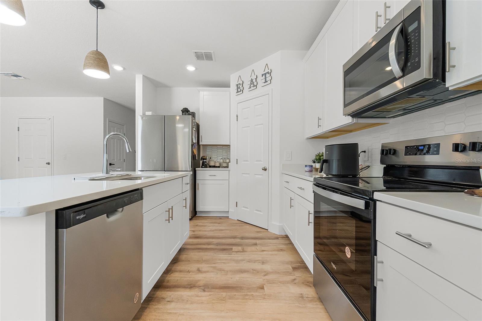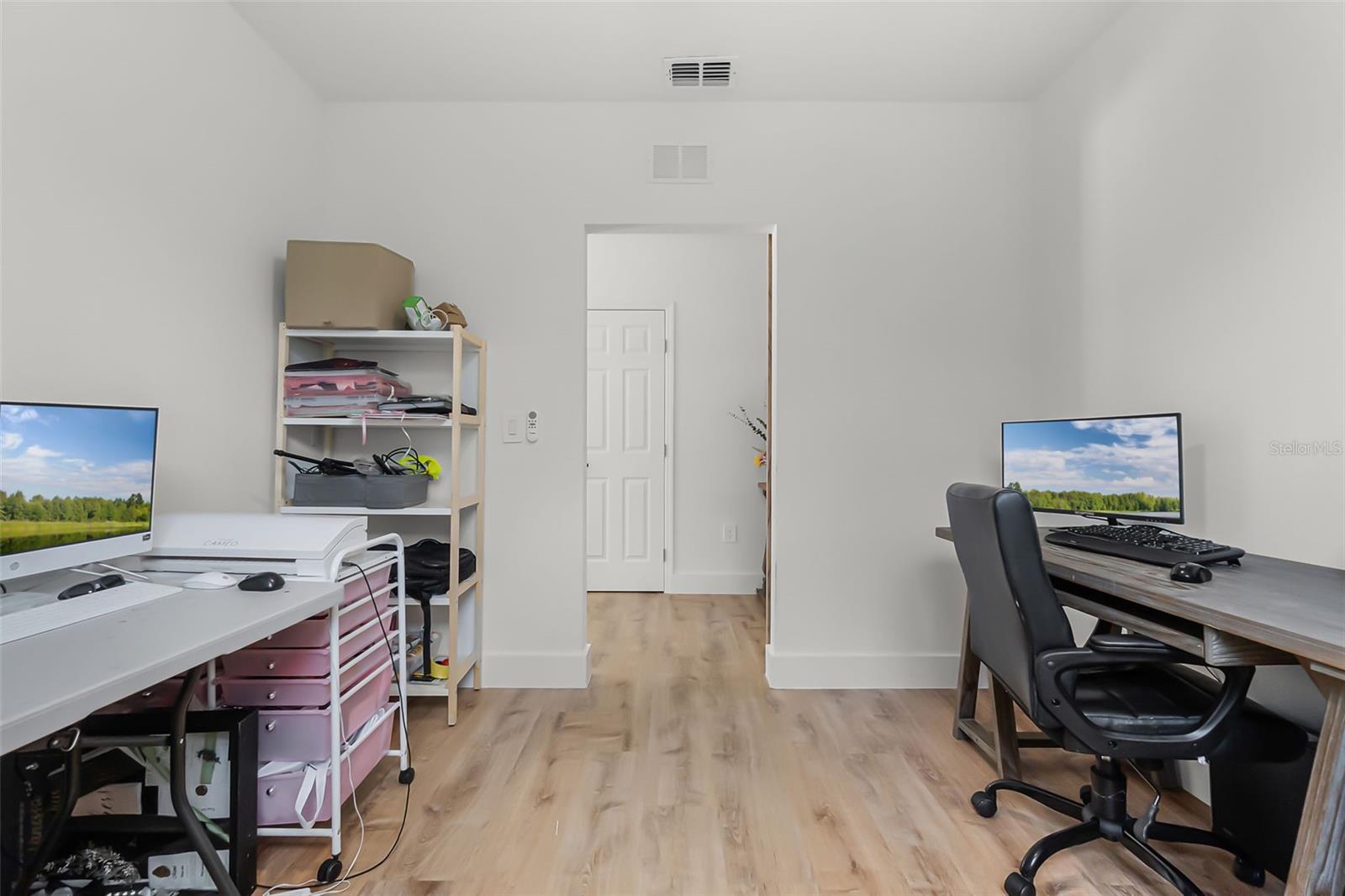 OWNER MOTIVATED Stunning Upgraded Home with Modern Finishes and Custom Touches Throughout Welcome to your dream home! Since purchasing the property in December, the current owners have thoughtfully upgraded nearly every corner with high-end finishes and functional improvements, creating a beautifully modern and move-in ready space. Step inside to find luxury vinyl plank flooring throughout the entire home—no carpet anywhere! The builder-grade baseboards have been replaced with elegant 5.5” real pine wood, adding a refined, contemporary look. The versatile flex space on the main floor has been enclosed and transformed into a stylish office, featuring a modern luxury barn door for added privacy and charm. In two bedrooms, a custom design includes a playful built-in swing (columpio), making it both fun and unique. The primary suite offers a show-stopping, custom-built walk-in closet—modern, spacious, and beautifully organized. Upstairs, you'll find a generously sized loft, perfect for a family room, playroom, or media center. The open-concept layout on the first floor seamlessly connects the living room, dining area, and kitchen—ideal for everyday living and entertaining. One bedroom and a full bathroom are also located on the main floor, along with the enclosed office, providing convenience and flexibility for guests or multi-generational living. The outdoor space is just as impressive. The backyard has been fully customized with a 40’ x 25’ Catalina luxury silver paver patio, complemented by elegant marble stone accents and low-maintenance artificial grass. The yard is enclosed for privacy, creating a perfect outdoor oasis. Additional features include professionally installed rain gutters, which not only protect your home’s foundation but may also contribute to long-term insurance savings. Bring complete home water purifier and softener and smart home security video and alarm system with ADT This home offers the perfect balance of style, comfort, and functionality—don’t miss the opportunity to make it yours! THE HOA INCLUDES THE INTERNET.