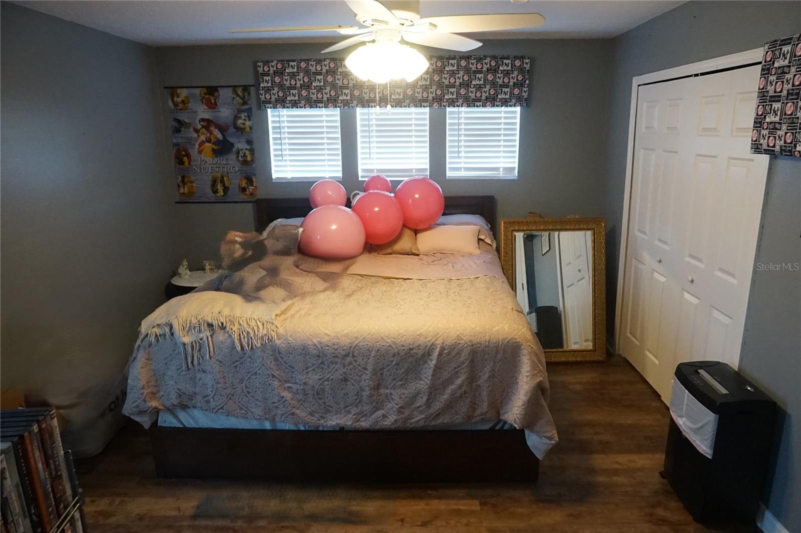 This beautiful 2 story 5 bedroom/4.5 bathroom home sits on the largest lot on the community. Recently upgraded with a hard wood floor, solar panels, new A/C units, 2 year roof. Airy open plan home with well sized kitchen and large first floor master bedroom with en-suite bathroom. Master bedroom opens onto screened-in deck with covered lanai and pool with integrated spa. The remaining 4 bedrooms which includes the 2nd master en-suite are located upstairs. Situated across from the private lake and the clubhouse. This lovely gated community with 24 hour security is conveniently located for access to the attractions, I-4 intersection, supermarkets, banks and schools which makes it an ideal home and location for use as a short term rental vacation home or a permanent residence.
