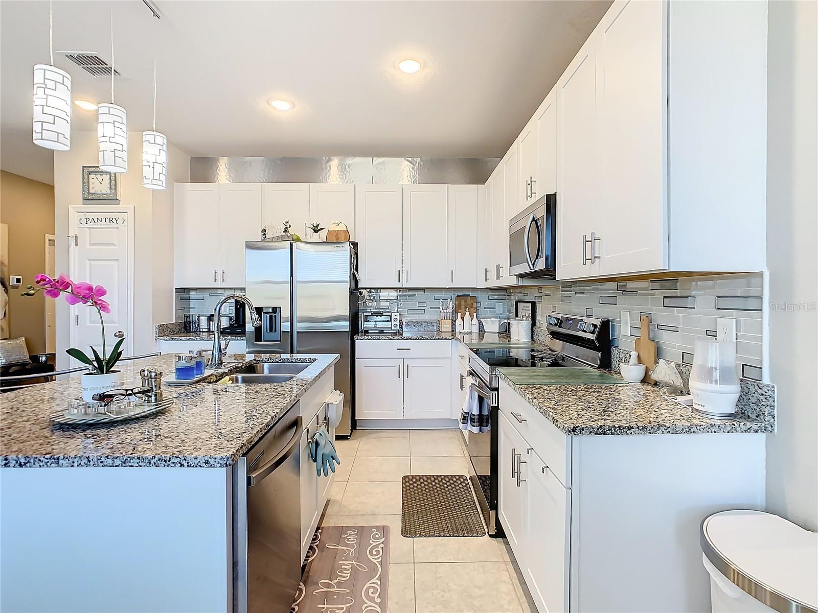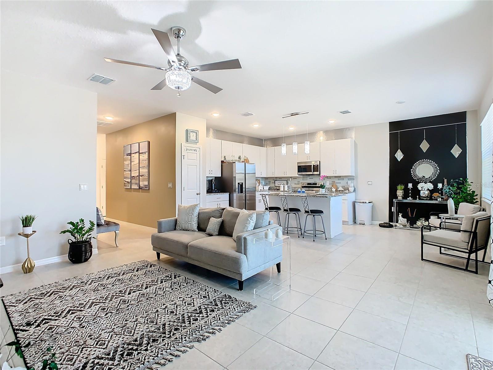 $10k Price Reduction, check it out! Welcome to this stunning 3-bedroom, 2-bathroom smart home that boasts an open floorplan concept. From the moment you step through the front door, you'll notice the wide foyer and hall, ceramic tile throughout the living areas, primary bedroom, and front entry, with carpeting in the other 2 bedrooms. The kitchen features 42" cabinets, an island with gorgeous granite countertops, upgraded backsplash & lighting, and Samsung stainless steel appliances. This home also comes with a brick paver driveway, camera doorbell, washer and dryer, blinds on all windows, and an oversized lanai overlooking a large retention area, with no neighbors behind or one side. This is the Excite floor plan, located in the sought-after Tarpon Bay community with grand entrance. You'll enjoy access to amenities such as a cabana pool, dog park, and picnic area. Plus, this home is conveniently located near major highways such as Highway 27, I-4, and SR 60, as well as restaurants, shopping, and themed parks. Buyer and Buyer agent are responsible for verifying the Rules and Regulations of the HOA. Don't miss out on the chance to make this beautiful home your own!