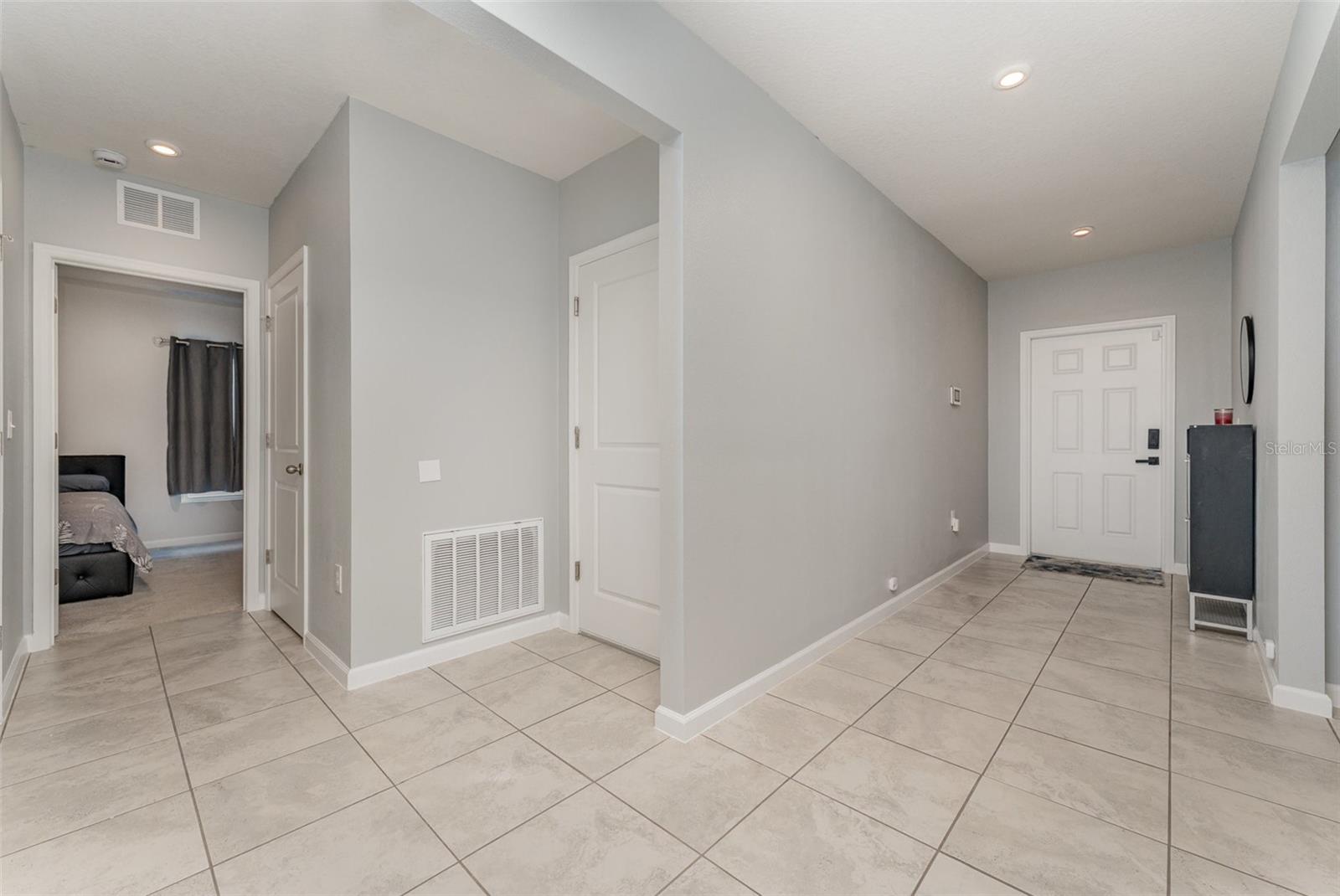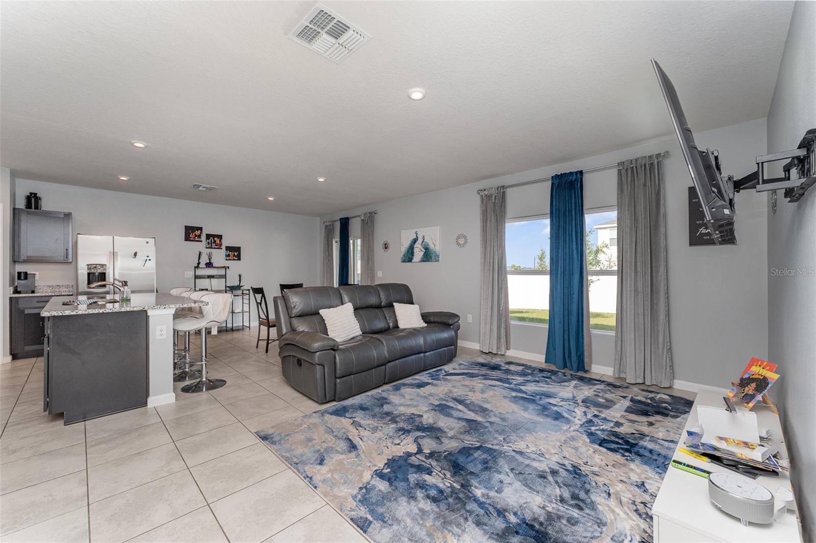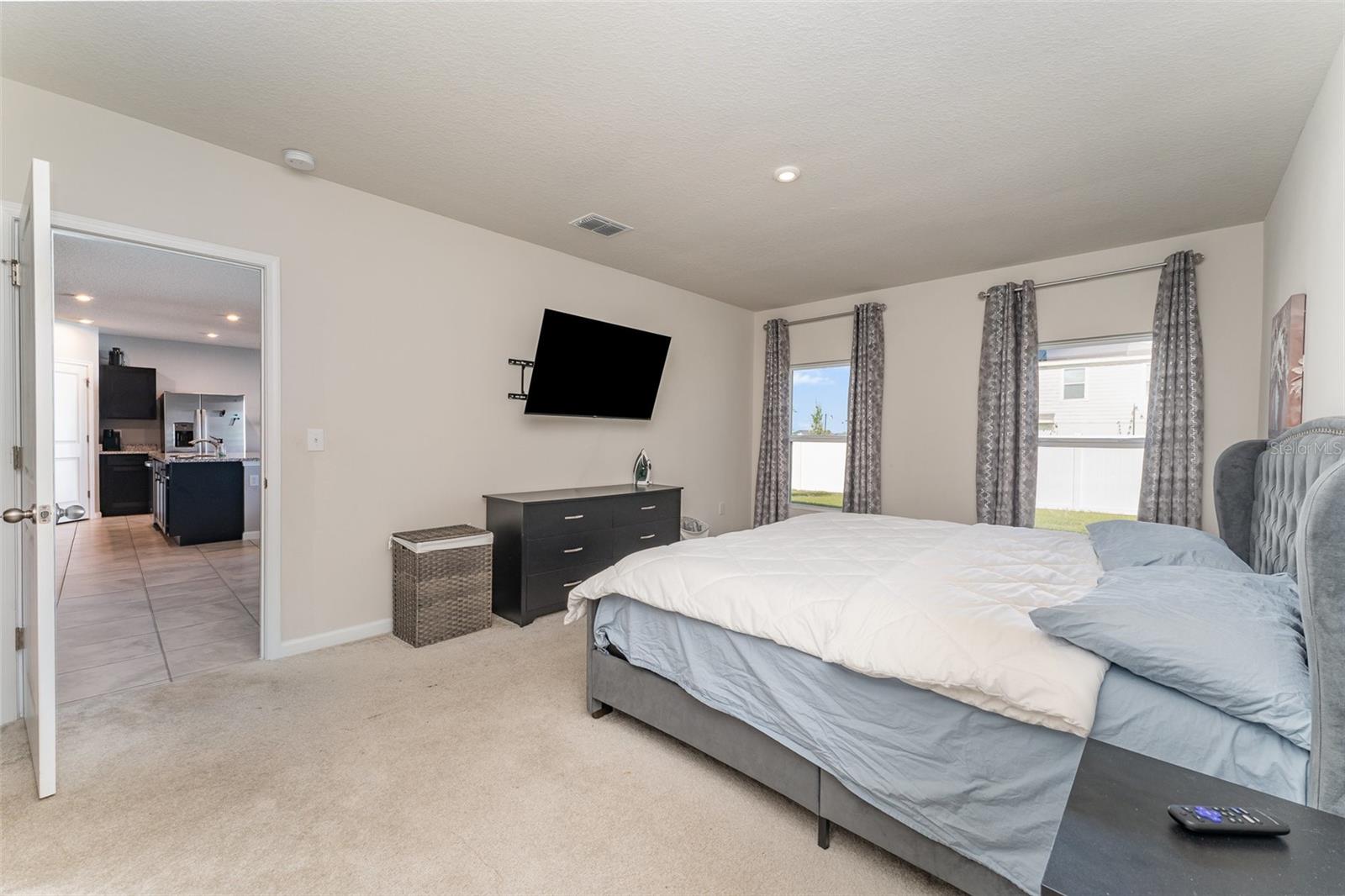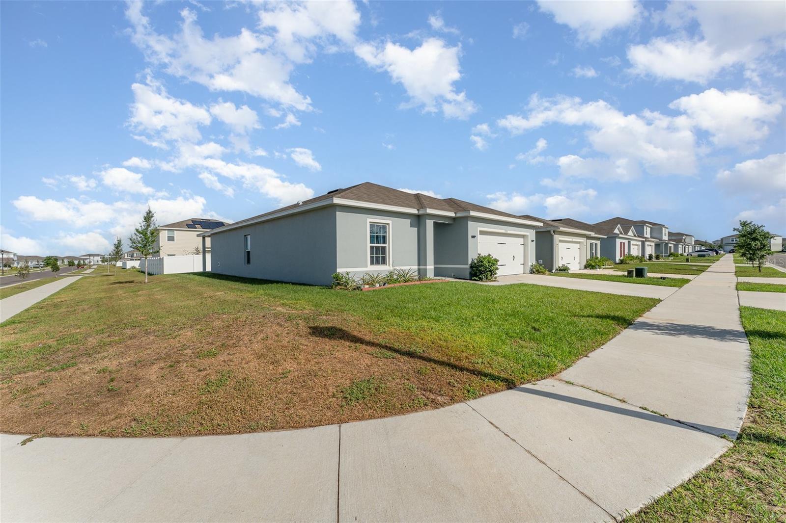 Welcome to your dream home! This beautifully designed 4-bedroom, 2-bathroom home on a corner lot offers a spacious and functional layout perfect for modern living. Step through the welcoming foyer and discover two bedrooms to your left, with a third just across the hall ideal for family, guests, or a home office. At the back of the home, your private owner’s suite awaits, providing a peaceful retreat from the rest of the house. The heart of the home features a large open-concept kitchen and family room combo, centered around a stylish island perfect for entertaining or staying connected during mealtime and movie nights. A fully tiled kitchen brings elegance and durability to your main living space, while tile in all wet areas and cozy carpet throughout the rest of the home strike the perfect balance of comfort and practicality. The split floor plan includes a convenient laundry closet, making cleanup a breeze. Designed with both style and function in mind, this home also comes equipped with smart features like a WiFi-enabled garage door opener and NEST smart thermostat. If you're looking for a spacious layout with thoughtful upgrades and a welcoming atmosphere this home was made for you.
