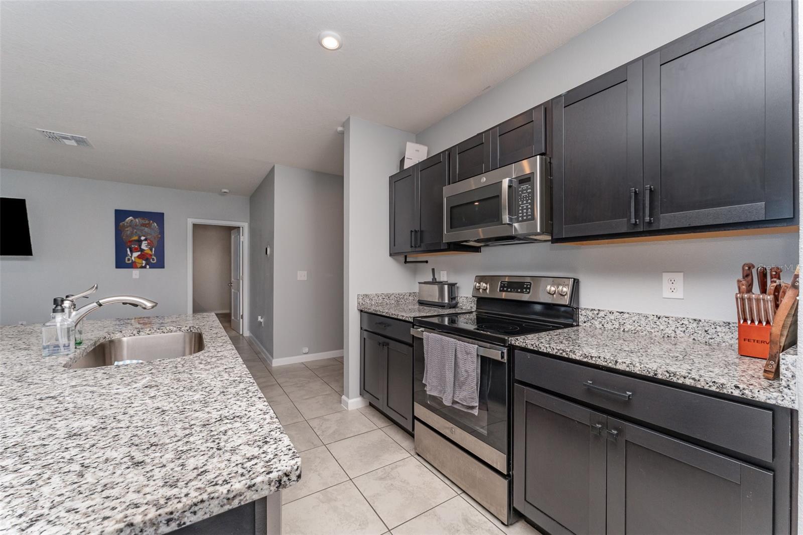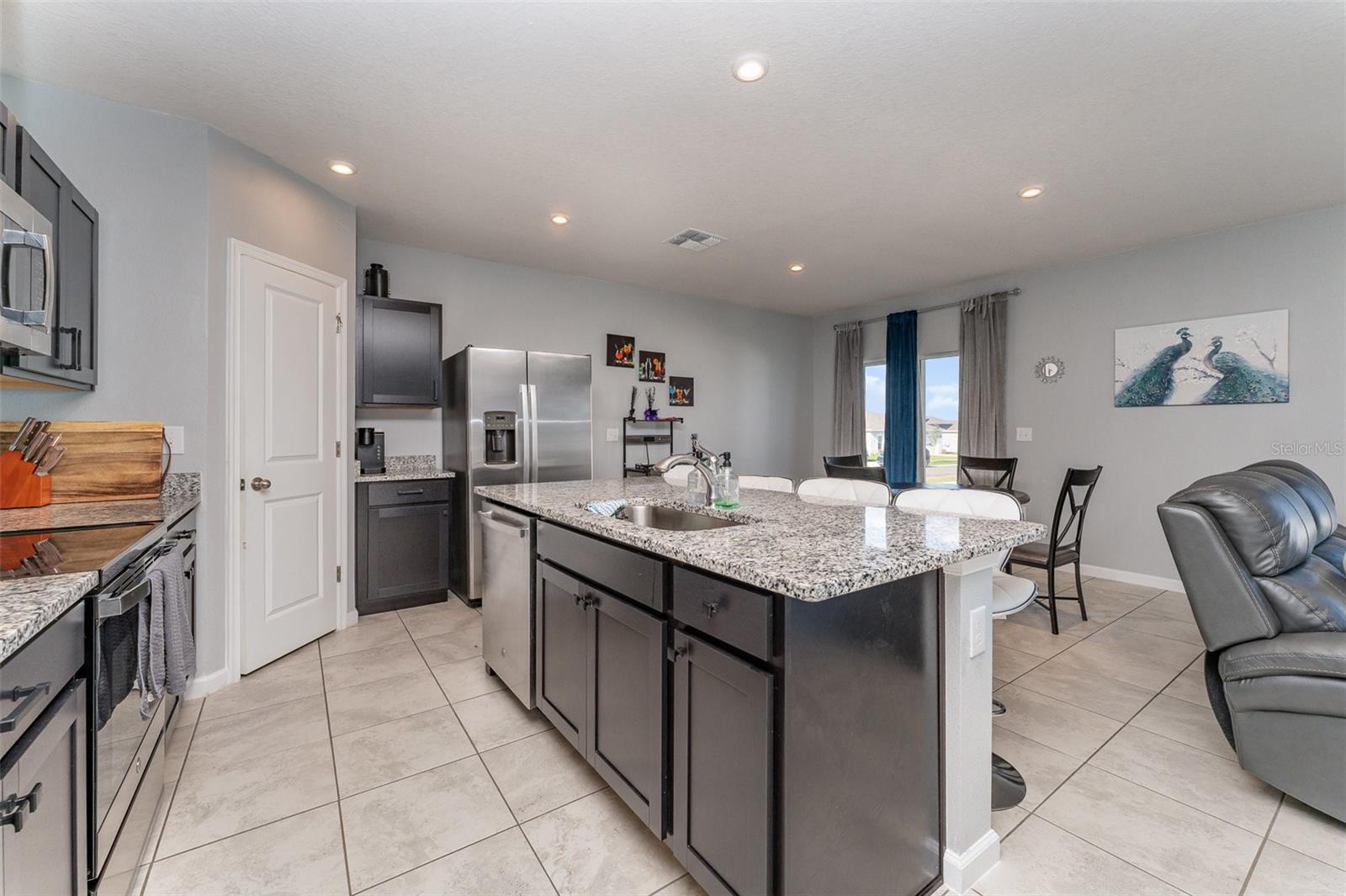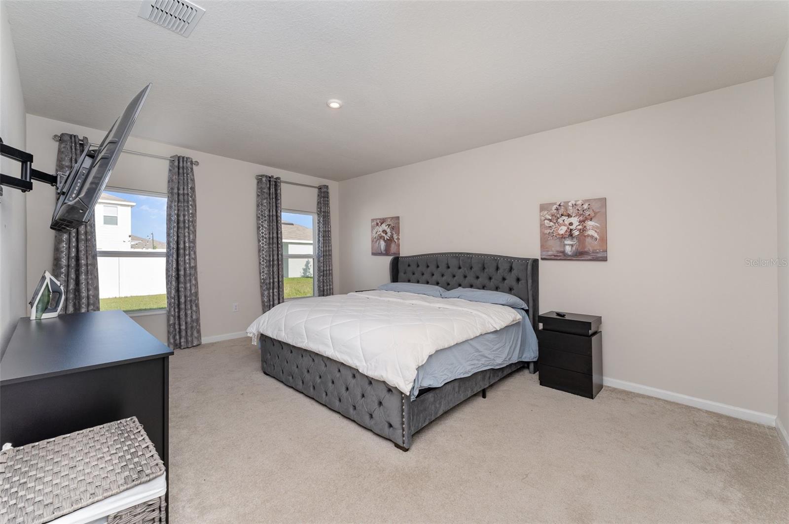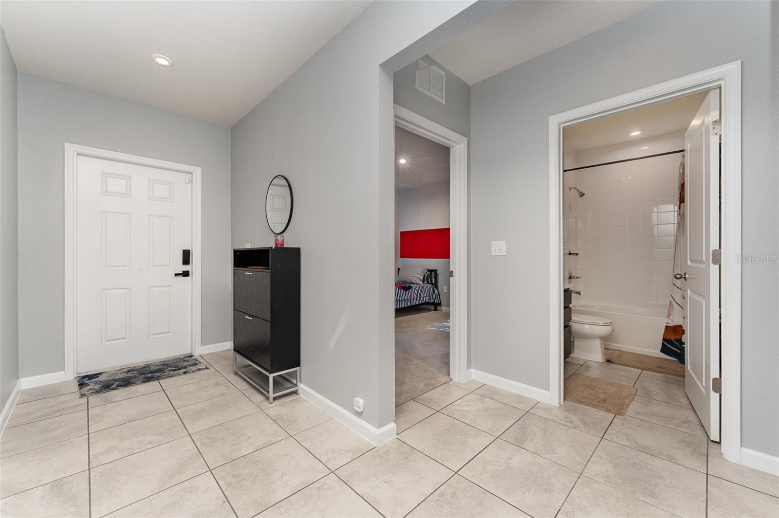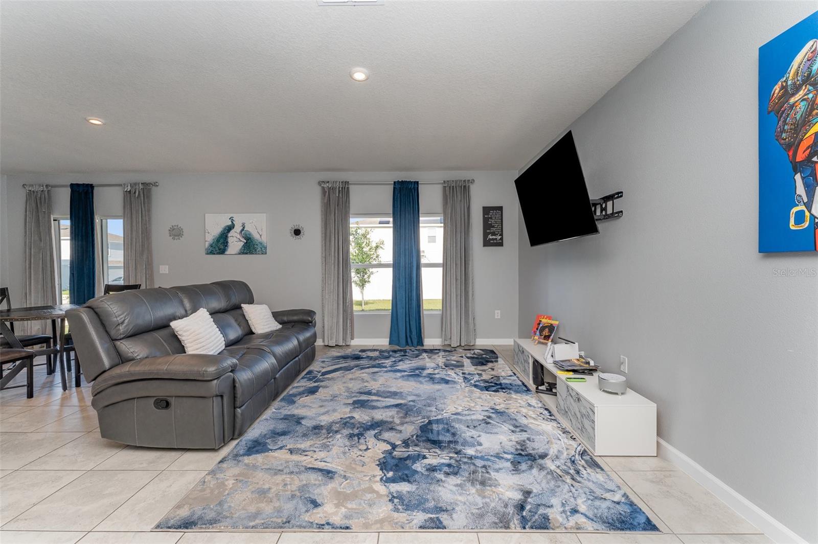 Welcome to your dream home! This beautifully designed 4-bedroom, 2-bathroom home on a corner lot offers a spacious and functional layout perfect for modern living. Step through the welcoming foyer and discover two bedrooms to your left, with a third just across the hall ideal for family, guests, or a home office. At the back of the home, your private owner’s suite awaits, providing a peaceful retreat from the rest of the house. The heart of the home features a large open-concept kitchen and family room combo, centered around a stylish island perfect for entertaining or staying connected during mealtime and movie nights. A fully tiled kitchen brings elegance and durability to your main living space, while tile in all wet areas and cozy carpet throughout the rest of the home strike the perfect balance of comfort and practicality. The split floor plan includes a convenient laundry closet, making cleanup a breeze. Designed with both style and function in mind, this home also comes equipped with smart features like a WiFi-enabled garage door opener and NEST smart thermostat. If you're looking for a spacious layout with thoughtful upgrades and a welcoming atmosphere this home was made for you.