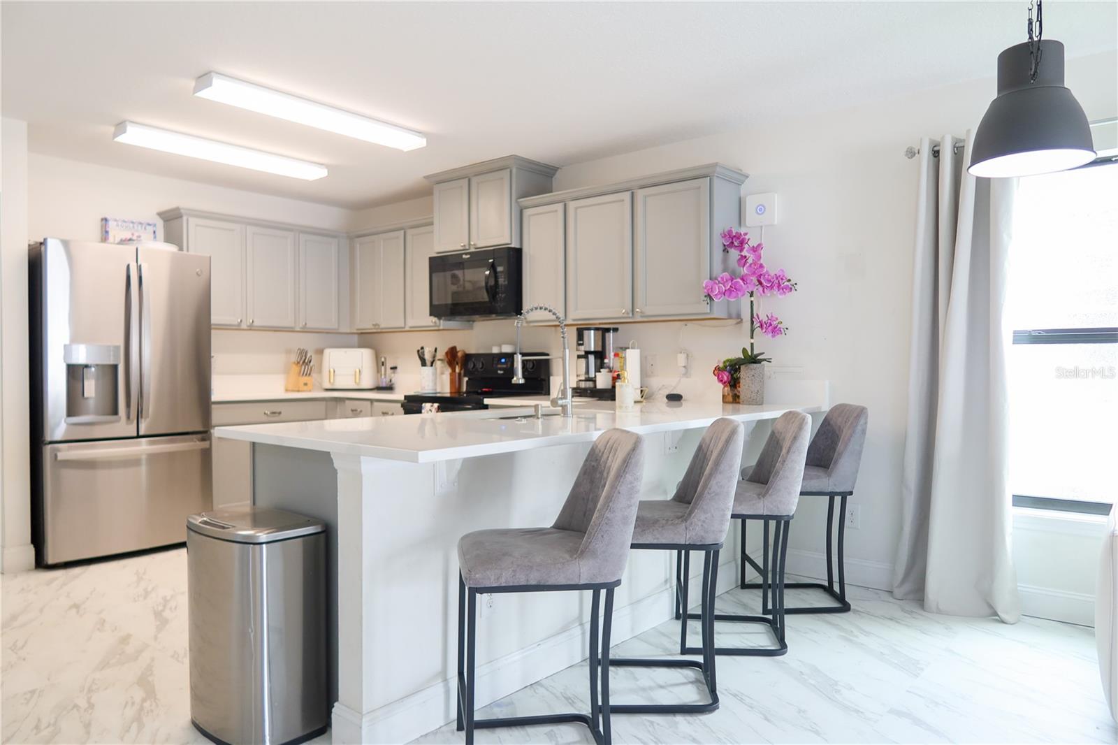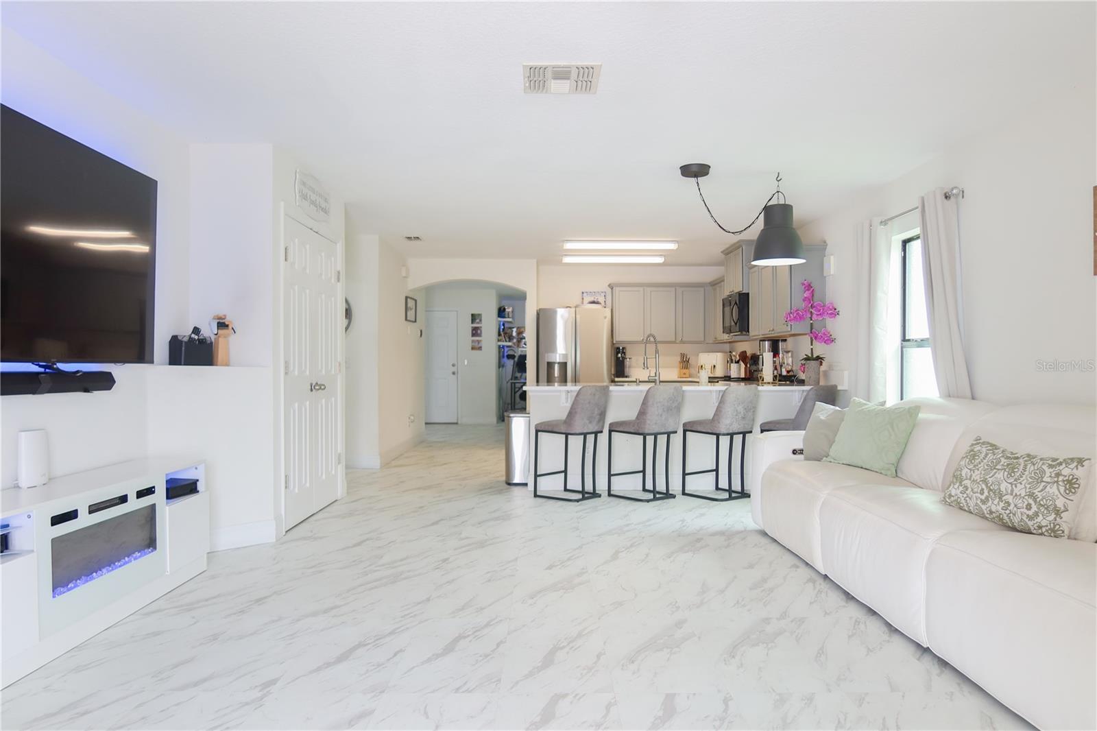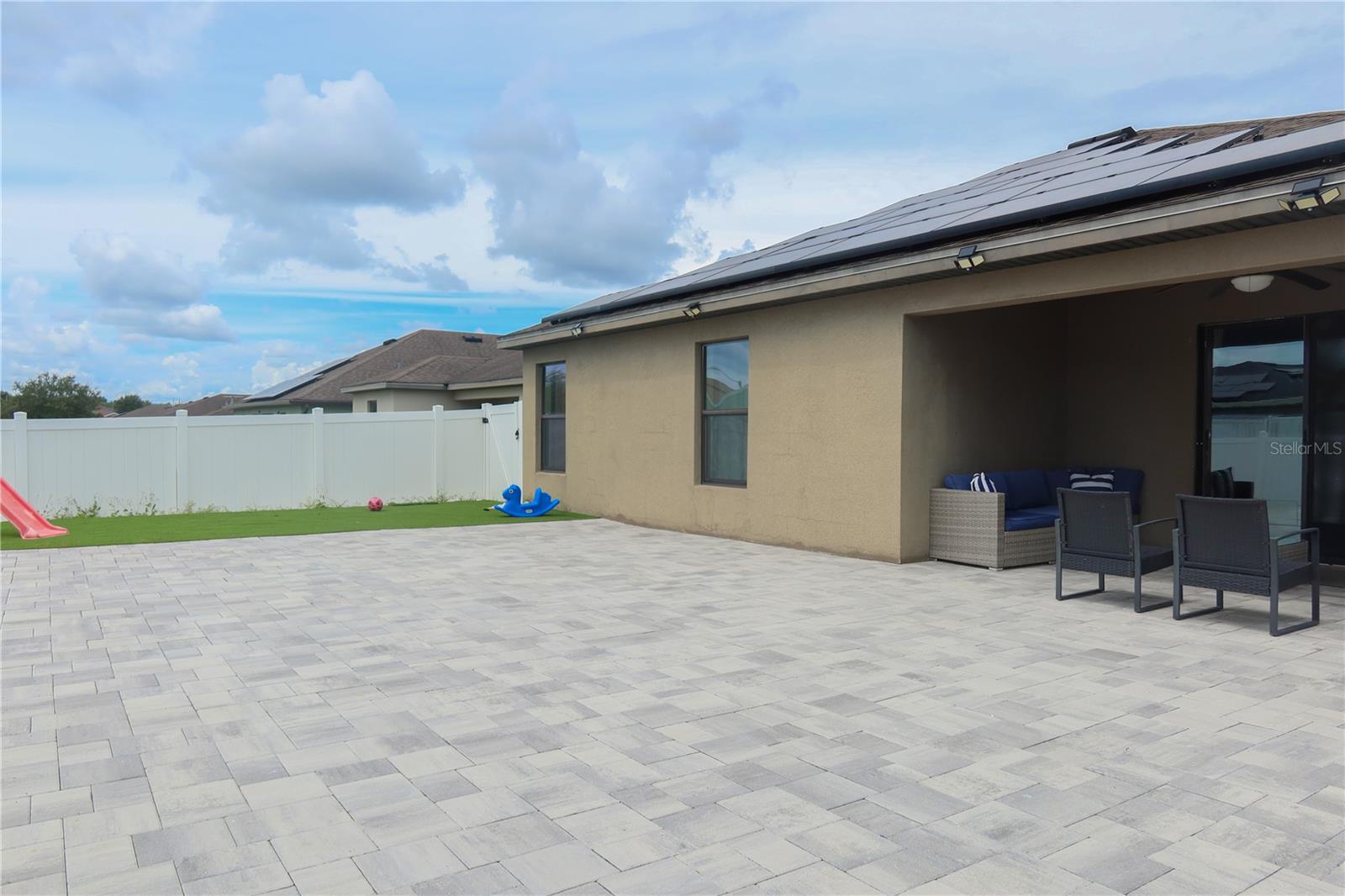 Welcome to this beautiful and spacious home! It has 4 bedrooms, 2 full bathrooms, and a 2-car garage. Inside, you’ll find an open layout that’s great for daily life and entertaining. The kitchen and bathrooms were upgraded with new quartz countertops, giving the home a clean and modern look. The bedrooms are spacious and comfortable, perfect for the whole family. The home also comes with solar panels under a lease program, keeping energy costs low—about $170 per month—while offering sustainable living. The backyard is a big highlight! The owners invested a lot to make it both beautiful and easy to care for, with synthetic grass and brick pavers covering the rest of the space. It’s perfect for barbecues, family time, or just relaxing outdoors. Plus, the community offers a pool, playgrounds, and more with a low HOA fee. This home combines comfort, savings, and a wonderful outdoor lifestyle—ready for you to enjoy the best of Florida living!