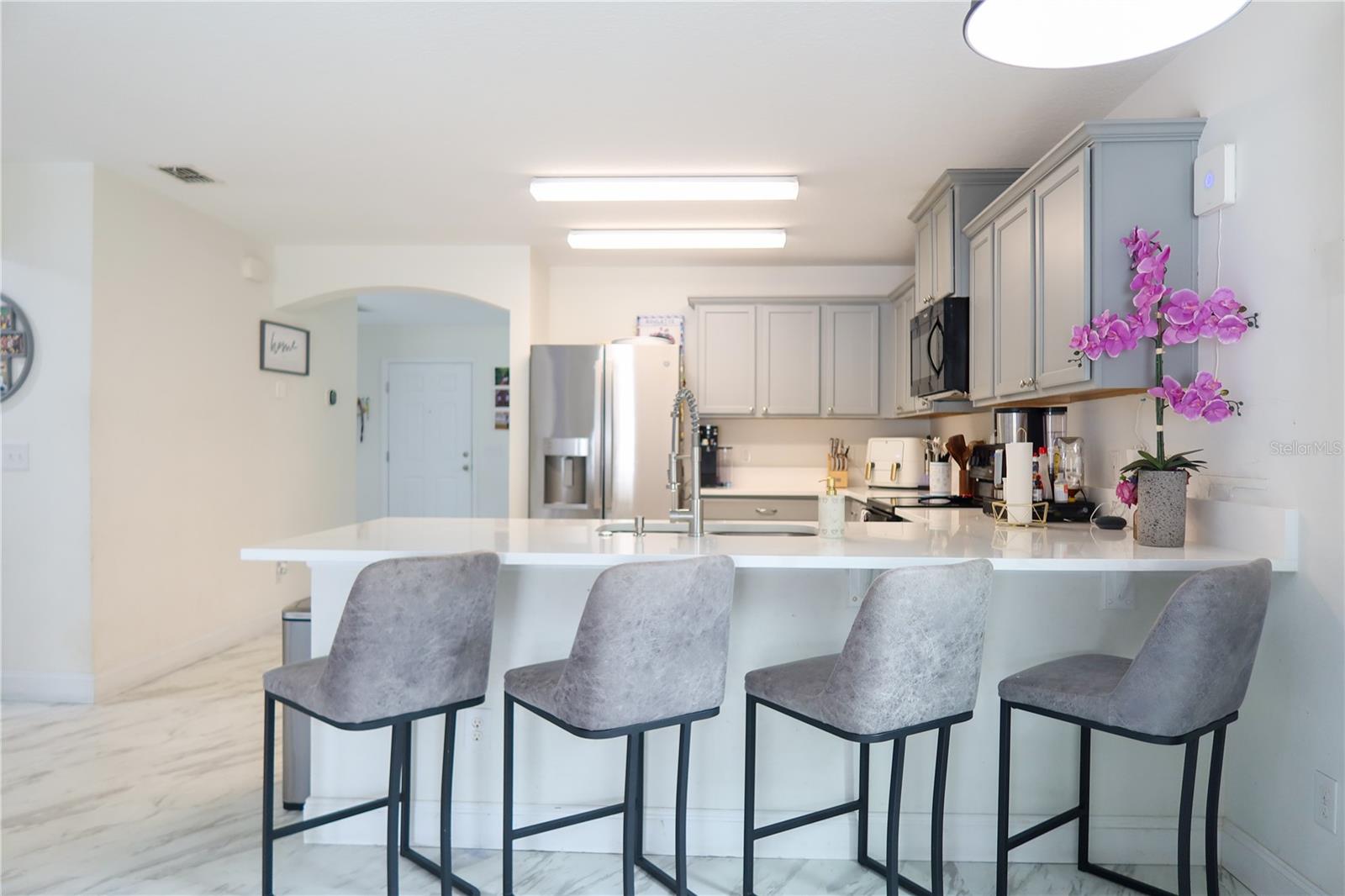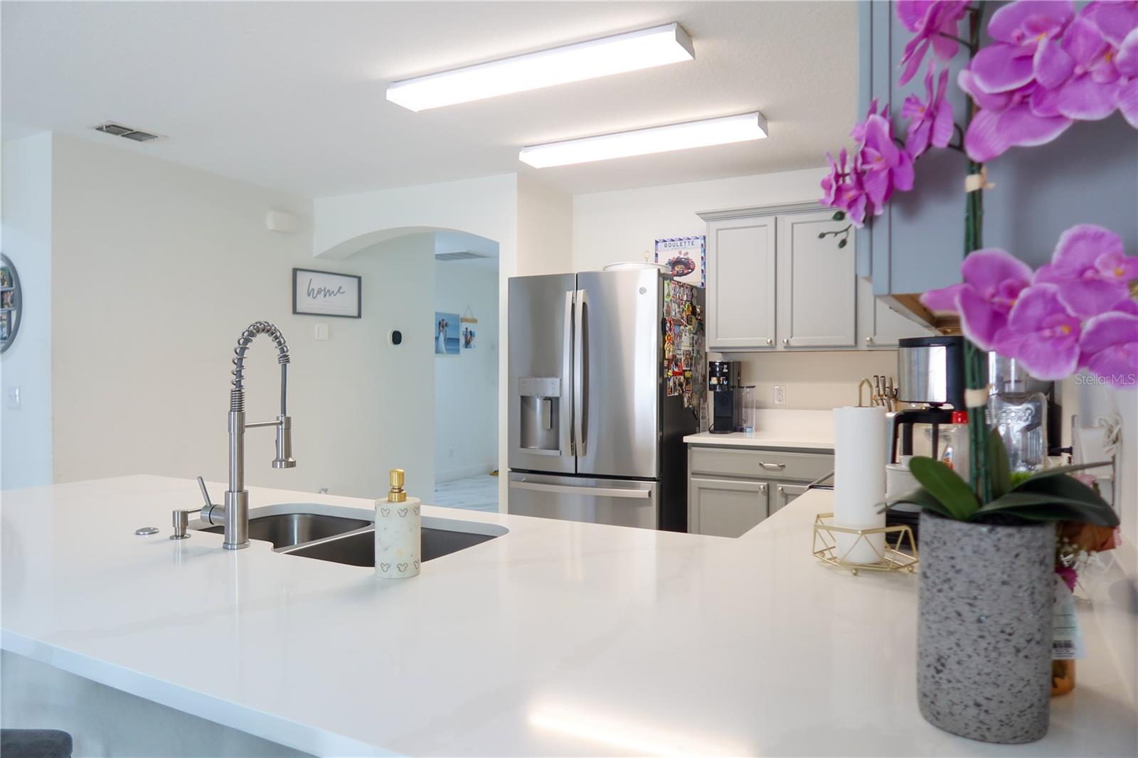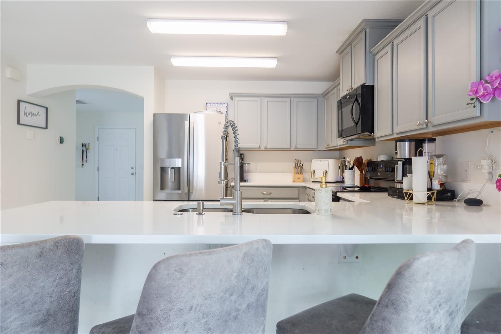 Welcome to this beautiful and spacious home! It has 4 bedrooms, 2 full bathrooms, and a 2-car garage. Inside, you’ll find an open layout that’s great for daily life and entertaining. The kitchen and bathrooms were upgraded with new quartz countertops, giving the home a clean and modern look. The bedrooms are spacious and comfortable, perfect for the whole family. The home also comes with solar panels under a lease program, keeping energy costs low—about $170 per month—while offering sustainable living. The backyard is a big highlight! The owners invested a lot to make it both beautiful and easy to care for, with synthetic grass and brick pavers covering the rest of the space. It’s perfect for barbecues, family time, or just relaxing outdoors. Plus, the community offers a pool, playgrounds, and more with a low HOA fee. This home combines comfort, savings, and a wonderful outdoor lifestyle—ready for you to enjoy the best of Florida living!