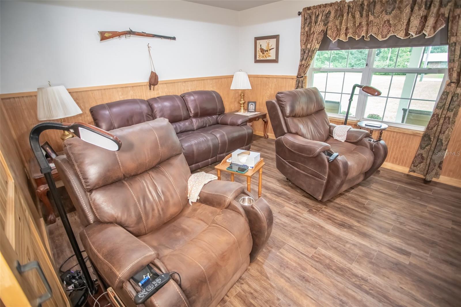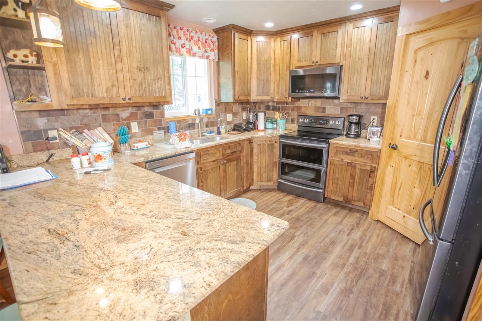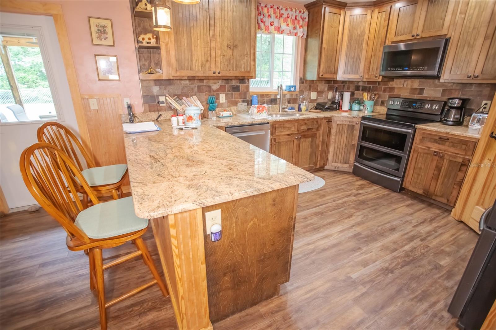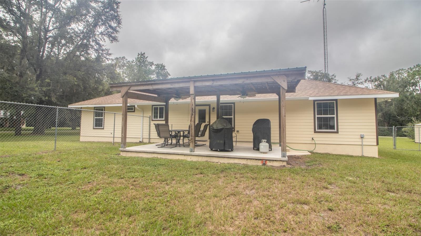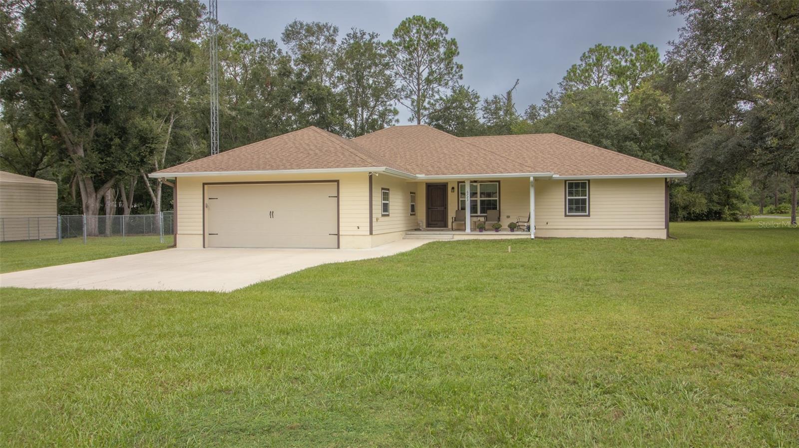 Welcome to this stunning custom home set on 1.23 acres, blending elegance and functionality both inside and out. This 3-bedroom, 2-bath gem boasts oversized closets, gorgeous wood cabinetry, and sleek granite countertops throughout. Every detail speaks to quality, from the solid wood doors to the spacious laundry area designed for convenience. Step outside to the expansive 22x14 covered rear deck, perfect for entertaining, complete with ceiling fans to keep things cool. The charming front porch invites you to relax and enjoy the serene surroundings. For those seeking extra space, there's a dedicated 18x21 workshop/gym, ideal for hobbies or a personal man cave. Car enthusiasts and adventurers will love the impressive 35x40 metal building, featuring a 10'' concrete slab and a convenient drive-thru design, perfect for storing motorhomes, boats, or other large toys. This home truly shines, offering the feel of brand-new construction with every thoughtful detail.