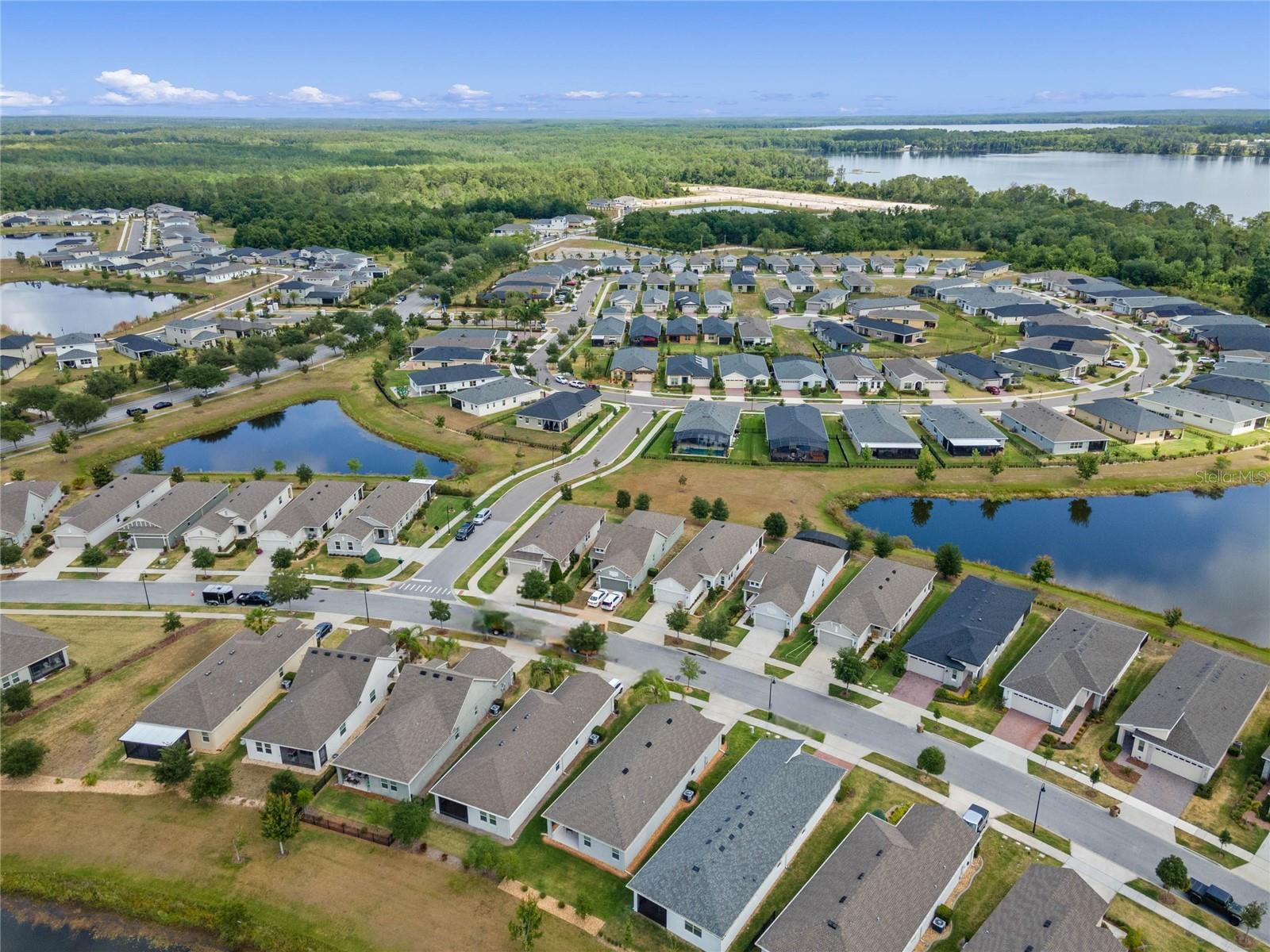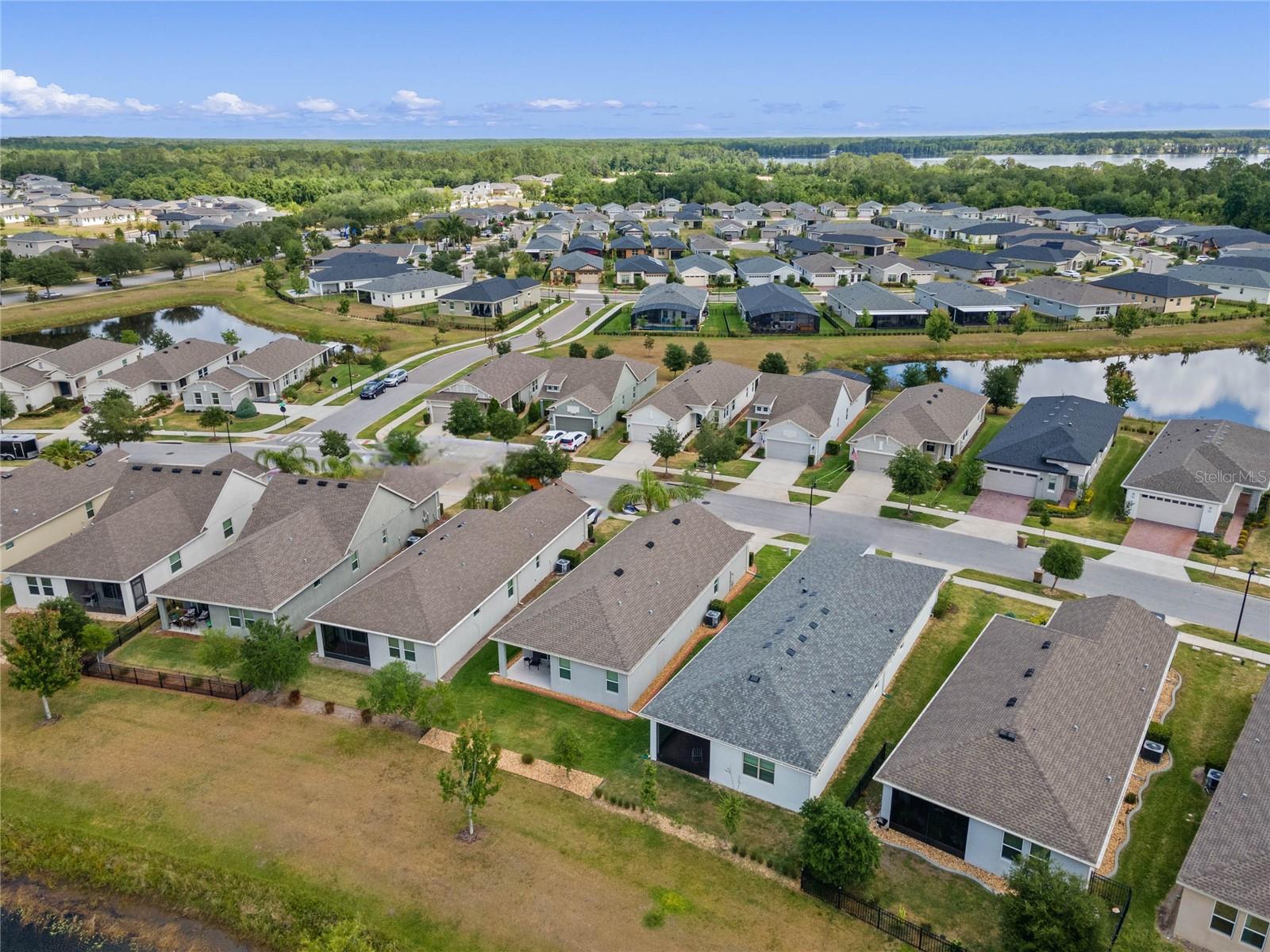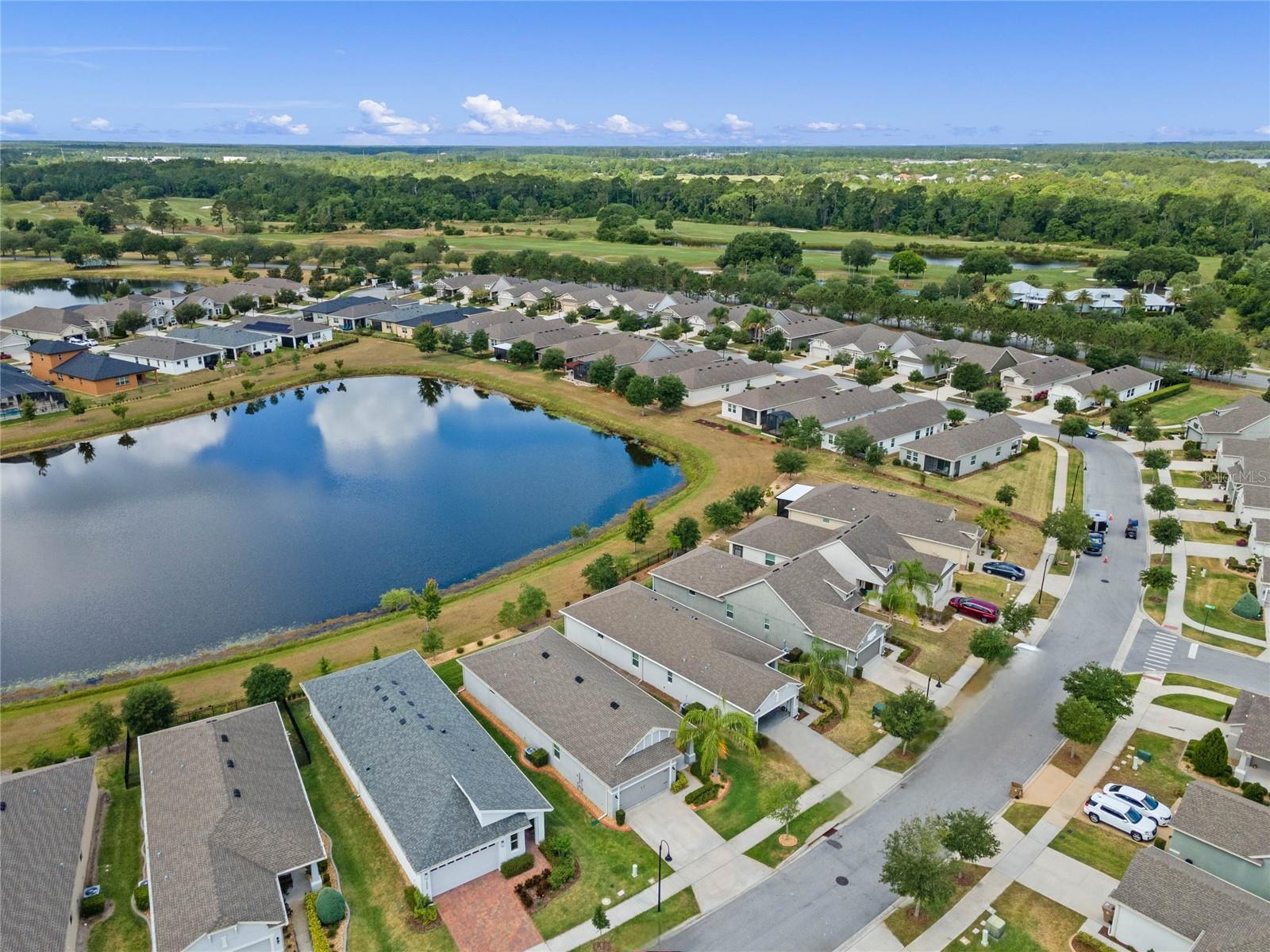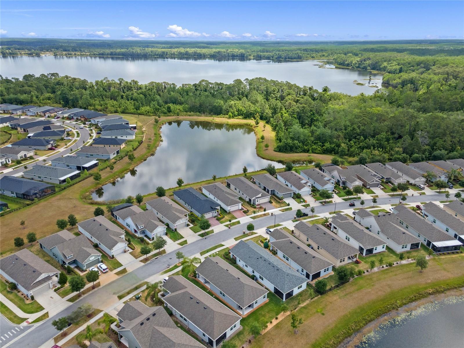 One or more photo(s) has been virtually staged. FULL 3 BEDROOM MODERN HOME with TRANQUIL LAKE VIEWS in a GATED 55+ COMMUNITY! TOUR THE HOUSE WITH THE VIRTUAL TOUR and VIDEO WALK THROUGH LINKS. As you enter your new home you’ll find elegant HARDWOOD FLOORING throughout. The OPEN CONCEPT living room and kitchen will become the heart of your home. Enjoy preparing meals among ample Silestone QUARTZ countertops, stainless steel appliances, beautiful 42”wood cabinetry with crown molding, dashing tile backsplash, and a LARGE CLOSET PANTRY. Serve meals and snacks at the breakfast bar, dinette area, or even out on your SCREENED PATIO, which will become your favorite spot for your morning coffee as you take in the calming water views and listen to chirping birds. The PRIMARY SUITE is a retreat at the rear of the house, with a bedroom spacious enough for your KING SIZE bedroom set, a WALK-IN CLOSET, DUAL SINK VANITY, separate water closet, and an elegant OVERSIZED STEP-IN TILE SHOWER with MULTIPLE SHOWERHEADS. Two other spacious secondary bedrooms and a full bath are found on the opposite side of the house, and can be closed off with a hidden pocket door, giving visiting guests some additional privacy. Other features found throughout the home include tray ceilings, ceiling fans, separate laundry room, and radiant barrier roof, to name a few. Prepare to spend your days meeting up with friendly neighbors at the clubhouse that houses a fitness center and activity room always busy with various events like mahjong, Zumba, yoga, book club, game night, canasta, and other seasonal activities throughout the year. Neighborhood amenities also include a ZERO-ENTRY RESORT STYLE POOL, outdoor sitting/entertainment area, PICKLEBALL/TENNIS courts, miles of walking trails, and more. Or maybe you’ll go out for a round of golf on the 18-hole Johnny Miller golf course, boating on Buck Lake, or shopping with a bite to eat at the Harmony marketplace. If you’re looking for a 2nd home or are making a long-distance move, this is the one for you! (House includes washer and dryer. Plus the house is located in a USDA Loan Eligibility Zone, where you might qualify to purchase for 0% down.) The HOA makes living easy here and takes care of lawn maintenance so you have more time to…….visit local beaches, theme parks, Lake Nona Medical City, or the Orlando International Airport, all within reach…..or relax and enjoy the sweet life. After all, you earned it!