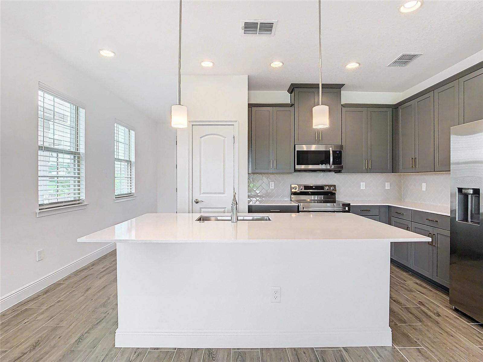 Welcome to 3200 Oxbow Ct, a stunning one-story home nestled in the heart of the highly desirable Enclaves, Lakes of Harmony. This home offers 1,580 sq. ft. of bright and modern living space, with natural light flooding every room. The centerpiece of the home is the beautifully upgraded kitchen, featuring quartz countertops, sleek stainless steel appliances, and a stylish Soho Halo Grey herringbone tile backsplash. The crown molding on the cabinets adds an extra touch of elegance to this already refined space. Designed for comfort and style, this home’s open floor plan seamlessly blends the living and dining areas, making it ideal for both everyday living and entertaining. The covered lanai offers a serene retreat, with picturesque views of the green conservation area, creating a peaceful oasis right in your backyard. With gutters and thoughtful upgrades throughout, this home is both functional and beautiful. Living in Harmony means embracing a lifestyle centered around nature and exclusive amenities. The community boasts two private lakes, where residents can enjoy boating, kayaking, and canoeing. For outdoor lovers, Harmony offers over 12 miles of walking trails, bike lanes, pocket parks, and dog parks, providing endless opportunities for exploration and relaxation. Families will love the community swimming pool, splash pad water park, and various sports fields. The certified golf course preserve offers a pristine setting for golf enthusiasts, while the vibrant town center features shops, restaurants, and entertainment for all ages. Residents also enjoy a community garden, perfect for those looking to grow their own produce and connect with neighbors. Conveniently located near shopping centers and within walking distance to top-rated schools, this home provides a perfect balance of luxury, nature, and community living. Whether you're enjoying the peaceful conservation views or taking advantage of the many activities available, 3200 Oxbow Ct offers a lifestyle like no other. Don’t miss this opportunity to become part of the highly sought-after Harmony Golf Community—schedule your viewing today and make this exceptional home yours! With its perfect blend of elegance, comfort, and nature-focused amenities, this home is a true gem. Don’t wait—come experience all that 3200 Oxbow Ct has to offer!