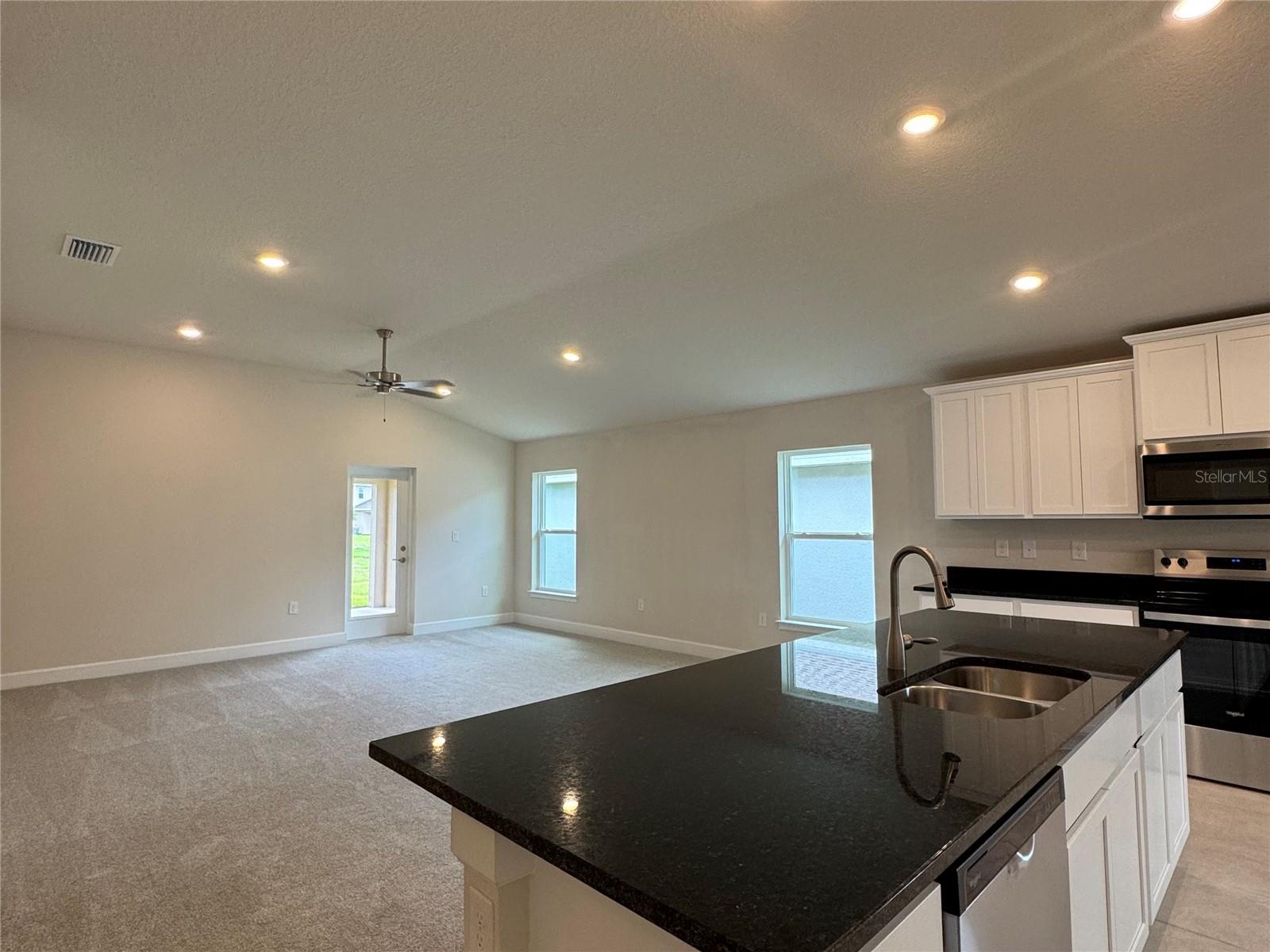 Brand New move-in ready Home 3 bedrooms and 2 bathrooms.This home is perfect for entertaining with its open floor plan. The upgraded kitchen features granite thru out the large island and counter tops. This kitchen has beautiful Whirlpool stainless steel appliances. You'll also love the spacious view facing the pond.The bathrooms are spacious and elegant with beautiful granite. Rest easy knowing your new home comes with a 1-year builder warranty and a 10-year structural warranty. Located near Harmony Main where you can enjoy the great amenities such as 12.5 miles of Trails and pathways, go and play at the stunning golf course Harmony Golf Preserve and even become a member of the community garden program. Harmony Central provides an everyday escape from ordinary living, this location offers both convenience and leisure. This is the last Harmony Community with No CDD and a very low HOA that will feature a beautiful community pool with cabanas.