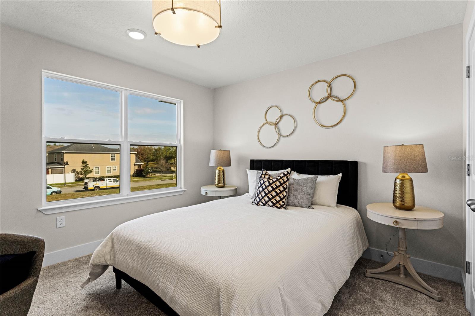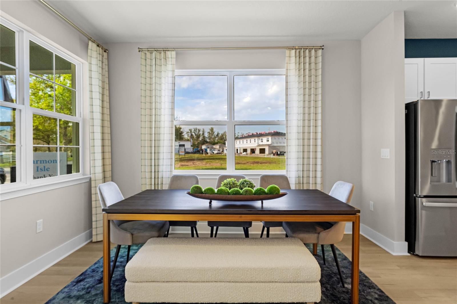 Welcome to this stunning 4-bedroom, 2.5-bathroom townhome located in the highly desirable Harmony Isle neighborhood, part of the master-planned community of Harmony. This former model home boasts 1,960 square feet an oversized two car garage beautifully designed living space and showcases top-of-the-line builder upgrades throughout. From the moment you enter, you’ll be impressed by the open-concept layout on the first floor, featuring elegant vinyl plank flooring that flows seamlessly through the spacious living room, dining area, and gourmet kitchen. The kitchen is a true centerpiece, with sleek quartz countertops, soft-close cabinetry, and high-end stainless steel appliances. Custom lighting and LED ceiling lights add warmth and sophistication to every room. A stylish metal baluster staircase leads to the second floor, where you’ll find a luxurious primary suite complete with a large walk-in closet and a beautifully appointed ensuite bathroom. Three additional bedrooms provide plenty of space for family, guests, or a home office, along with a generously sized second full bathroom.This home also features a well-designed laundry room with upper cabinets and a convenient utility sink—an often-overlooked luxury that adds to everyday comfort and function. Step outside to enjoy professionally upgraded landscaping, enhancing both curb appeal and outdoor enjoyment. Included in the sale are all window treatments, curtains, curtain rods, custom lighting, and security camera system, making this home truly move-in ready. Located within Harmony, a vibrant master-planned community, residents have access to exceptional amenities including a resort-style pool, fitness center, walking and biking trails, dog parks, playgrounds, and more. It’s the perfect blend of peaceful suburban living and modern convenience. Don’t miss the opportunity to own this one-of-a-kind, turn-key home in one of Central Florida’s most desirable communities. Schedule your private tour today!