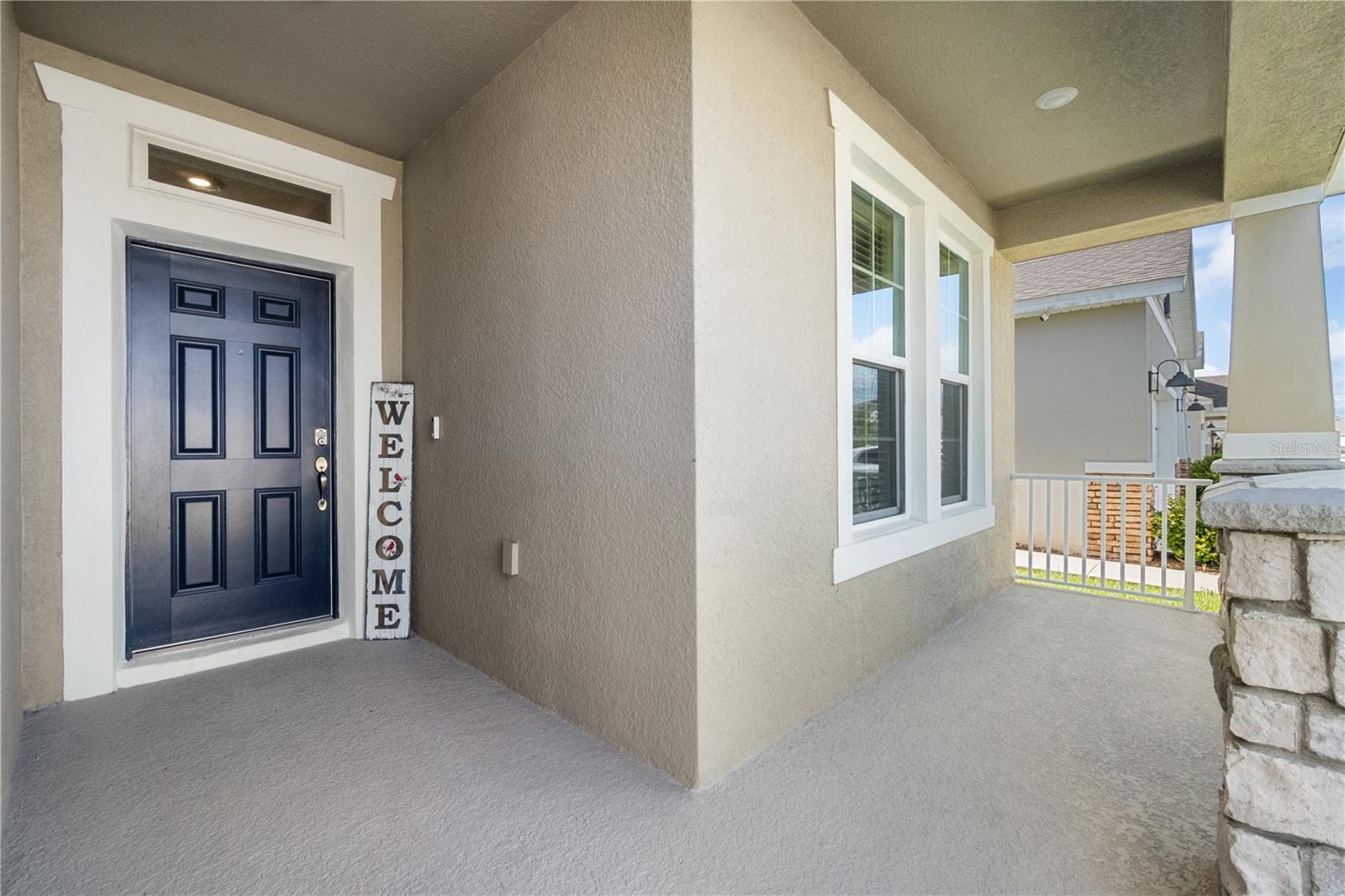 Welcome to 6946 Audubon Osprey Cove – Located in The Villages at Harmony. Discover the perfect blend of comfort, style, and serenity in this meticulously well maintained 4-bedroom, 3 full bathroom home, situated on a premium waterfront lot with no rear neighbors and captivating views of the pond and surrounding conservation area. Enjoy tranquil evenings on your back patio while taking in the sights and sounds of nature, with no rear neighbors and unobstructed views of the water and conservation area. From the moment you step inside, you'll be welcomed by a spacious foyer that opens into an airy open-concept floor plan featuring a large kitchen, spacious dining room, and roomy living room with oversized windows that flood the space with natural light and showcase the peaceful outdoor scenery. The heart of the home is the modern kitchen, complete with granite countertops, a large island with seating for four, and sleek tile flooring that flows seamlessly through all the main living areas. Plush carpet adds warmth and comfort in each of the bedrooms. Retreat to the luxurious primary suite, where you’ll find a spa-like en-suite bathroom featuring a garden tub, separate glass-enclosed shower, and dual vanities with granite countertops. A 3-car garage provides plenty of storage and flexibility for vehicles, hobbies, or a workshop. Washer and Dryer included. Enjoy peace of mind with a 1-year home warranty through American Home Shield covering all your mechanical systems, with full asking price. Located in the highly desirable Villages at Harmony, this home offers the perfect combination of privacy, elegance, and community living. Call to schedule your private showing today and make it your home.