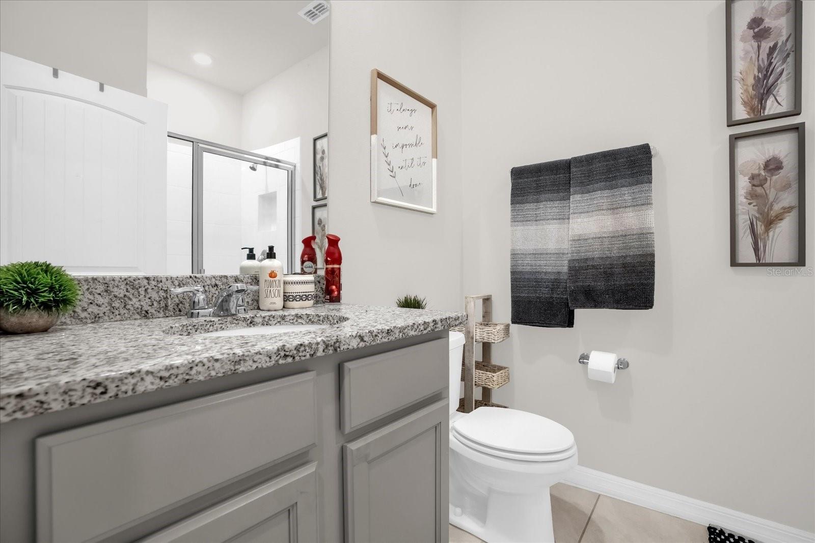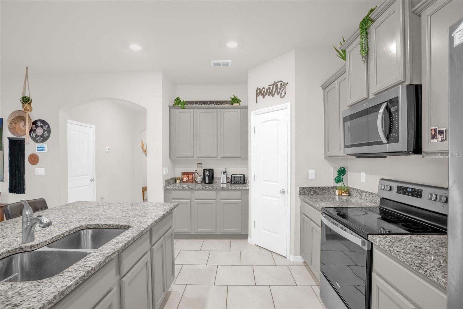 This beautifully designed 4-bedroom, 3-bathroom single-story home with a 3-car garage is located in the highly desirable Harmony West community of St. Cloud, FL. Built in 2021, it offers over 2,100 square feet of thoughtfully planned living space with a spacious open-concept layout. The modern kitchen features a large center island, granite countertops, stainless steel appliances, and a walk-in pantry, seamlessly connecting to the dining area and living room, perfect for entertaining or everyday living. The private primary suite is situated at the rear of the home and includes a generous walk-in closet and a luxurious bathroom with dual vanities and a tiled walk-in shower. Three additional bedrooms and two full baths provide flexible space for family, guests, or a home office. The home also features smart home technology, energy-efficient construction, water softner, and a covered lanai. The extended 3-car garage offers plenty of room for vehicles, storage, or a home gym. As part of the master-planned Harmony West community, residents enjoy resort-style amenities including a clubhouse, pool, fitness center, splash pad, and playground, all with low HOA fees and easy access to Lake Nona, top-rated schools, shopping, and major highways.