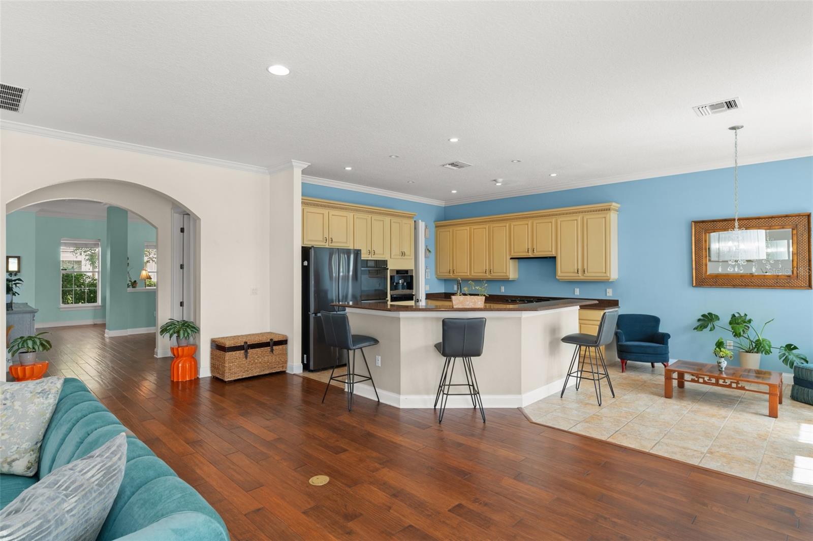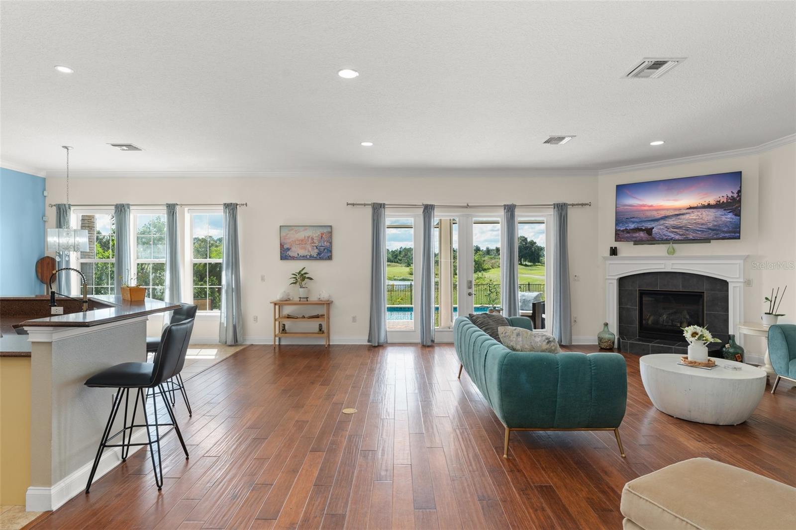 Experience the perfect balance of elegance, comfort, and Florida lifestyle in this stunning home set along one of the state’s premier golf courses. With sweeping fairway and water views, this property offers a rare combination of privacy, beauty, and convenience—an ideal retreat for those who appreciate refined living and easy access to Central Florida’s best destinations. Step inside to a bright, open floorplan designed for effortless flow and natural light. Expansive windows frame breathtaking views from nearly every room, while high ceilings and thoughtful architectural details create a sense of space and sophistication. The modern kitchen opens seamlessly to the living and dining areas, making it perfect for entertaining or simply enjoying the peaceful surroundings. All bedrooms are located upstairs, creating a serene and private living space. The primary suite is a true sanctuary, featuring stunning golf course vistas and a spa-inspired bath designed for relaxation. Outside, a resort-style pool area becomes your personal oasis. Enjoy sun-drenched afternoons or evening gatherings with tranquil water and fairway backdrops—offering the perfect blend of luxury and leisure. Whether hosting friends or unwinding after a long day, this space is designed to capture the essence of Florida living. Located within minutes of major highways, this home provides quick access to top-rated schools, shopping, dining, and the region’s fastest-growing business and entertainment corridors. You’ll enjoy the best of both worlds—quiet, upscale living surrounded by natural beauty, yet connected to everything Central Florida has to offer. Impeccably maintained and move-in ready, this property presents a rare opportunity to own a piece of paradise on one of Florida’s most desirable golf courses. Here, every day feels like a getaway—beautiful, bright, and perfectly positioned for your next chapter.