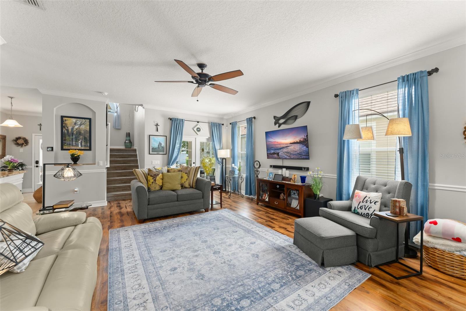 Rare Harmony Gem: 4-Bedroom Home with Separate In-Law/Guest Apartment! Welcome to this move-in-ready 4-bedroom, 3.5-bathroom corner-lot home in the highly desirable Harmony community. The main house offers 3 spacious bedrooms and 2.5 bathrooms, while the detached garage features a fully furnished 1-bedroom, 1-bathroom apartment above with its own private entrance—ideal for guests, in-laws, extended family, multi-generational living or rental income! Step inside the main home to beautiful bamboo flooring flowing into an elegant great room with crown molding, custom lighting, and decorative ceiling fans. The updated kitchen shines with stainless steel appliances and opens seamlessly to a generous dining area perfect for entertaining. All three main-house bedrooms are conveniently located upstairs, including a luxurious owner’s suite with a stand-up shower, relaxing garden tub, and dual vanities. Recent upgrades abound: newer roof (2021), brand-new water heater (2024), updated HVAC systems, new washers and dryers (in both the main home and apartment), fresh interior paint, newer carpet, water softener system, charming picket fence, and brick paver accents. Outdoor living is a delight with two screened-in porches for year-round relaxation—perfect for morning coffee or evening unwinding—and the apartment's private patio offers a serene "treehouse" retreat with its own living room, kitchenette, bedroom, full bath, and laundry. Residents of Harmony enjoy an exceptional lifestyle with two large lakes, community-owned boats and private docks, pools, parks, walking trails, and a welcoming neighborhood vibe. Zoned for top-rated Harmony schools (Community School, Middle, and High). Special Financing Incentive: This home qualifies for a reduced interest rate through the seller's preferred lender—a lender-paid rate buydown that lowers your monthly payment! This upgraded home with bonus living space is a rare find—schedule your private showing today before it's gone!