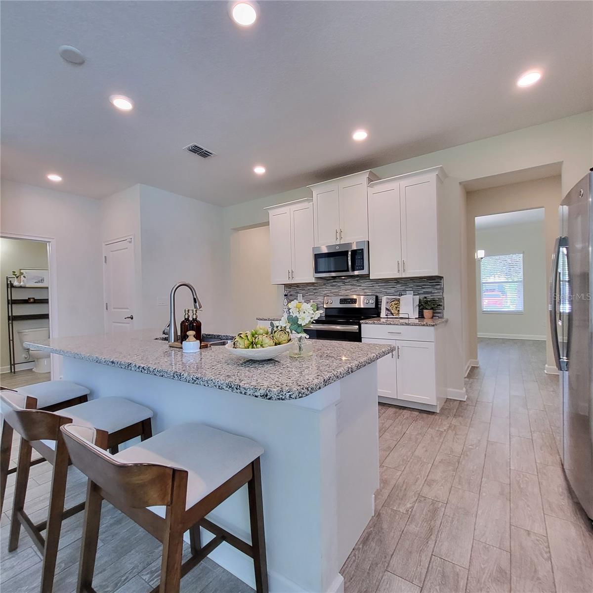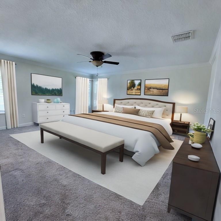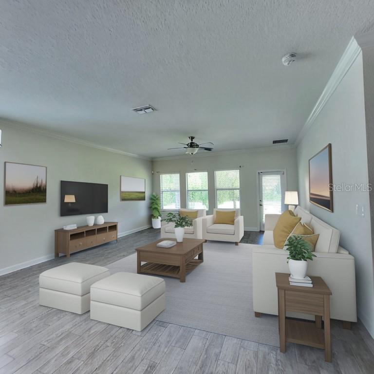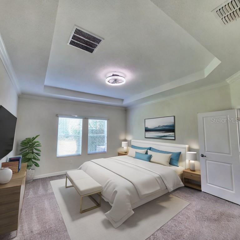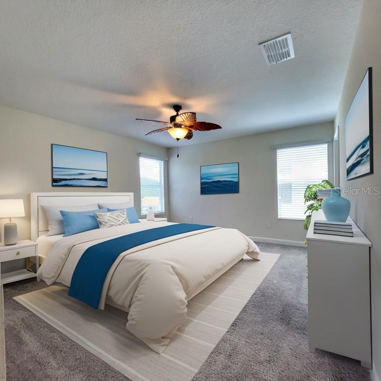 Location, Location ,Location! This beautiful 3751 square-foot home with five bedrooms and 4 1/2 bath built in 2017 awaits. The first floor offers a beautiful open floor plan with lots of window to allow for that beautiful Fl sun with a bright kitchen and a large walk-in pantry. There are lots of cabinets and counterspace with open floor plan including a spacious double primary bedroom on the first floor that has a large walk-in closet to please anyone, a large bathroom with soaking tub and separate shower and dual vanity. A small laundry room is equipped with a stack washer and dryer for convenience just outside the primary bedroom. There is also a separate formal dining room just off the entry that can be used for dining, a large office, or den. The second floor has a much larger primary bedroom with corner windows, in which you can get glimpses of buck Lake, and two huge walk-in closets while also offering an en suite bath with large soaking tub jet, and separate shower with linen closet. The 3rd bedroom also offers an en suite bathroom the 4th and 5th bedroom are large and complement the spacious loft area beautifully. There is a large laundry room on the second floor also. If that were not enough, there are no rear neighbors and a covered lanai for your enjoyment and privacy. The three-car garage has tandem parking for three vehicles to use, or it also makes a great storage space. Have you seen the community? Harmony community schools. (K through 5th.) is in the neighborhood. There are two community pools, Harmony Preserve golf course available for extra fees, lots of walking trails, playgrounds, sand, volleyball court, splash pads, multiple dog parks, fishing, piers, buck lake, and water amenities. The beauty of this neighborhood is amazing Harmony Square has a pizza restaurant, a coffee shop and a pet spa just to name a few. Wow! This home is perfect for multiple generational living with lots of room for everyone approximately 30-45 minute to Cocoa Beach and 40-50 minutes to Disney.