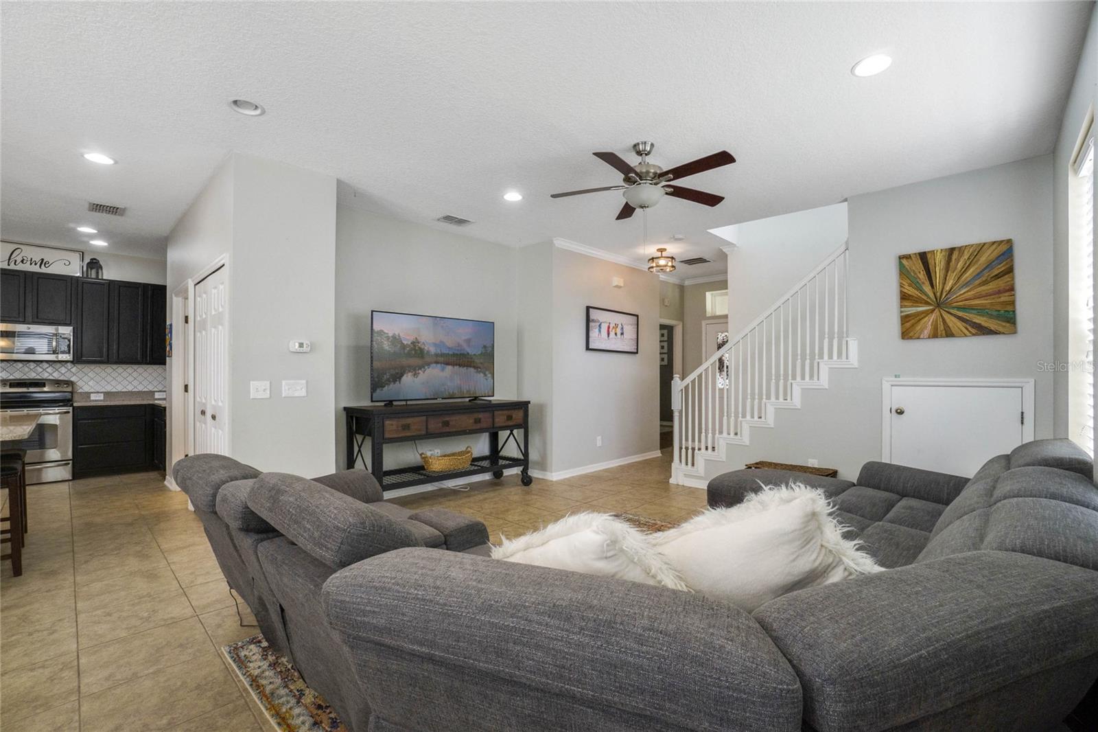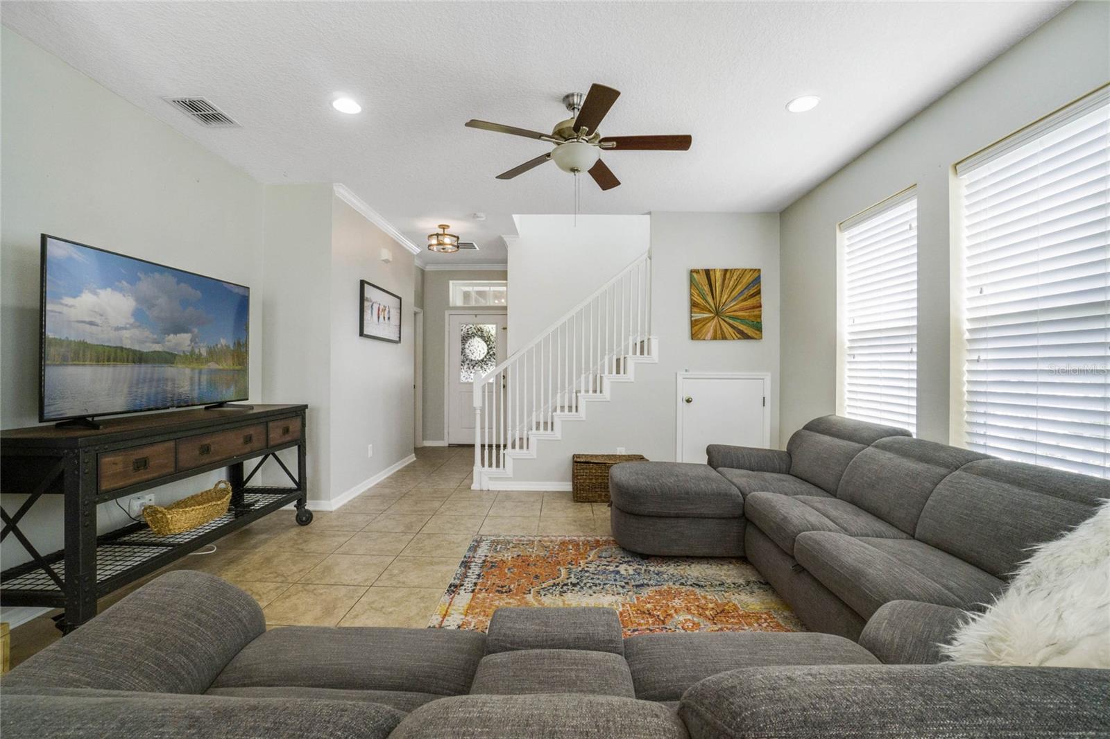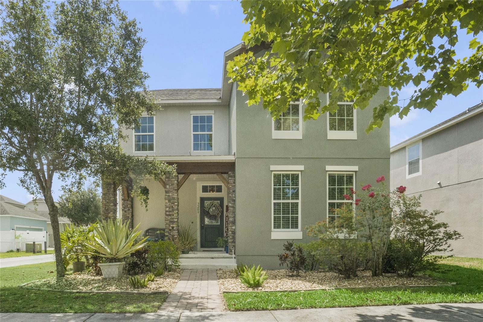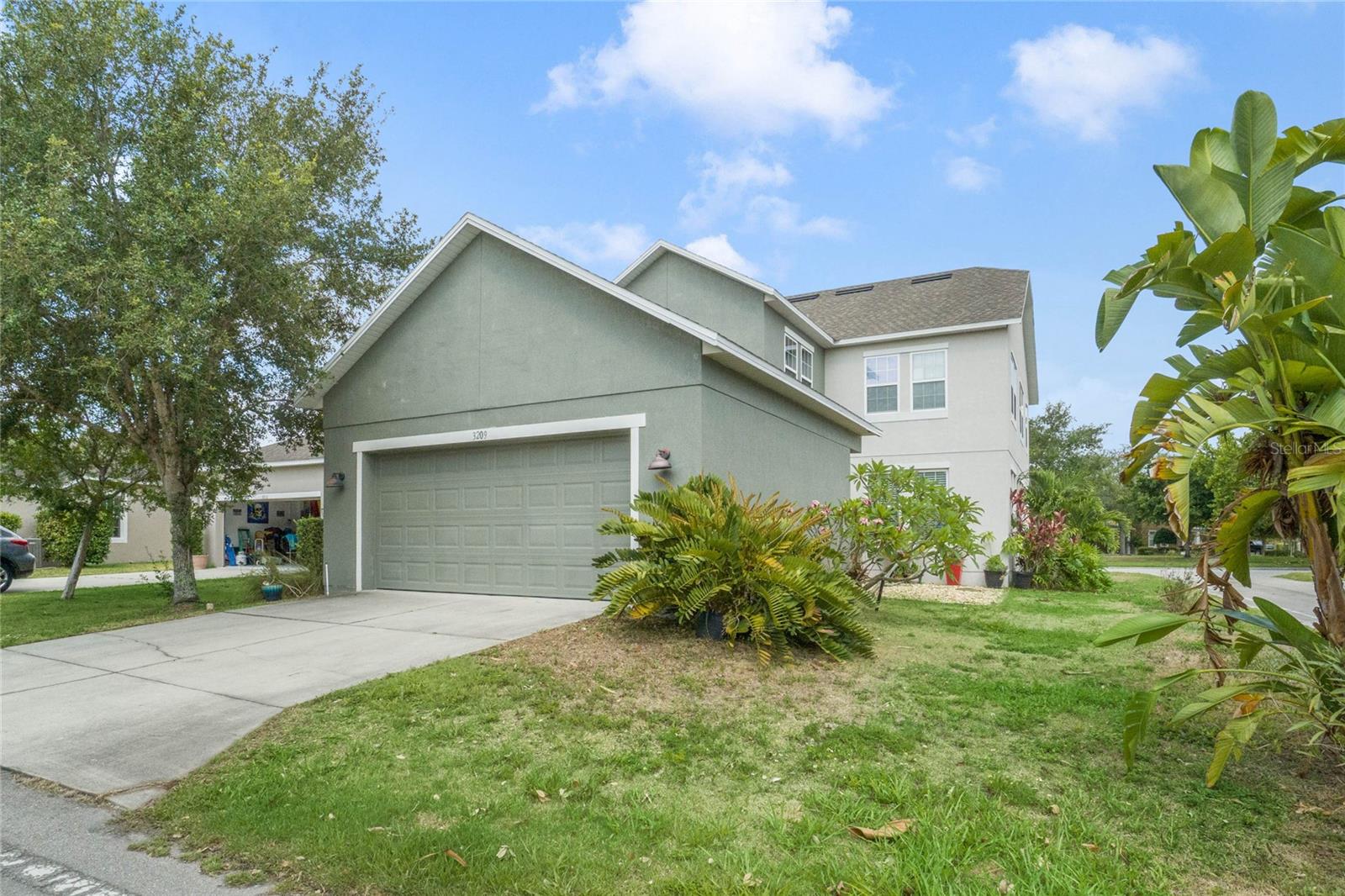 WELCOME HOME to this Harmony gem waiting for its new owner! This home boasts tons of space and is perfect for those who need just that. Downstairs upon entering you will find the primary bedroom with a walk-in closet and bathroom with dual sinks, soaking tub, and shower. Also downstair is a half bath, kitchen/dining/family room open concept with a large center island for entertaining, and the laundry room. Out the back kitchen door with be a great place to relax in the shade, BBQ, and enjoy a quaint and quiet area to unwind. The home has a rear garage separated by this outdoor porch. Young ones will love the under-the-stairs reading nook! Upstairs you will find the other 3 bedrooms, one with an en suite bathroom, another full bathroom, and a HUGE loft for another entertaining space. Sellers added ceiling fans, new entry light, blinds, backsplash in the kitchen, and added extra landscaping with river rocks and beautiful plants. The home is situated across from one of many of the parks/playgrounds within the neighborhood. Harmony has two community pools, a clubhouse, a gym that you can have access with a membership, and many community events throughout the year. Take a short drive to see all of the amazing theme parks in Central Florida or straight down 192 East to Melbourne Beach. Schedule a showing today to see this beautiful home! CDD is included in the property taxes.