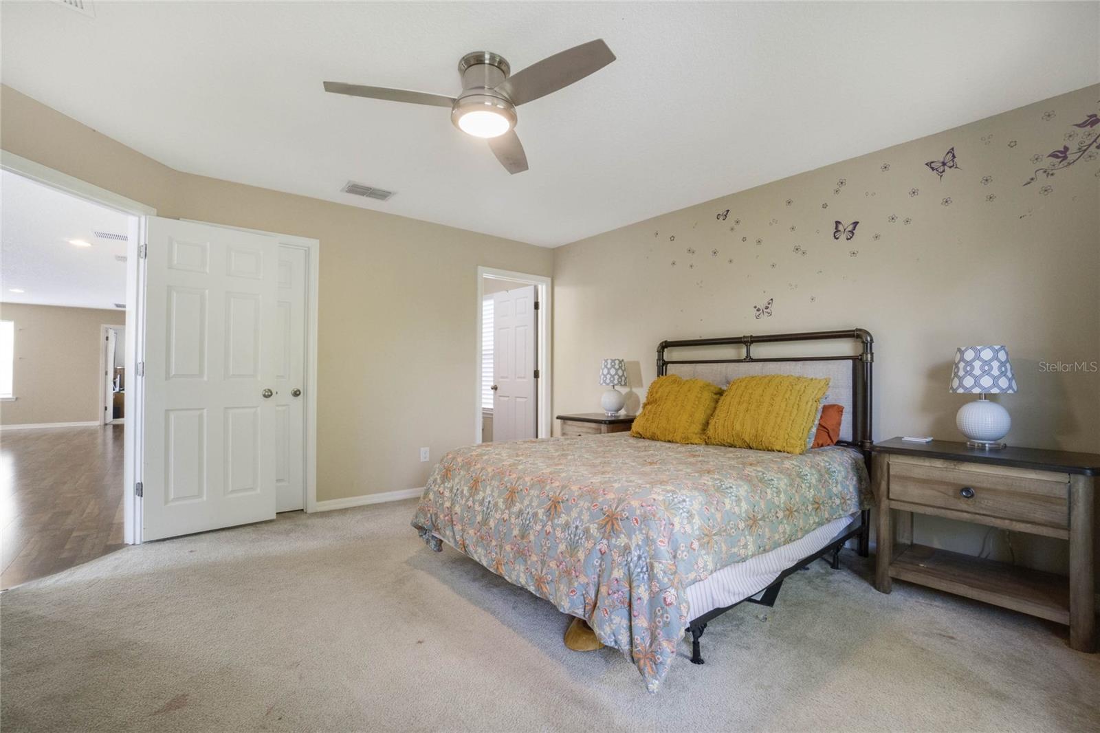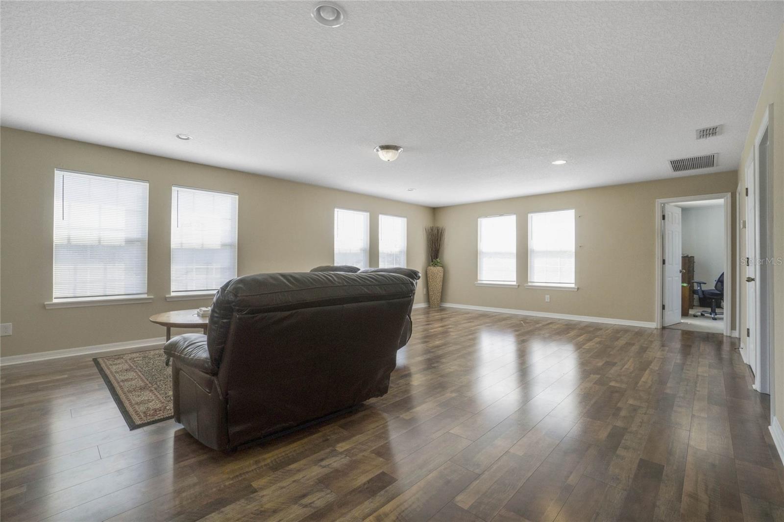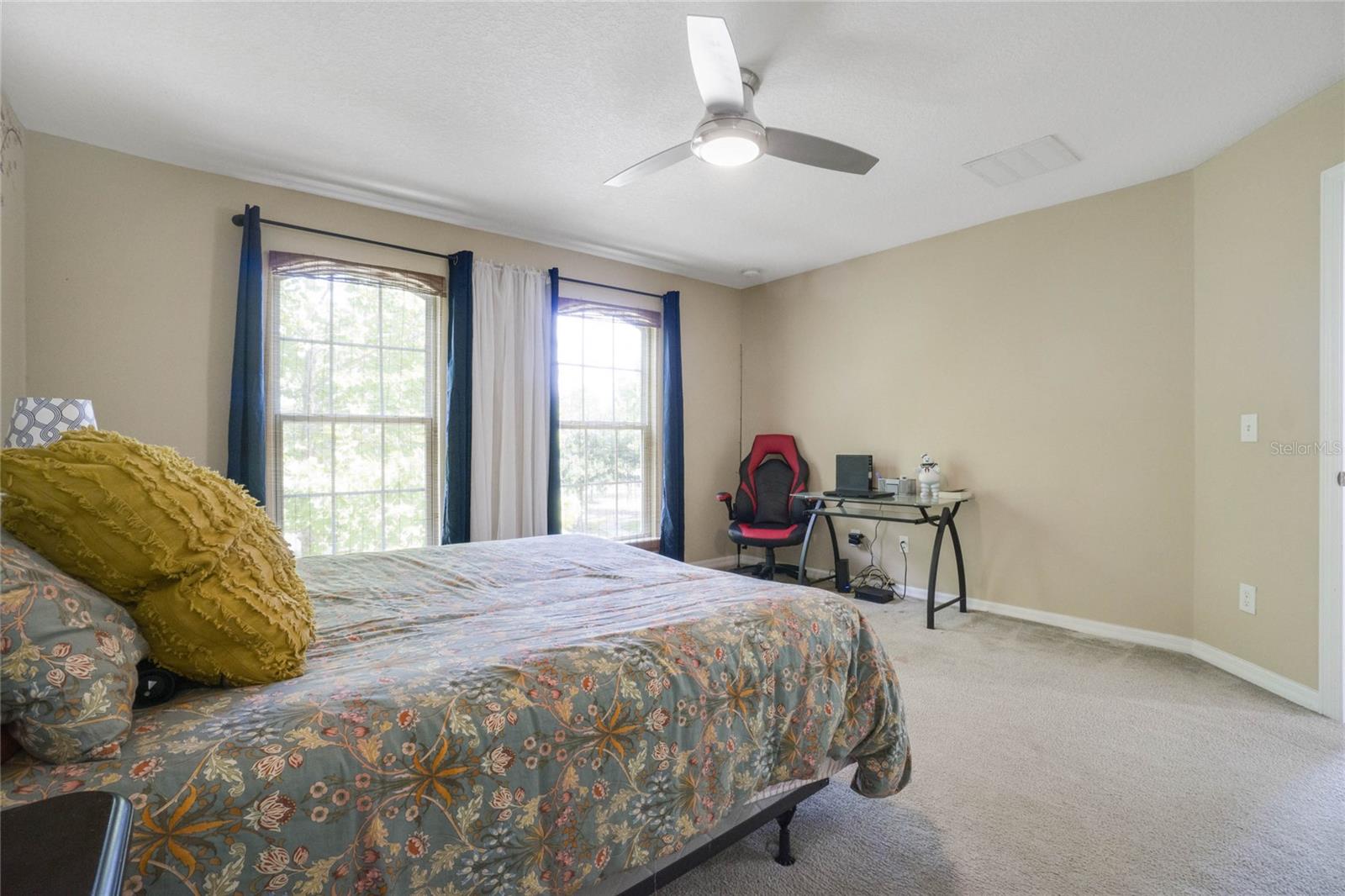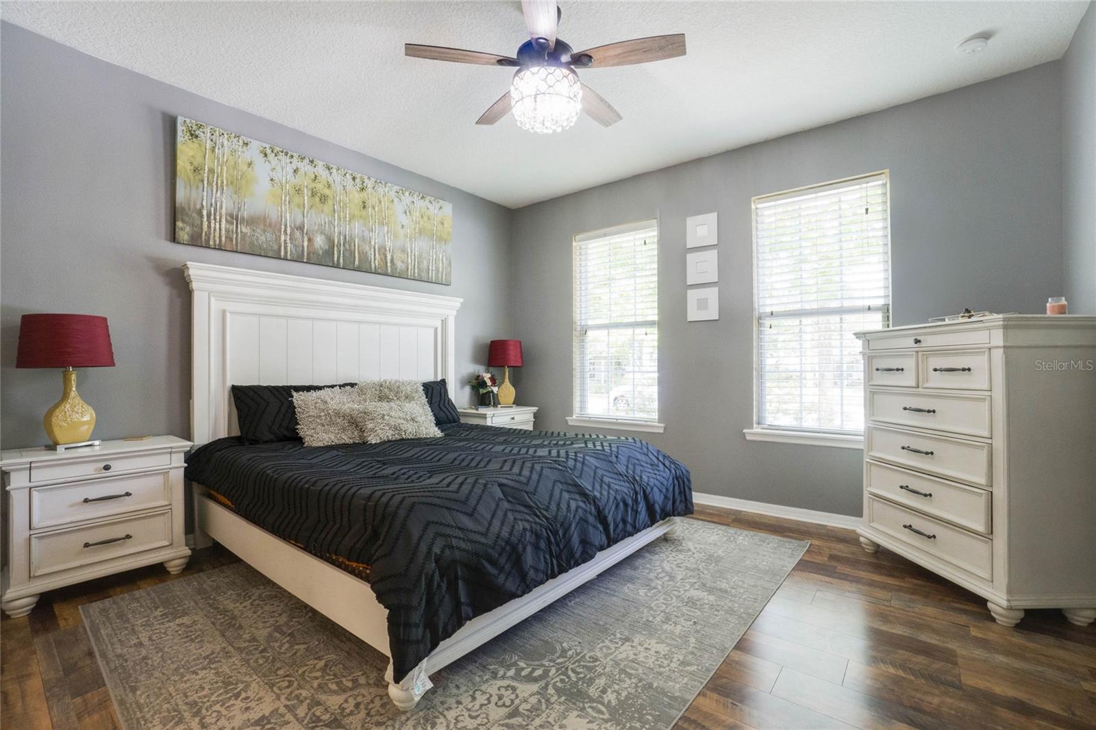 WELCOME HOME to this Harmony gem waiting for its new owner! This home boasts tons of space and is perfect for those who need just that. Downstairs upon entering you will find the primary bedroom with a walk-in closet and bathroom with dual sinks, soaking tub, and shower. Also downstair is a half bath, kitchen/dining/family room open concept with a large center island for entertaining, and the laundry room. Out the back kitchen door with be a great place to relax in the shade, BBQ, and enjoy a quaint and quiet area to unwind. The home has a rear garage separated by this outdoor porch. Young ones will love the under-the-stairs reading nook! Upstairs you will find the other 3 bedrooms, one with an en suite bathroom, another full bathroom, and a HUGE loft for another entertaining space. Sellers added ceiling fans, new entry light, blinds, backsplash in the kitchen, and added extra landscaping with river rocks and beautiful plants. The home is situated across from one of many of the parks/playgrounds within the neighborhood. Harmony has two community pools, a clubhouse, a gym that you can have access with a membership, and many community events throughout the year. Take a short drive to see all of the amazing theme parks in Central Florida or straight down 192 East to Melbourne Beach. Schedule a showing today to see this beautiful home! CDD is included in the property taxes.