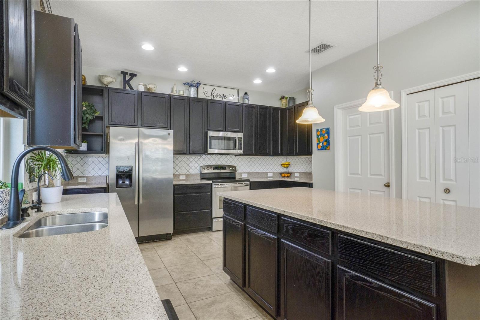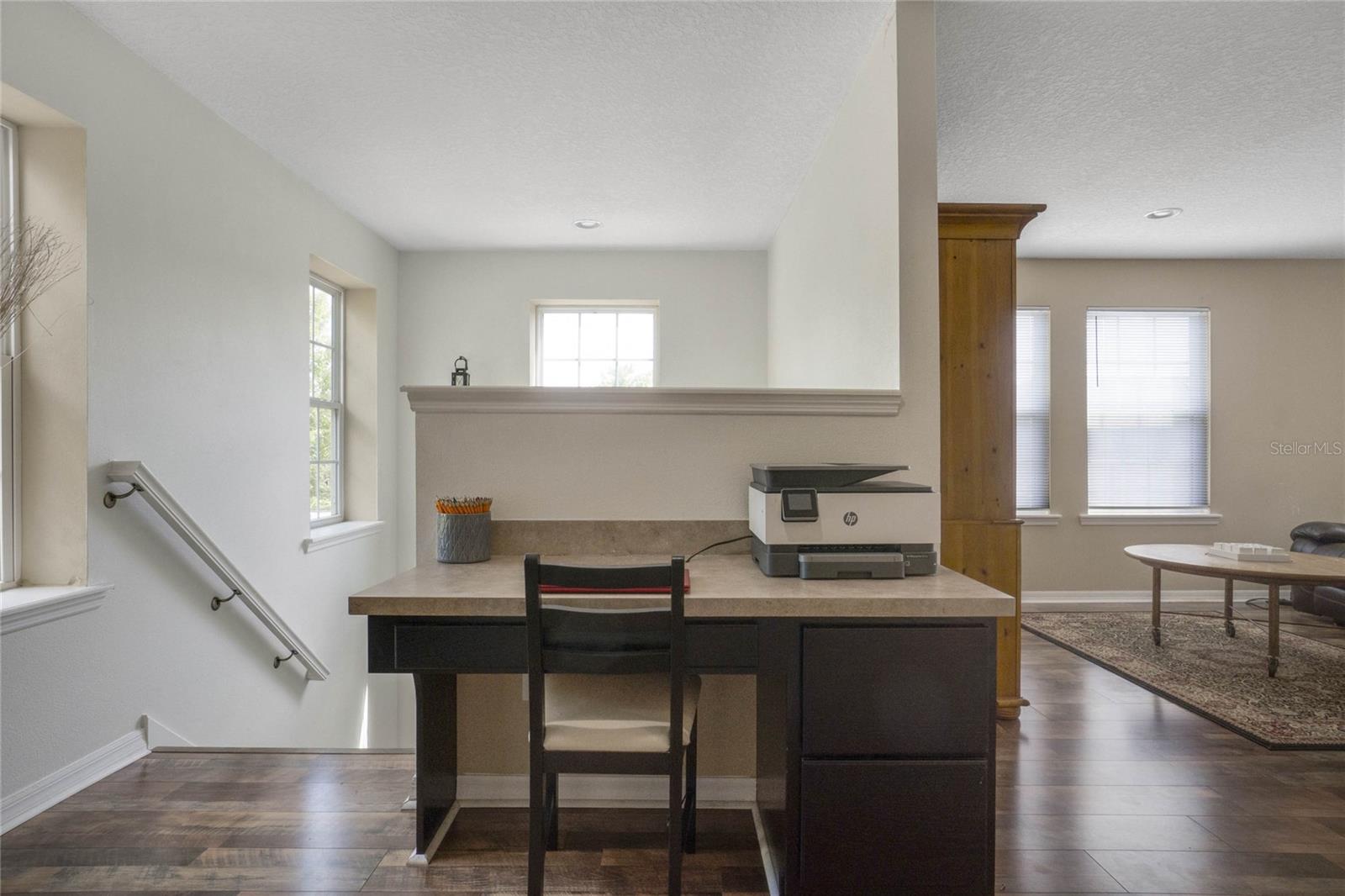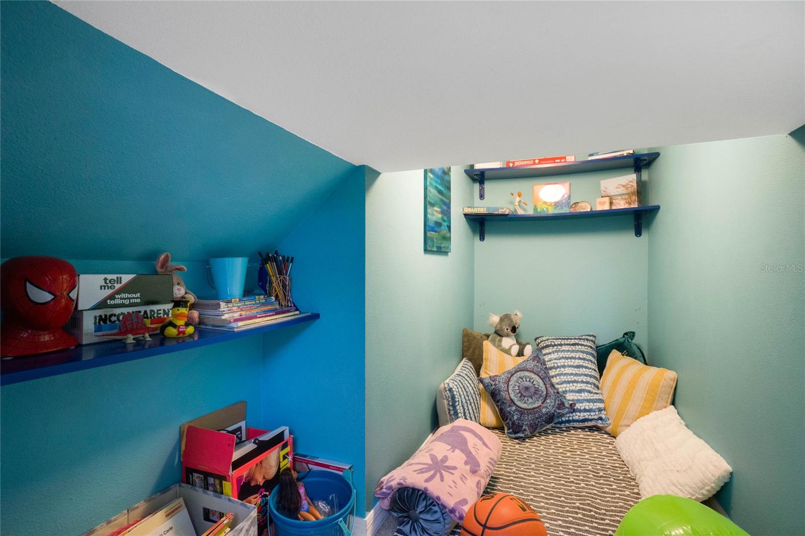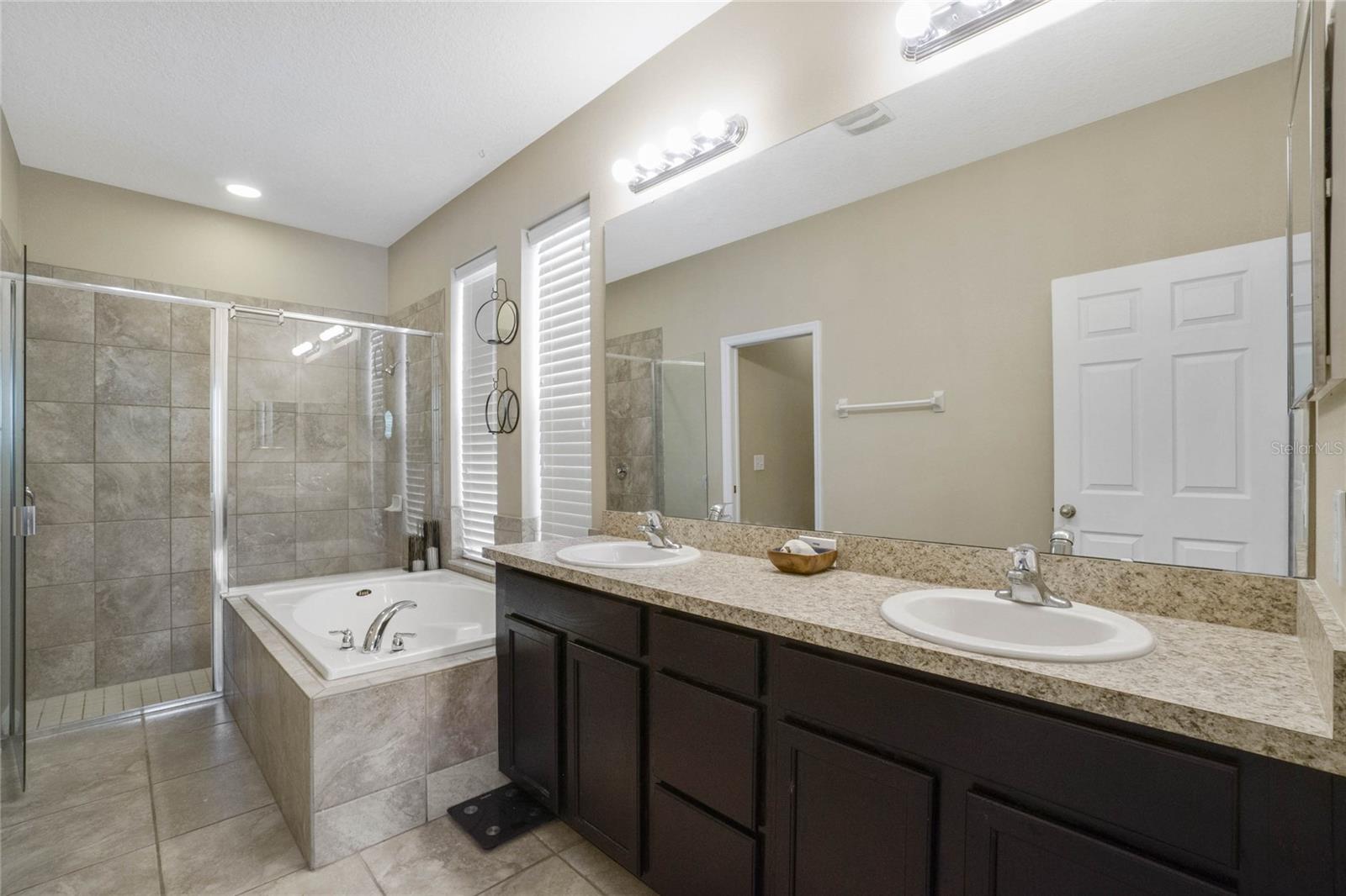 WELCOME HOME to this Harmony gem waiting for its new owner! This home boasts tons of space and is perfect for those who need just that. Downstairs upon entering you will find the primary bedroom with a walk-in closet and bathroom with dual sinks, soaking tub, and shower. Also downstair is a half bath, kitchen/dining/family room open concept with a large center island for entertaining, and the laundry room. Out the back kitchen door with be a great place to relax in the shade, BBQ, and enjoy a quaint and quiet area to unwind. The home has a rear garage separated by this outdoor porch. Young ones will love the under-the-stairs reading nook! Upstairs you will find the other 3 bedrooms, one with an en suite bathroom, another full bathroom, and a HUGE loft for another entertaining space. Sellers added ceiling fans, new entry light, blinds, backsplash in the kitchen, and added extra landscaping with river rocks and beautiful plants. The home is situated across from one of many of the parks/playgrounds within the neighborhood. Harmony has two community pools, a clubhouse, a gym that you can have access with a membership, and many community events throughout the year. Take a short drive to see all of the amazing theme parks in Central Florida or straight down 192 East to Melbourne Beach. Schedule a showing today to see this beautiful home! CDD is included in the property taxes.