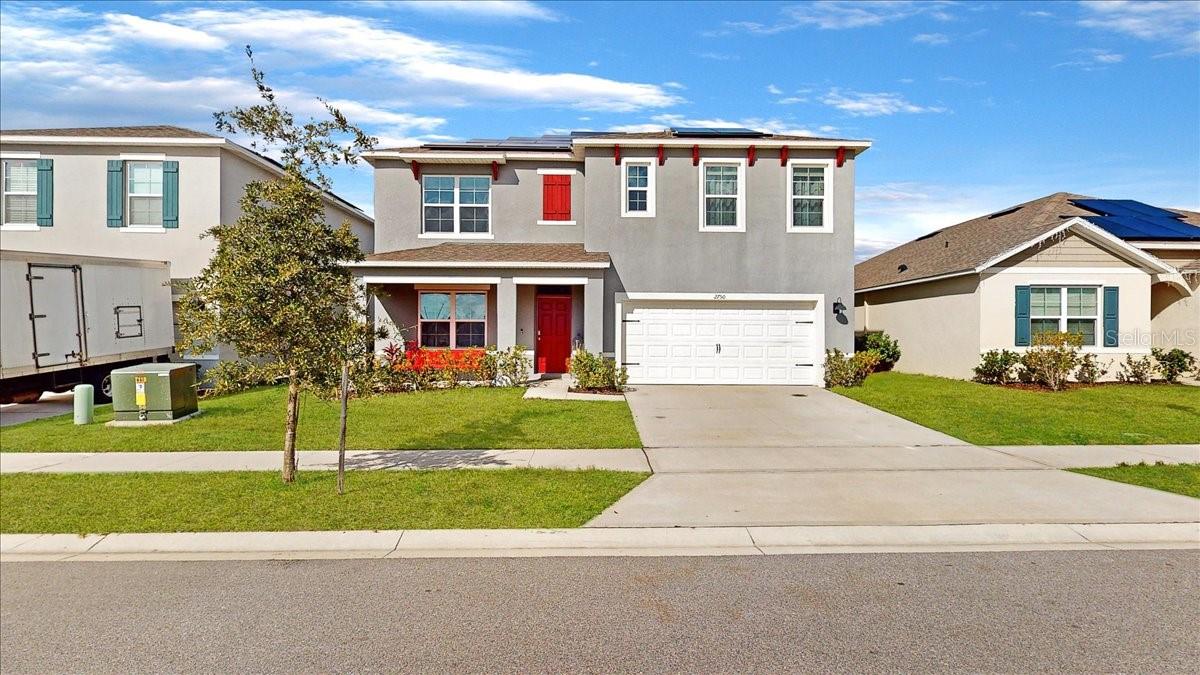 Welcome to this exquisite two-story, 5-bedroom, 3-bath home in the tranquil community of Harmony, Florida. As you enter, be greeted by a long, welcoming foyer that seamlessly leads you to the heart of the home - a spacious kitchen and living room area. The kitchen, a chef's delight, is outfitted with pristine cabinets and gleaming granite countertops, creating an environment where culinary creativity can flourish. On the ground floor, you'll find a conveniently located bedroom with direct access to a bathroom, perfect for guests or as a home office. As you ascend upstairs, the master bedroom awaits, a sanctuary of peace and elegance. It features the same elegant cabinets and granite countertops, along with a luxurious walk-in shower, ensuring a private spa-like experience every day. The allure of this home extends to its fully fenced backyard, offering a secure and private space for relaxation and outdoor activities. It's perfect for family gatherings, barbecues, or simply enjoying Florida's beautiful weather. Living in this community doesn't just mean owning a beautiful home; it also means having access to state-of-the-art amenities. The fitness center is well-equipped for all your workout needs, and the clubhouse is a hub of community activities. The pool is an oasis of relaxation, and the playgrounds are perfect for family fun. This home is more than just a place to live; it's a lifestyle, offering comfort, luxury, and a sense of community. Don't miss your chance to own this piece of Harmony, where every day feels like a retreat. Contact us for a viewing and experience the perfect blend of modern living and community charm! Solar PANELS WILL COVEY WITH SALE buyer must qualify for remaining balance on panels. Please make sure Loan officer is aware.