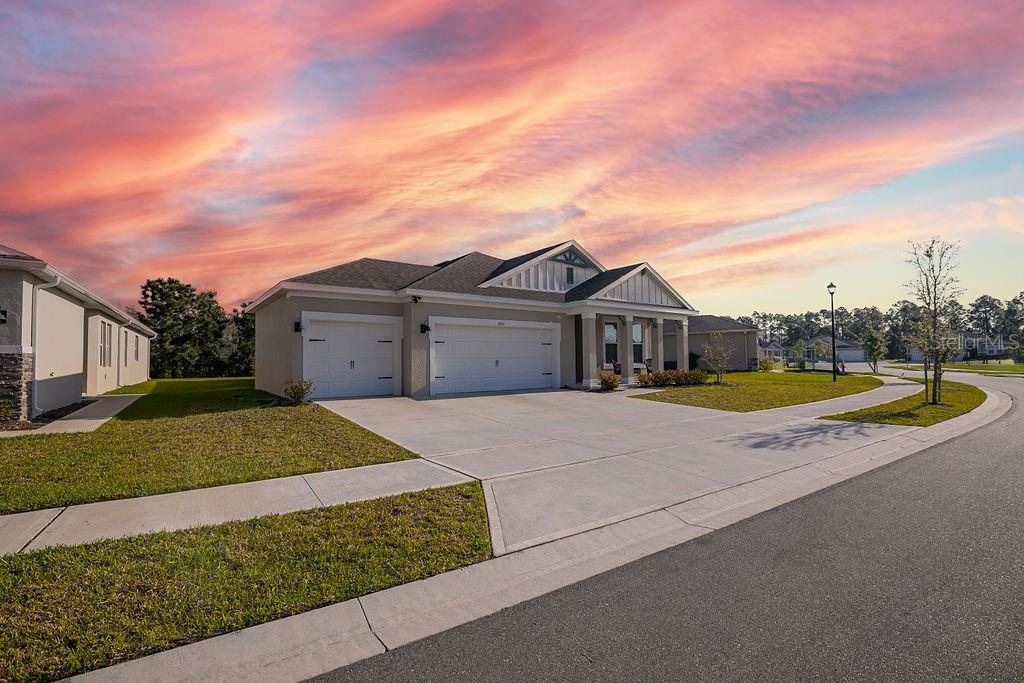 Welcome to your dream home in the vibrant Harmony West community! This stunning single-story home is designed to impress with its perfect blend of style, space, and functionality. From the moment you step inside, you'll be captivated by the expansive, open layout that effortlessly connects the modern kitchen, inviting living room, elegant dining area, and a stunning covered lanai—ideal for both relaxing and entertaining. At the heart of this home is a chef-inspired kitchen, complete with a massive island that’s perfect for meal prep, casual dining, or gathering with friends and family. The kitchen seamlessly flows into the living room, where you’ll enjoy cozy nights by the fire or movie marathons. The spacious dining area is perfect for dinner parties or holiday feasts, and the enormous pantry ensures you’ll have all the storage space you need for your culinary adventures. Step outside into your own private oasis—an expansive, fenced backyard that offers endless possibilities for outdoor fun, gardening, or simply soaking up the sun in complete privacy. And with a three-car garage, you’ll never have to worry about space for your vehicles, tools, or toys. Inside, custom wall designs add a personal, unique touch to every room, making this home not just a place to live, but a place to truly call your own. The Harmony West community enhances your lifestyle even further with an array of outstanding amenities. Take a dip in the sparkling pool on hot summer days, stay active at the fully equipped fitness center, or enjoy quality time with the family at the playground. For outdoor enthusiasts, the picturesque walking trails creates a serene escape for exercise, relaxation, or simply taking in the beautiful surroundings. This home is the perfect blend of comfort, luxury, and convenience. With its smart design, gorgeous finishes, and access to amazing amenities, it’s the ultimate place to call home in Harmony West!