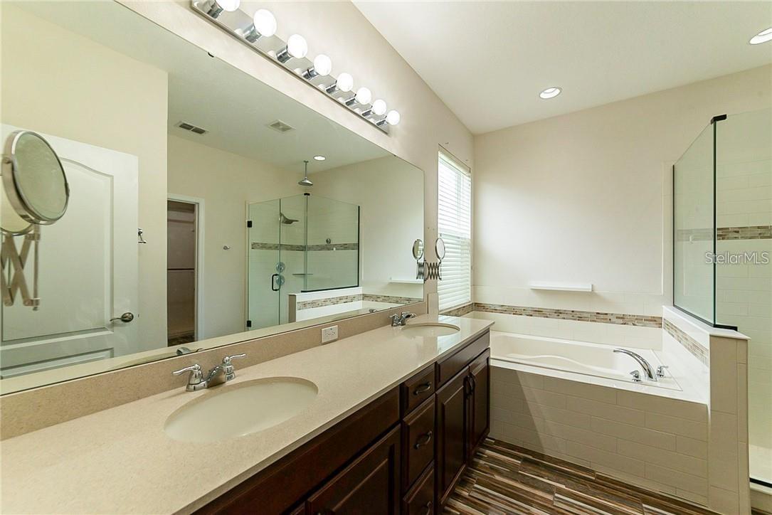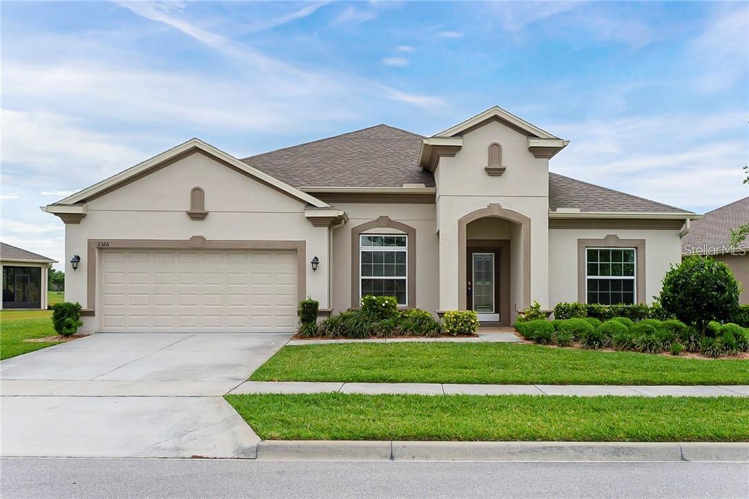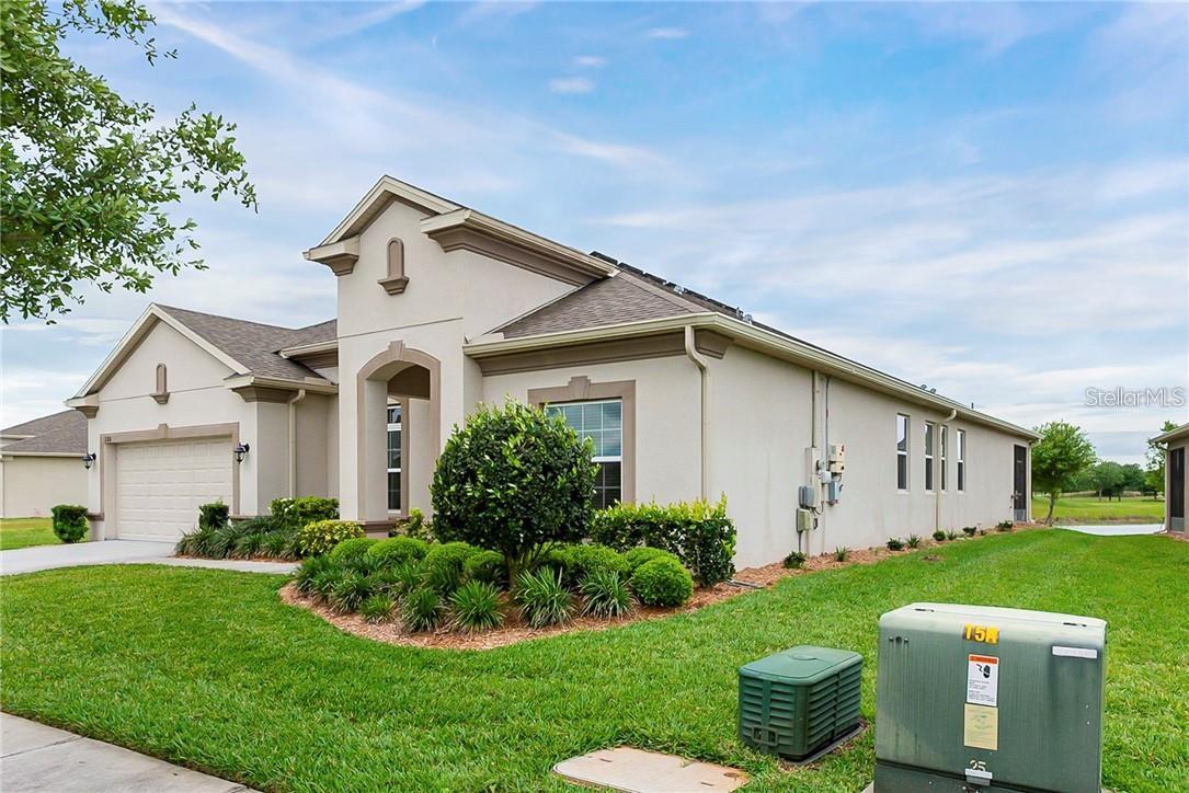 Short Sale. Short Sale. SHORT SALE. GORGEOUS home in gated South Lake 55+ community in Harmony! Tiny electric bill with the 11.3 KW solar panel array with perfect south facing panel exposure! Serene sunsets over your rear patio pond and golf view. Split floor plan home with double masters. There is an office at the front of home with beautiful French doors along with a second office off the kitchen with French doors. Open concept home with a large kitchen that features custom cabinetry, gorgeous quartz countertops with oversized quartz island, tiled backsplash, stainless steel appliances with wall oven, custom vent hood, recessed lighting and pendant lighting. The living area has recessed lighting and ceiling fan with sliders that open to back patio. Master bedroom on the right has tray ceiling and spacious walk-in closet with built-ins. Master bath has dual sinks with quartz countertops, soaker tub, walk in shower with rainfall shower head and tiled walls. Second master bedroom on the left has a cozy sitting area, a closet with built-ins along with master bathroom with quartz countertop, and tiled shower walls. Enjoy the convenience of a separate laundry room with sink and storage cabinets. The golf and dark sky community of Harmony offers walking trails, dog parks, access to Buck Lake, signature golf course, three community pools and fitness centers. You do not want to miss out on this beautiful home! OWNER MOTIVATED!