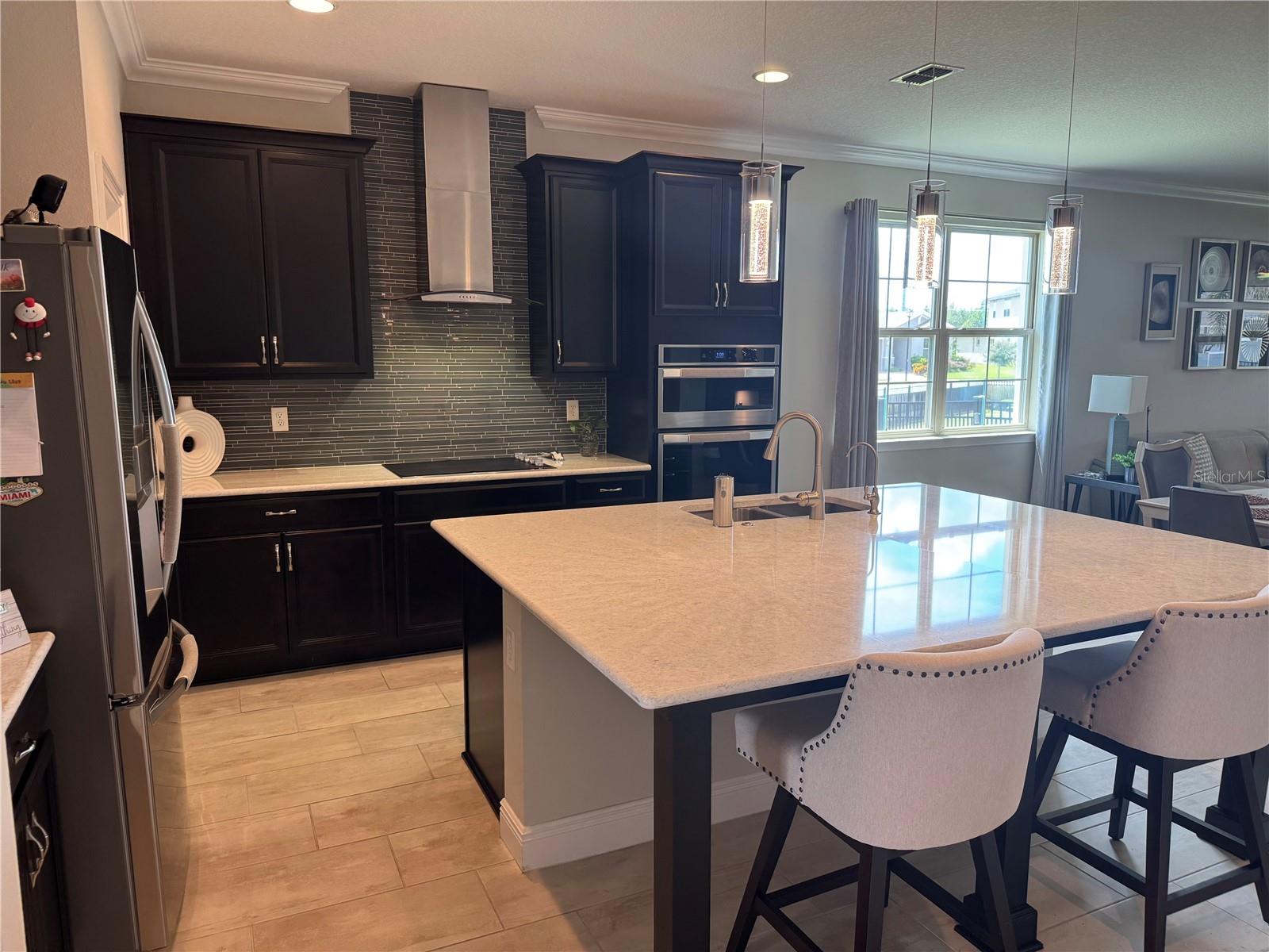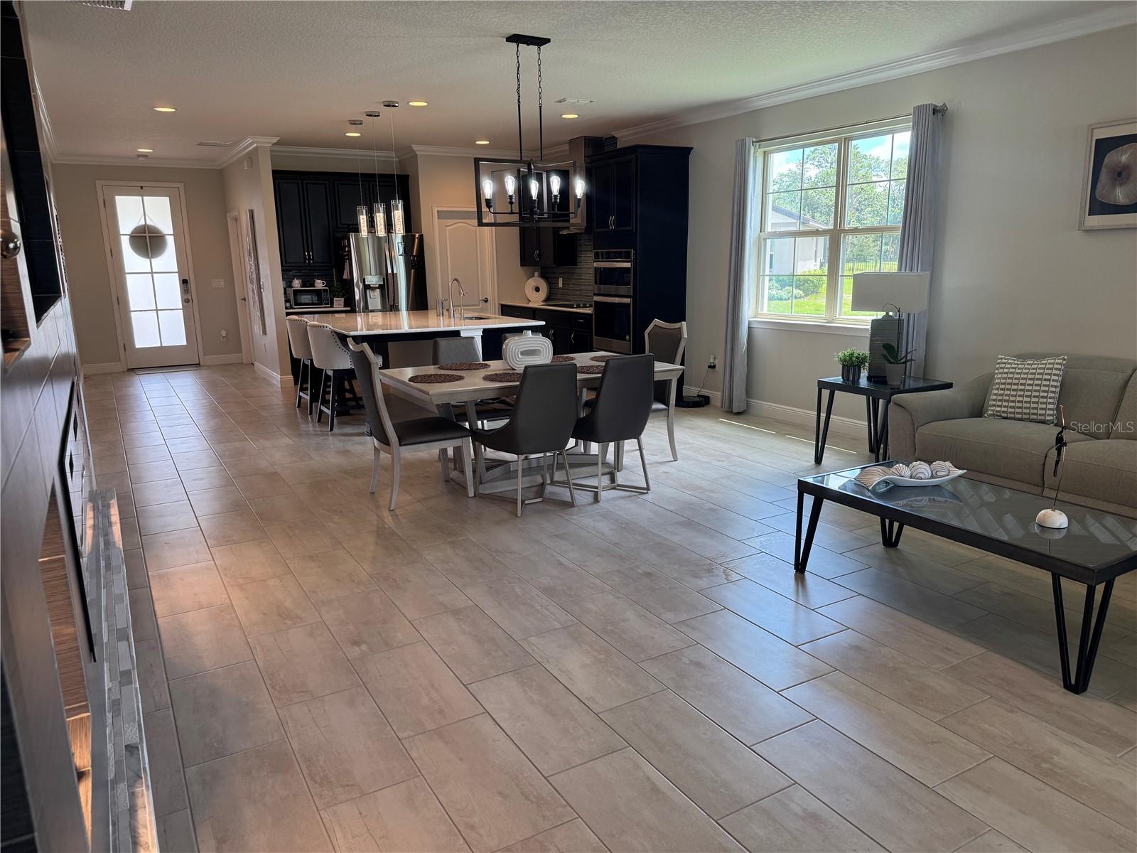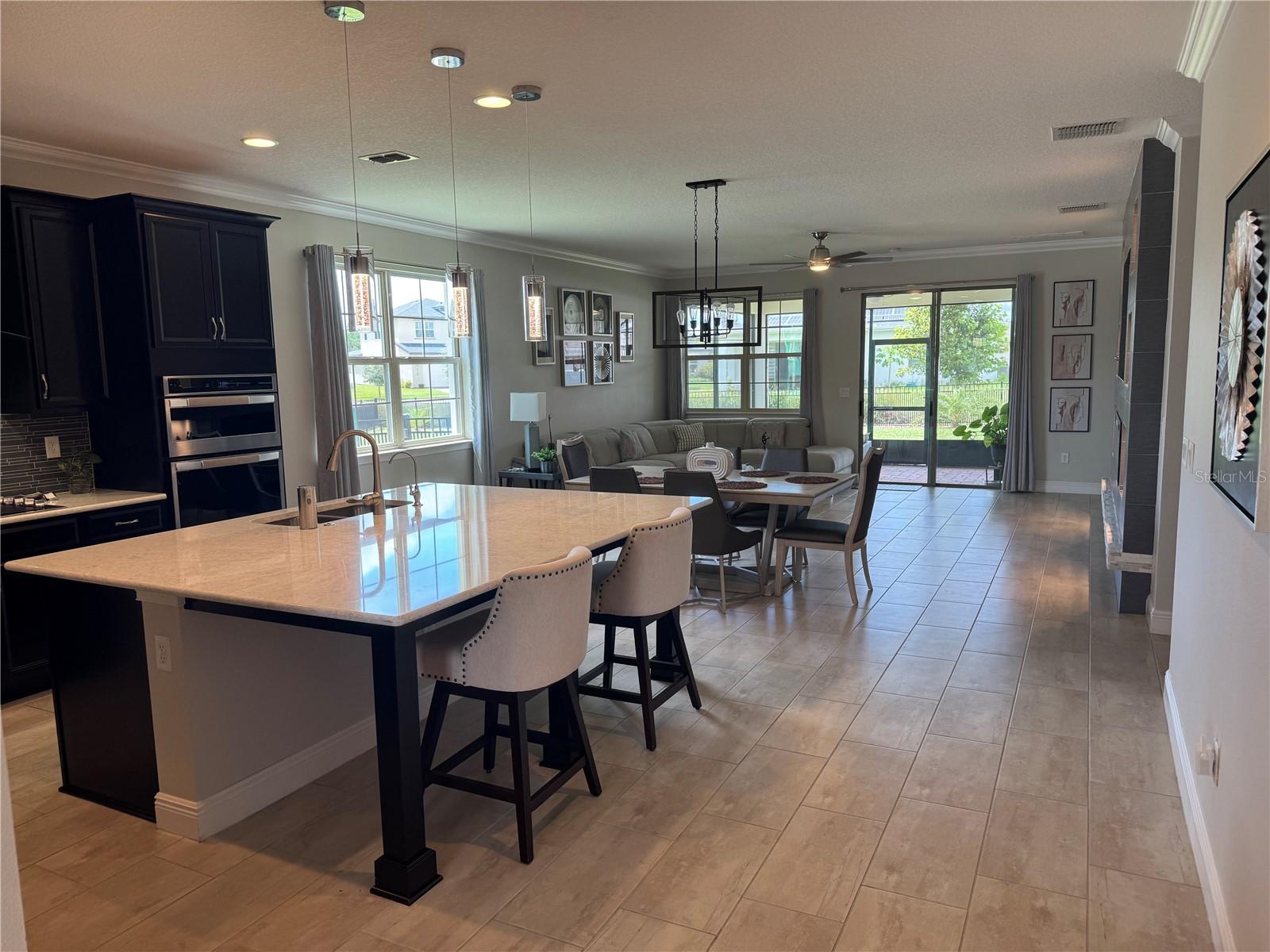 $10K SELLER CREDIT FOR CLOSING COSTS! Welcome to this CORNER PROPERTY featuring a thoughtfully designed OPEN FLOOR PLAN. The heart of the home features a stunning GOURMET KITCHEN with quartz counter tops and walking-in pantry comes with a spacious center island perfect for meal preparation and casual dining. Premium stainless steel appliances include a built-in microwave/oven configuration, complemented by modern pendant lighting and stylish tile flooring throughout. The open-concept design allows the kitchen to flow seamlessly into the main living areas.This desirable corner lot property features over $65K in upgrades such as Porcelain Tile, Solar System (included in the sale price), Water Softening system with Smart Water Heater, Crown Molding, Built TV Entertainer wall, AC has UV Light system and complete fencing for privacy and security. Inside the main residence, each room provides ample space and natural light, while the bathrooms has modern fixtures and thoughtful layouts. This home combines suburban tranquility with convenient access to Central Florida attractions and amenities. - CALL FOR YOUR PRIVATE VIEWING