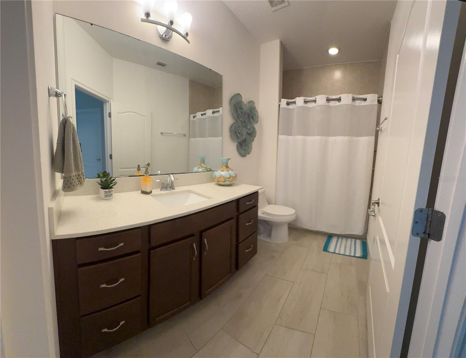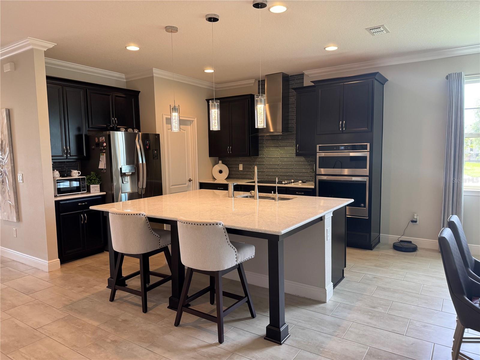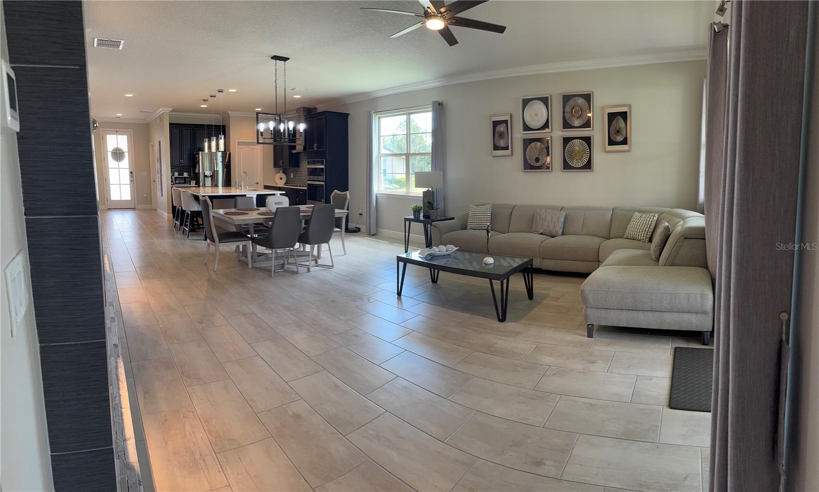 $10K SELLER CREDIT FOR CLOSING COSTS! Welcome to this CORNER PROPERTY featuring a thoughtfully designed OPEN FLOOR PLAN. The heart of the home features a stunning GOURMET KITCHEN with quartz counter tops and walking-in pantry comes with a spacious center island perfect for meal preparation and casual dining. Premium stainless steel appliances include a built-in microwave/oven configuration, complemented by modern pendant lighting and stylish tile flooring throughout. The open-concept design allows the kitchen to flow seamlessly into the main living areas.This desirable corner lot property features over $65K in upgrades such as Porcelain Tile, Solar System (included in the sale price), Water Softening system with Smart Water Heater, Crown Molding, Built TV Entertainer wall, AC has UV Light system and complete fencing for privacy and security. Inside the main residence, each room provides ample space and natural light, while the bathrooms has modern fixtures and thoughtful layouts. This home combines suburban tranquility with convenient access to Central Florida attractions and amenities. - CALL FOR YOUR PRIVATE VIEWING