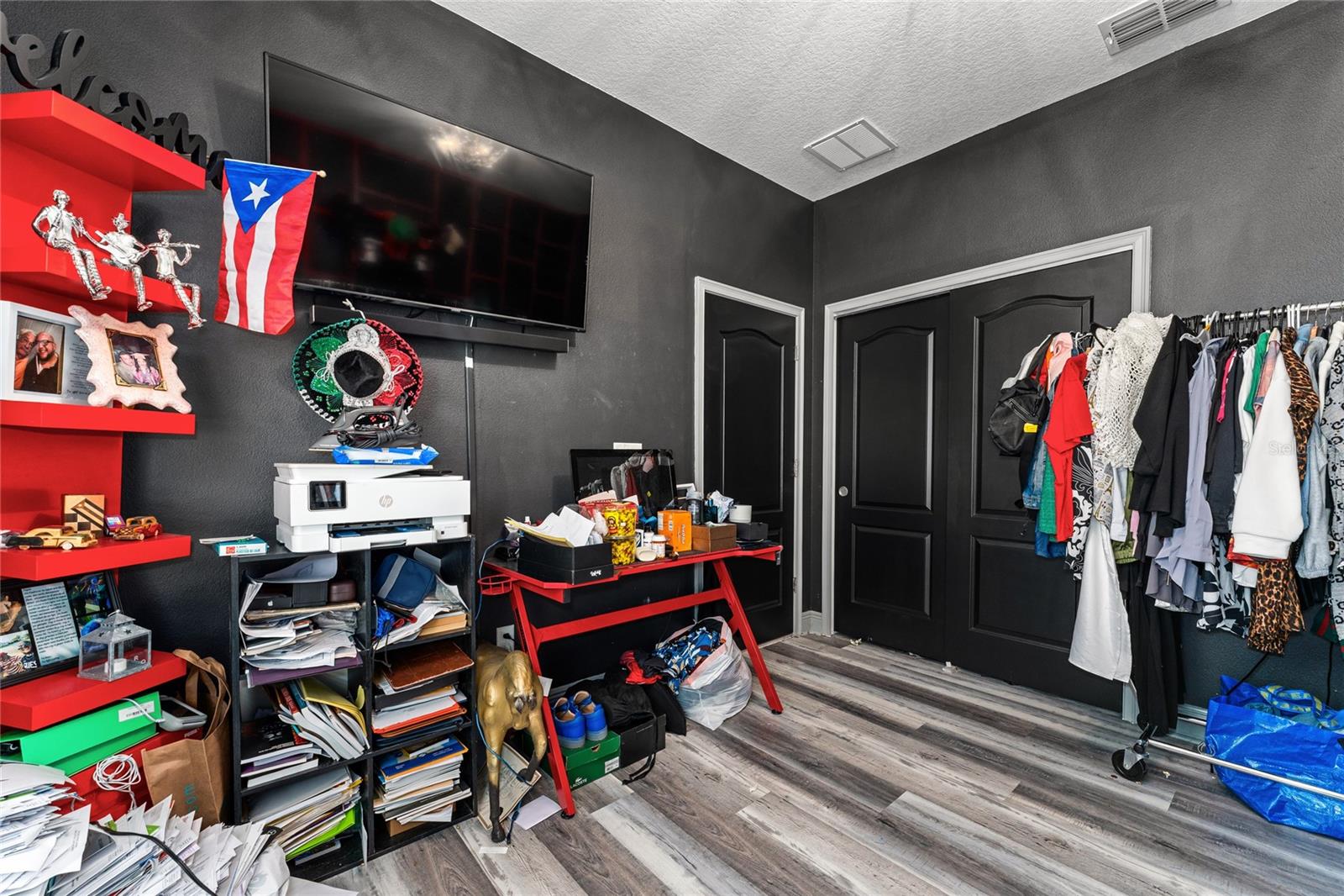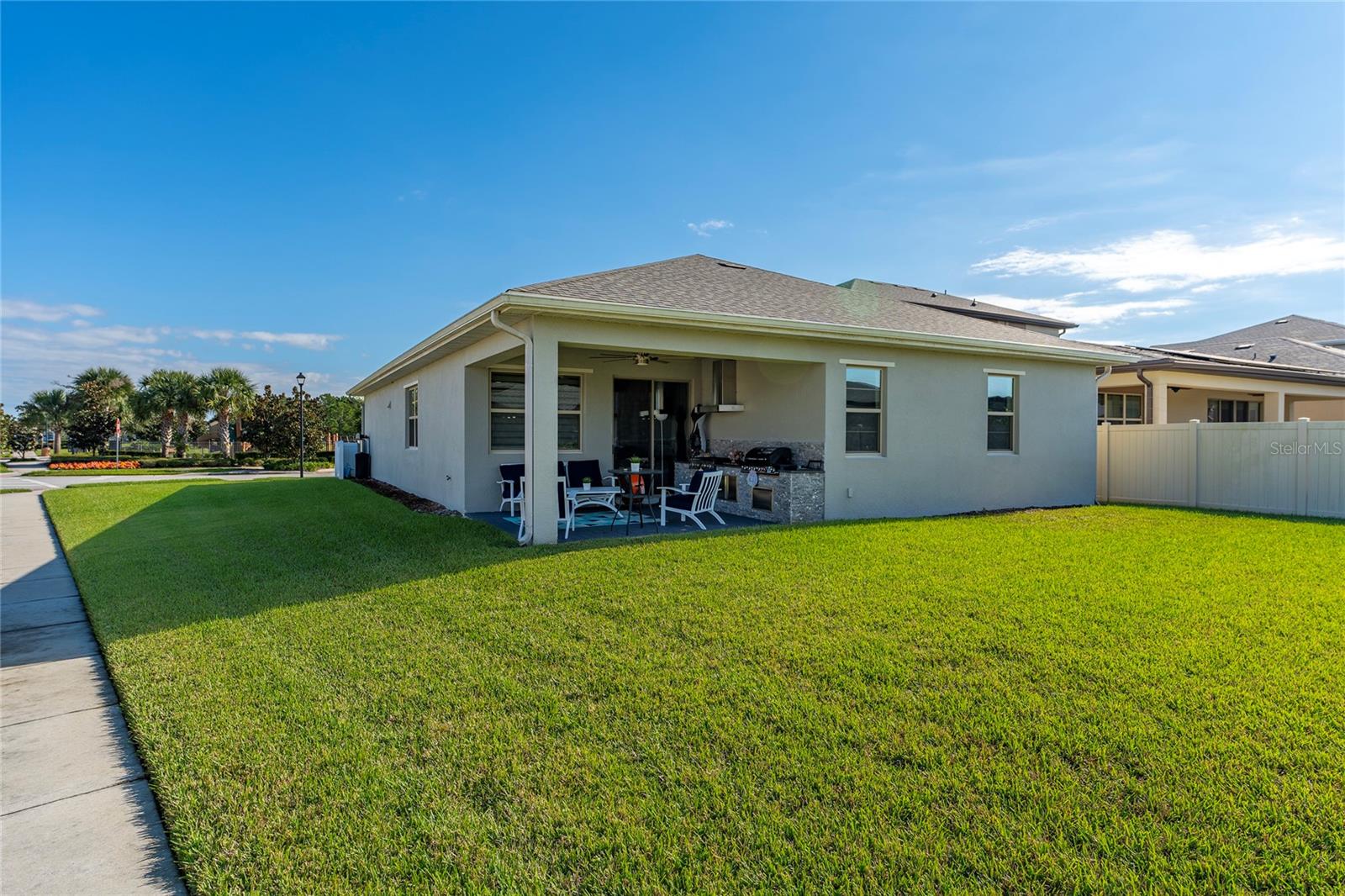 Beautifully upgraded 4-bedroom, 2-bath home on a premium oversized lot with an open floor plan and no carpet – laminate flooring throughout. The kitchen includes all appliances, pantry, dishwasher, refrigerator, range, microwave, washer and dryer, plus water softener and filtration system. The primary suite features a custom accent wall with lighting, walk-in closet and a fully remodeled bath with stone countertops, walk-in shower (no tub) and elegant pocket door. Guest bath also updated. The living room highlights a stunning floor-to-ceiling accent wall with modern lighting. Enjoy the covered lanai with pavers and a fully equipped summer kitchen with grill, griddle and range hood. Paver driveway and front entry. Located near US-192, FL-417, Turnpike, Narcoossee Rd, schools and shopping. Community offers a pool, clubhouse and fitness center.