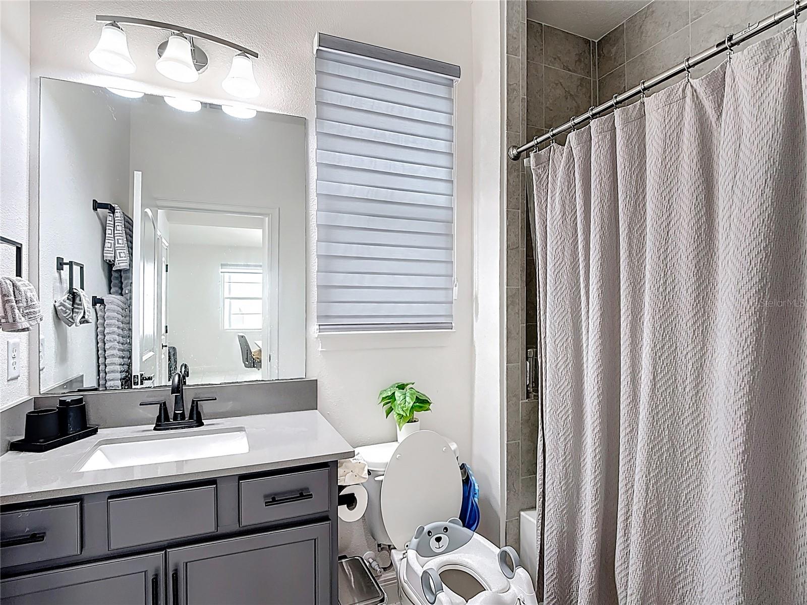 Short Sale. SHORT SALE!!!! PENDING SHORT SALE APPROVAL. This beautiful and functional, newer 3/2 split floorplan one-story home, is located within the all-ages GATED community of the Enclave Lakes of Harmony, and features upgrades such as high-end porcelain tiles throughout the whole house, NO CARPETS, QUARTZ countertops, stainless steel matching appliances, white and gray 42'' cabinets and backsplash, updated hardware, blinds for every window, motorized blinds with remote for the screened lanai, and fully metal fenced yard, so you can still enjoy the beautiful and private views of the backyard with NO REAR NEIGHBORS! Rounded off by an inside laundry room with INCLUDED washer and dryer, a 2 car garage, brick pavers, gutters, and the modern aesthetic of the home makes it the perfect combination of luxury and comfort. This community includes access to a variety of amenities which includes a pool, gym, tennis court, beach volleyball, golf course, acres of conservation areas with walking/biking trails surrounded by nature, a community garden, a town center with a restaurant, as well as a boat dock you can fish off of or rent a boat for the day. Zoned for A-Rated schools, close to the central east coast beaches, dining, shopping, and less than an hour to the airport to local theme parks. Seize this opportunity to live the ultimate Florida lifestyle today!