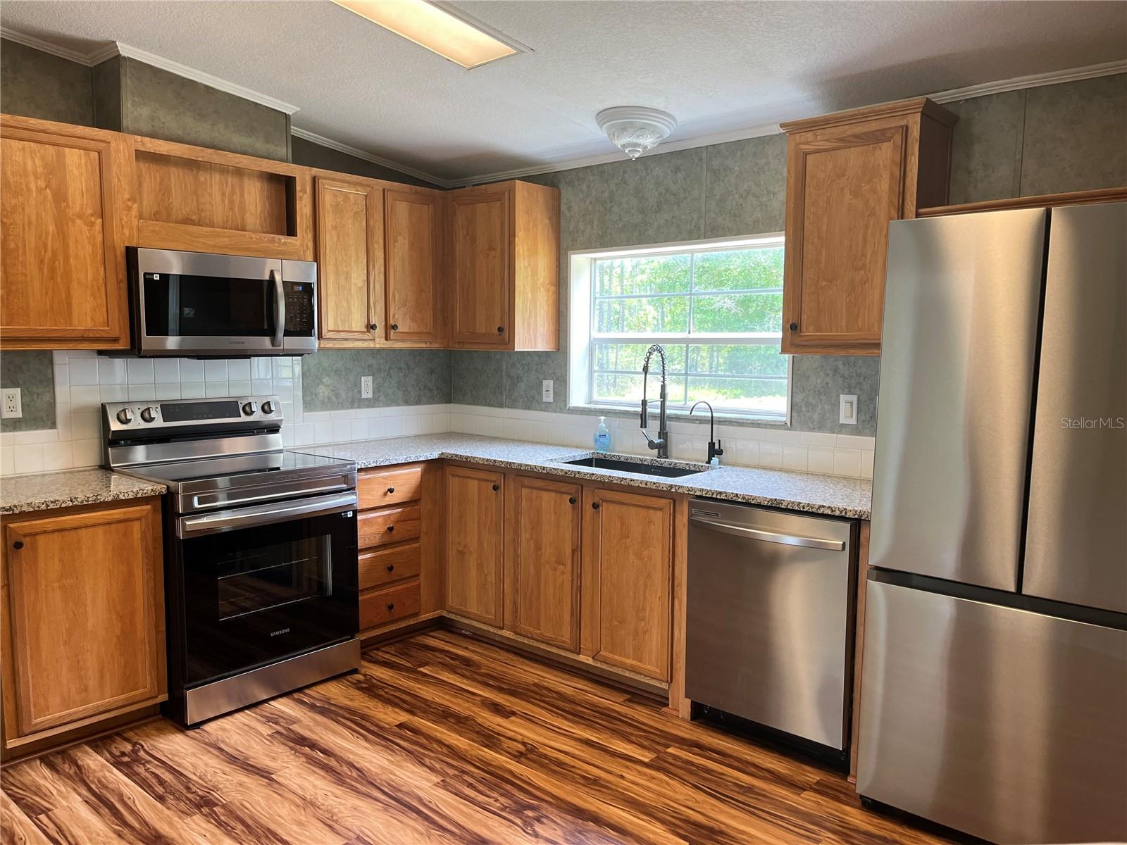 $10,000 price reduction!!!Very nice manufactured home on over 1 acre of land in beautiful Hastings! Lots of very recent upgrades from the granite countertops, appliances, water softener/filtration system and fresh paint. Kitchen has plenty of cabinets, new stainless appliances, and a breakfast bar. Separate dining area leads to a large living room 19x18 which lets in lots of natural light. Good size master bedroom and master bath with separate tub, shower and large walk in closet. Split floor plan with two additional bedrooms, both with walk in closets. Metal roof done in 2016 and A/C 2015. St Johns is a top rated school district. Flood zone X flood insurance is not required. This home is move in ready!