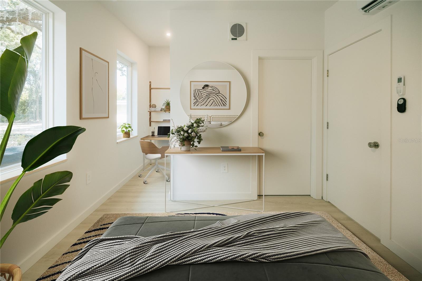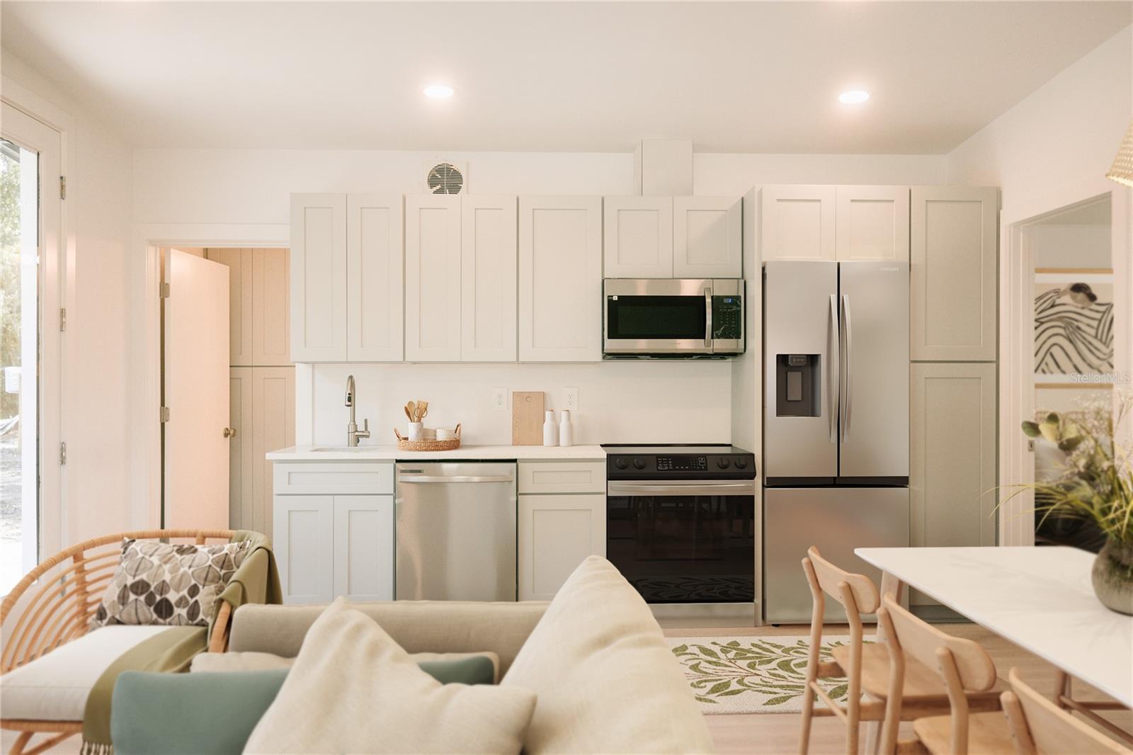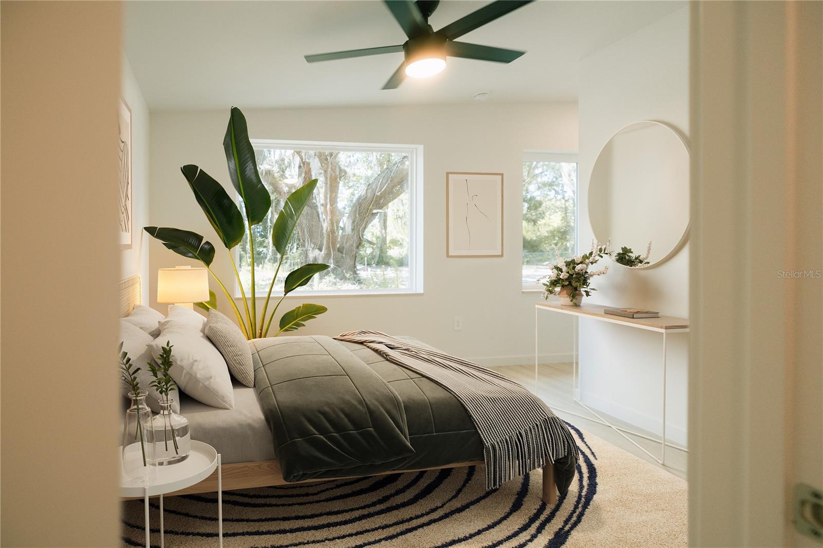 Welcome to this New Construction charming 2-bedroom, 1-bathroom custom home by Colour Homes. Offering 702 square feet of modern living space on a generous 6,970 square foot lot it is cozy comfort. Surrounded by well-established trees, this residence features a contemporary design with crisp white walls and a sleek kitchen. Small, bright, and also ideal for rentals, this home presents an excellent investment opportunity. This home boasts a long-lasting metal roof, durable exterior siding, 2x6 studs, and spray foam insulation. Inside, the style and quality continue with modern clean lines, smooth walls and ceilings, wood soft-close cabinets, quartz countertops, LVP flooring, and tile in the bathrooms. The primary bedroom easily accommodates a king bed and includes a walk-in closet. The second bedroom features a built-in single bed, desk, and shelving. The kitchen includes stainless steel appliances, and ceiling fans are installed in each room. Located on E Manson Road in the up-and-coming rural town of Hastings, it is within walking distance to the new First Coast Technical College. You will enjoy a tranquil setting on a quiet street while still being close to the amenities of St. Augustine and having easy access to I-95. With no HOA or CDD, you'll have the freedom to enjoy your property without additional fees. Zoned Residential General 2 (RG-2) and is eligible for 0% down USDA financing. Additionally, the builder is selling 5 other homes on the same road, making it an ideal option for those looking to expand their real estate portfolio in this growing area. Don't miss out on this fantastic opportunity in Hastings!