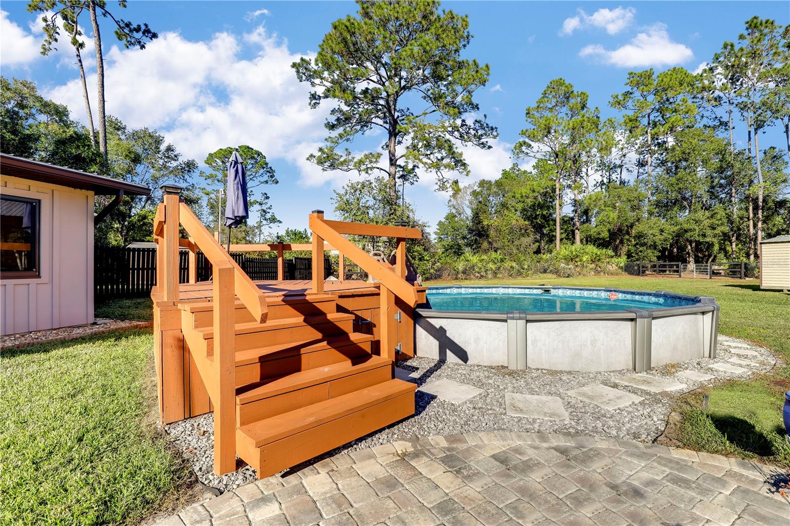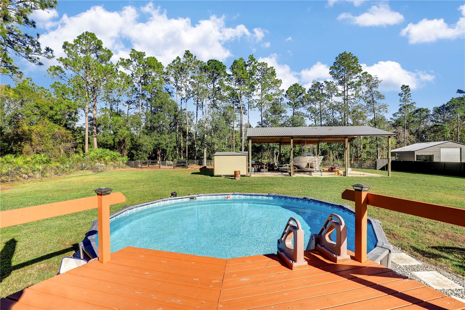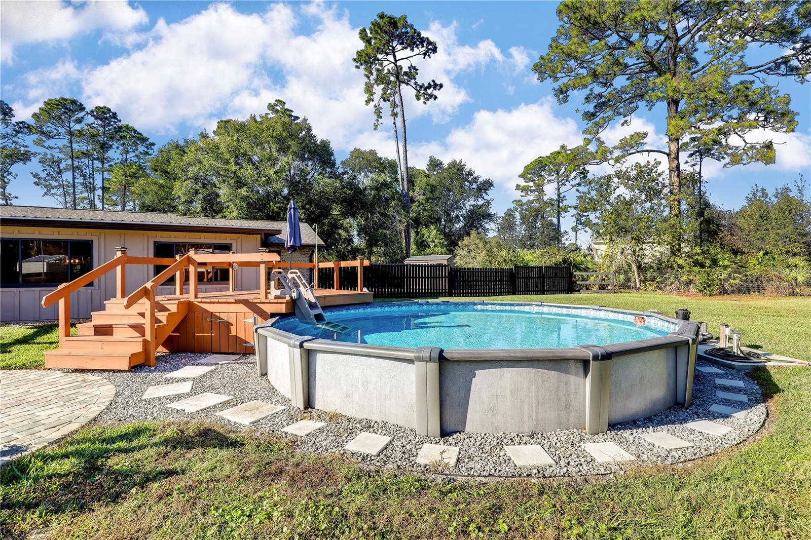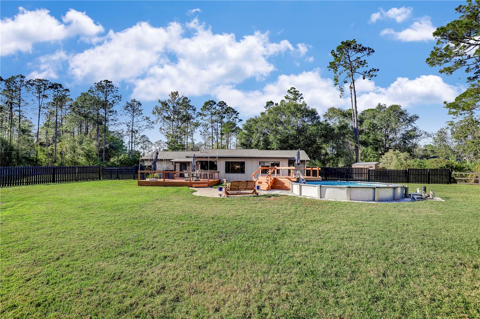 ** ACREAGE ** NEW ROOF ** UPDATED ** This stunning ALL BRICK home nestled on a 1.17-acre lot offers the perfect blend of tranquility and convenience. With easy access to I-95, you're just moments away from urban amenities while enjoying the peace of a secluded dead-end road. Recent upgrades include a new roof (2022), HVAC (2023), WINDOWS (2019), and SEPTIC SYSTEM (2023), ensuring worry-free living. The spacious property boasts ample room for your RV, boat, or other toys. Relax in the enclosed sunroom, take a dip in the above-ground pool, or unwind by the pavered fire pit. The outdoor bar and grilling area are perfect for entertaining friends and family. Inside, you'll find a comfortable and inviting interior. The 52x24 pole barn, complete with water and electricity, offers versatile storage and workshop space. The extended driveway provides plenty of parking, and the fully fenced yard ensures privacy and security. Don't miss this opportunity! Schedule your private showing today!