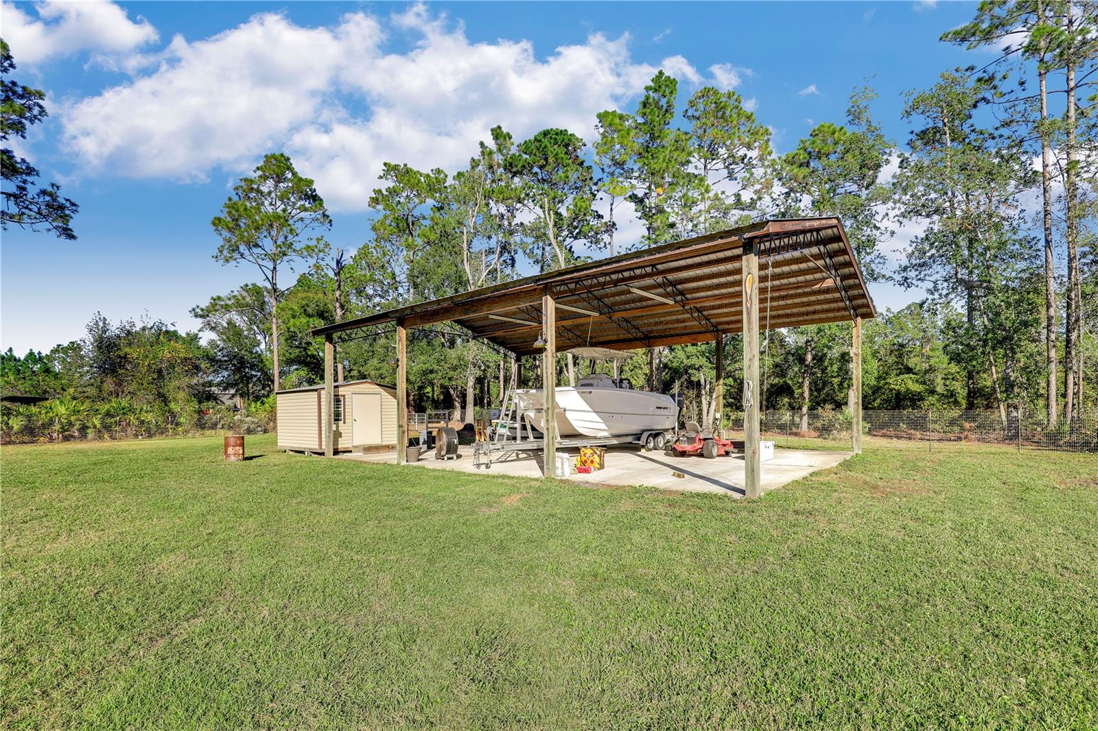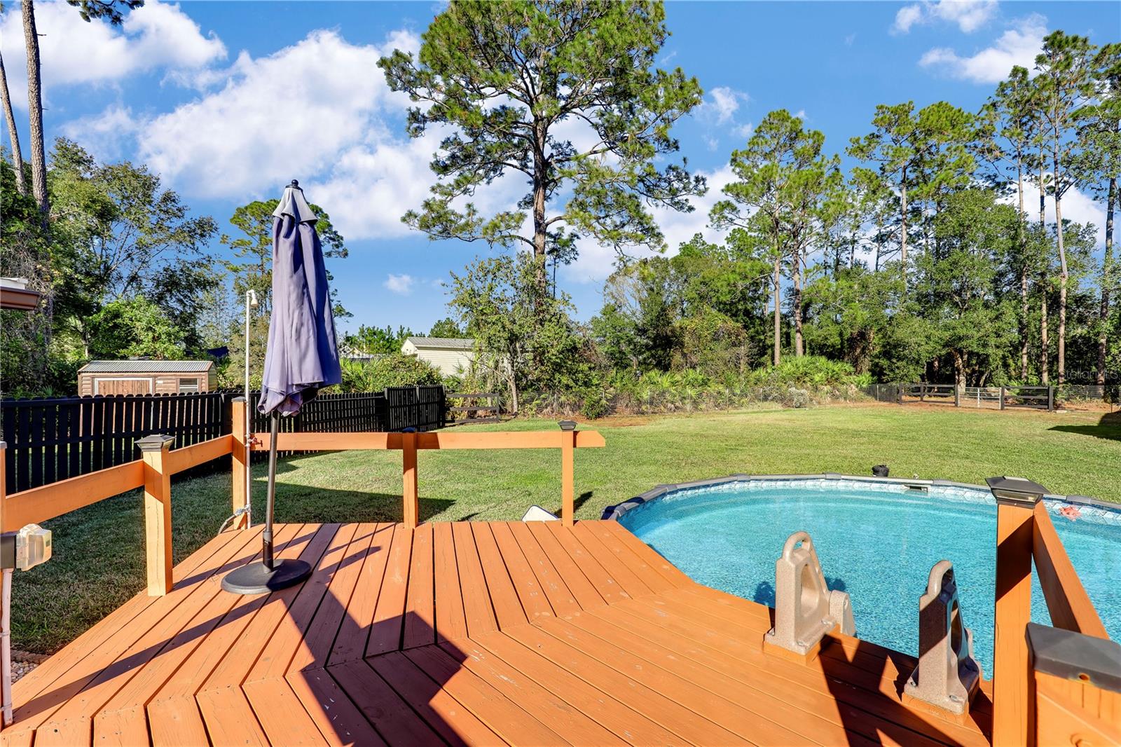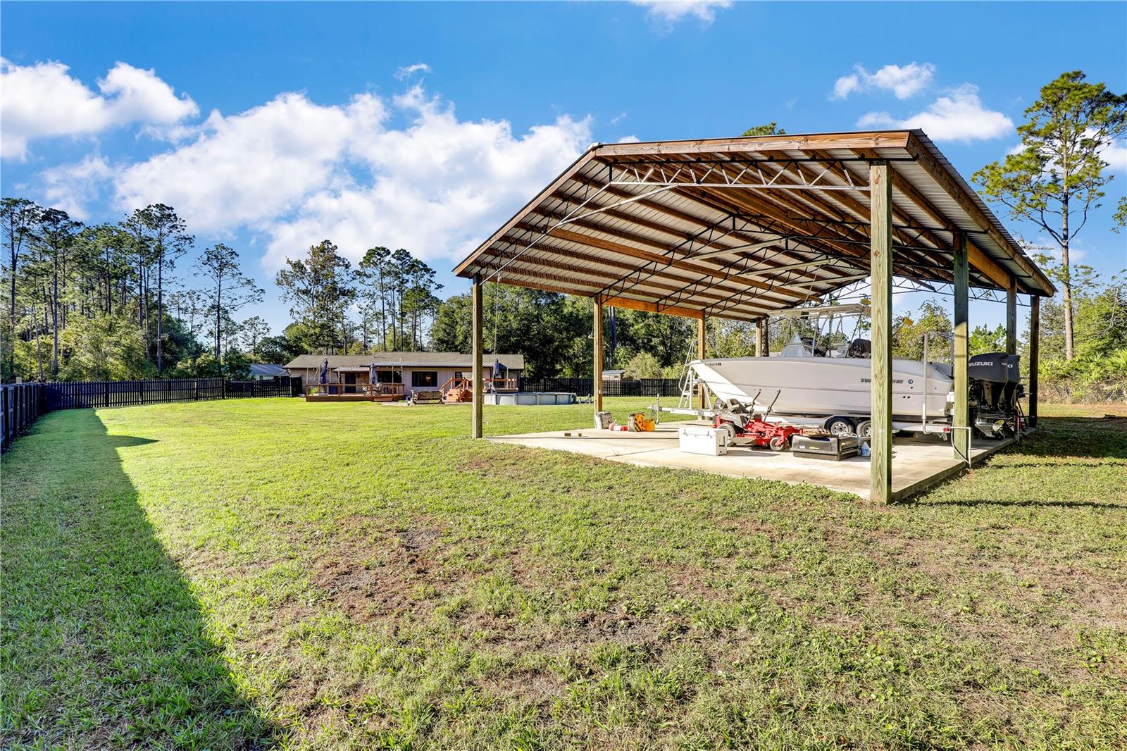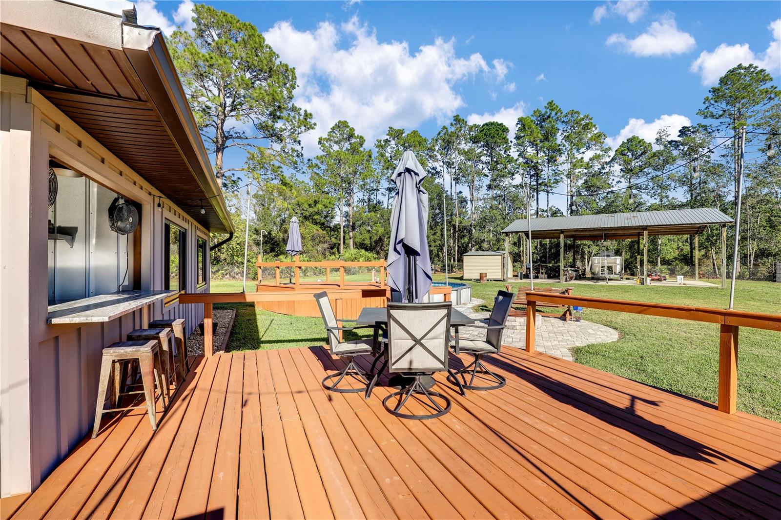 ** ACREAGE ** NEW ROOF ** UPDATED ** This stunning ALL BRICK home nestled on a 1.17-acre lot offers the perfect blend of tranquility and convenience. With easy access to I-95, you're just moments away from urban amenities while enjoying the peace of a secluded dead-end road. Recent upgrades include a new roof (2022), HVAC (2023), WINDOWS (2019), and SEPTIC SYSTEM (2023), ensuring worry-free living. The spacious property boasts ample room for your RV, boat, or other toys. Relax in the enclosed sunroom, take a dip in the above-ground pool, or unwind by the pavered fire pit. The outdoor bar and grilling area are perfect for entertaining friends and family. Inside, you'll find a comfortable and inviting interior. The 52x24 pole barn, complete with water and electricity, offers versatile storage and workshop space. The extended driveway provides plenty of parking, and the fully fenced yard ensures privacy and security. Don't miss this opportunity! Schedule your private showing today!