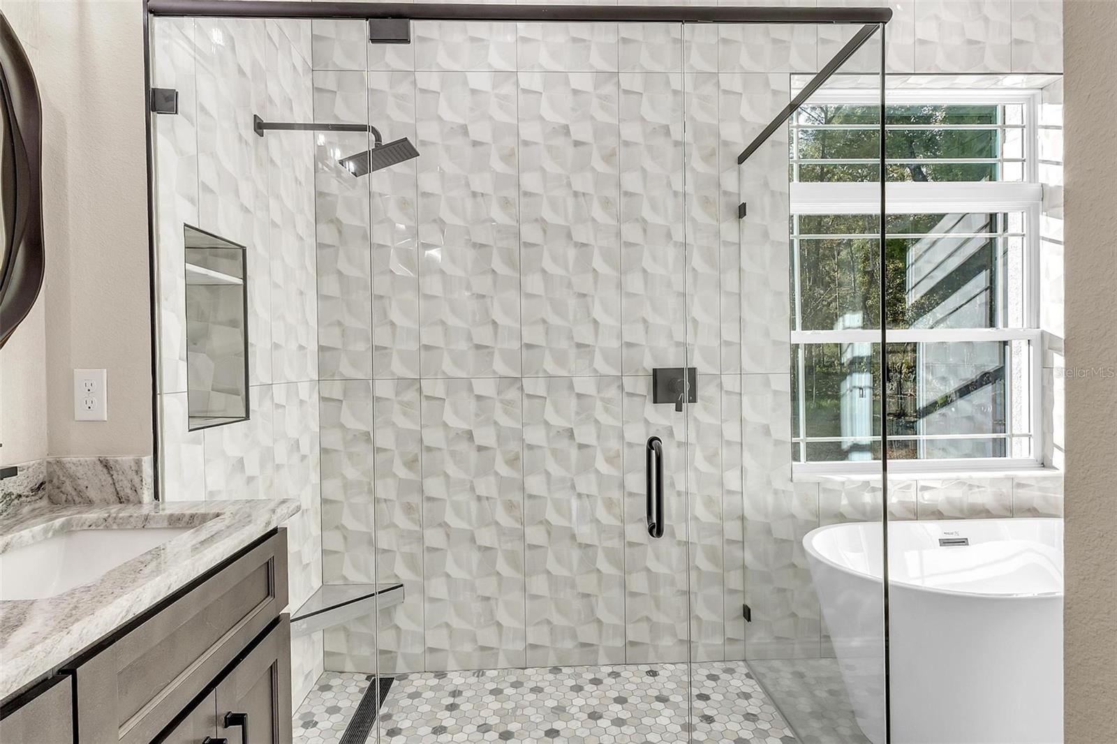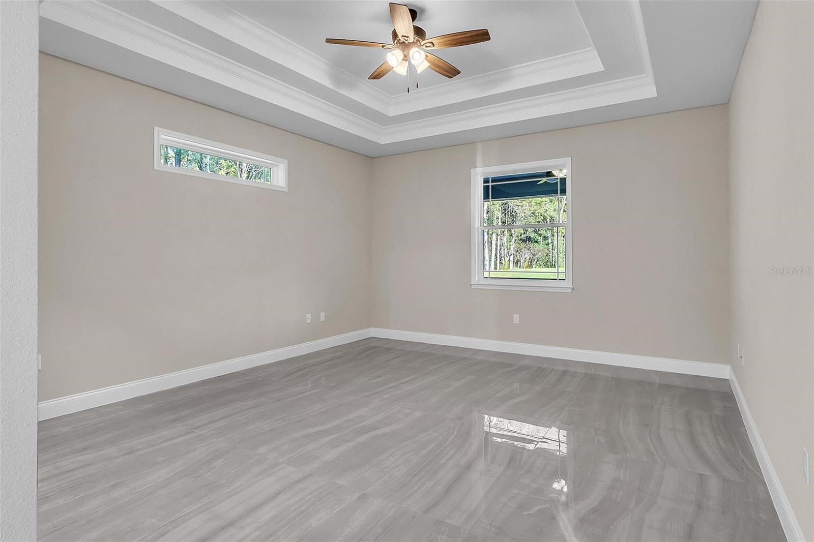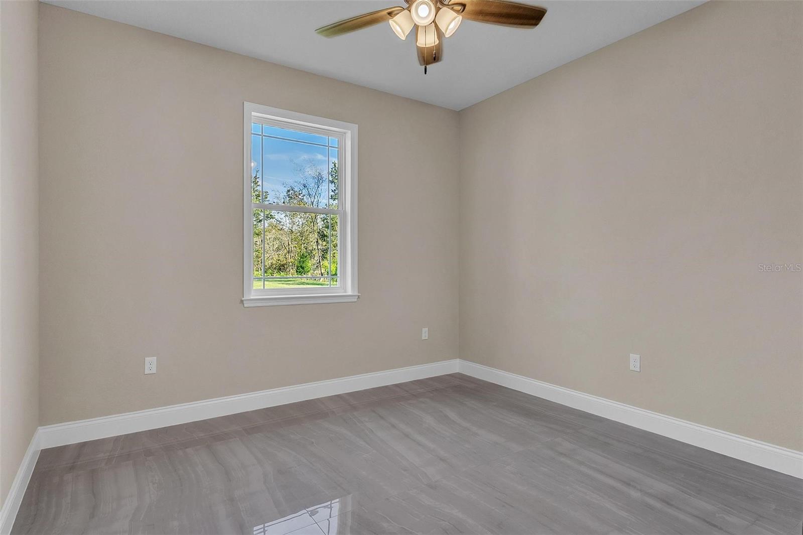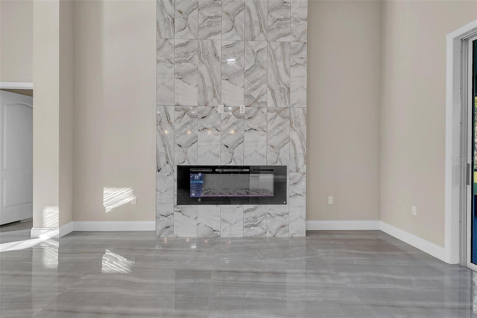 One or more photo(s) has been virtually staged. A true masterpiece of modern luxury, this custom-built 3-bed, 2-bath residence welcomes you through grand double entry doors into a world of sophistication. Sun-drenched interiors, wrapped in elegant tile, flow effortlessly through an open layout designed for both style and comfort. At the heart of the home, a sleek electric fireplace sets a refined tone and perfect for quiet evenings or upscale entertaining. The showpiece kitchen is nothing short of exceptional, featuring a stunning quartz island with an integrated sink, premium smart appliances, and abundant prep and presentation space. Every detail has been curated for those who appreciate high-end design and effortless functionality. Two beautifully appointed guest bedrooms feature custom ventilated wooden shelving and share an upscale finished bath. The luxurious master suite offers a serene escape with its enclosed glass shower, freestanding sculptural soaking tub set against a striking tiled feature wall, dual granite vanities with designer backsplash, and an expansive walk-in closet enhanced by a custom solid-wood organizer. Step outside to the outdoor living area, a tiled lanai enclosed with full screening and kickplate—perfect for morning coffee, evening gatherings, or peaceful moments overlooking the generous backyard and the impressive 1.21-acre property. All of this is ideally situated just moments from charming boutiques, inviting restaurants, local markets, and beloved small-town attractions. Here, elevated living meets the warm character and convenience of a truly vibrant community.