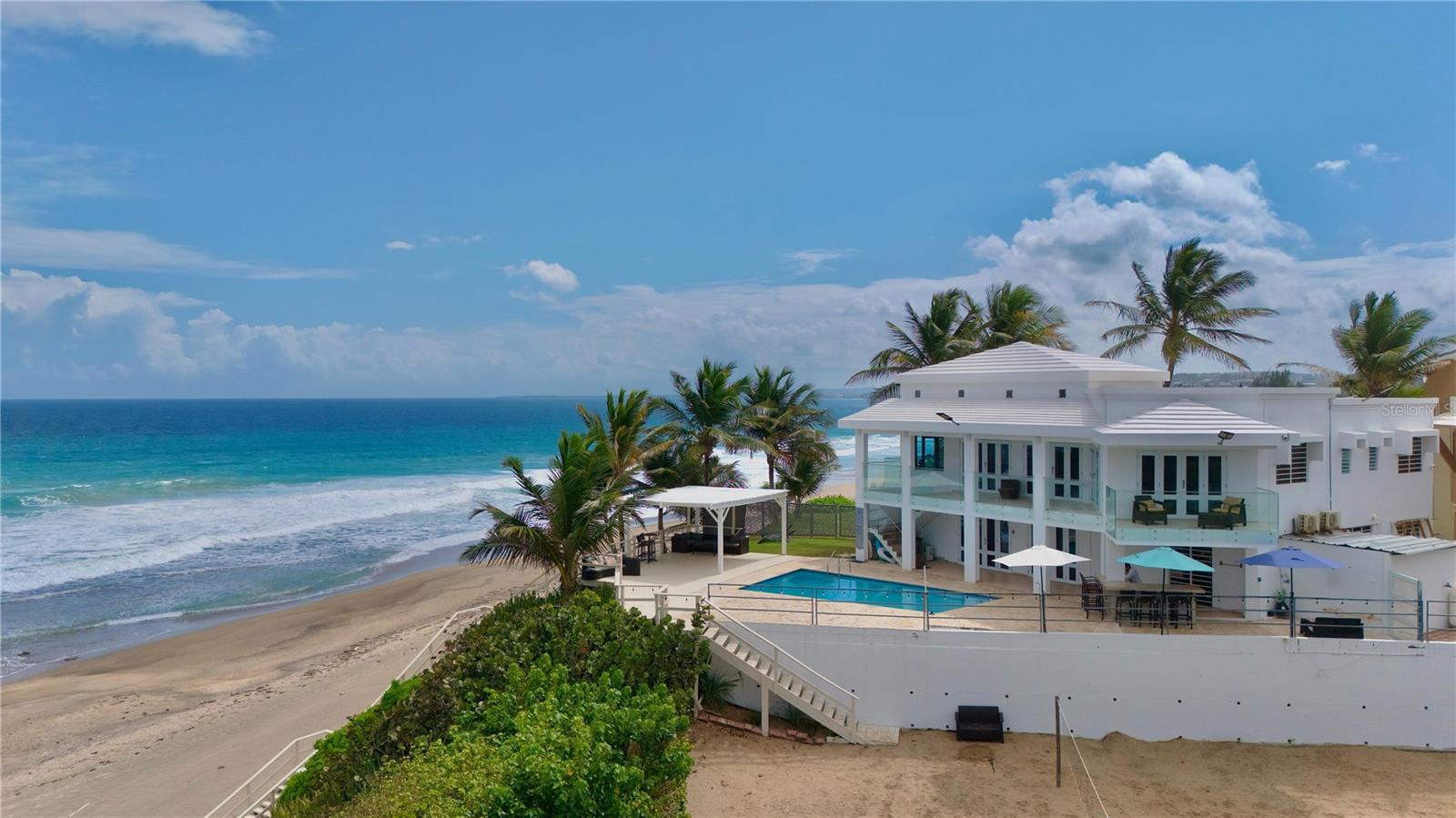 A rare coastal retreat offering exceptional privacy, direct beach access, and panoramic ocean views. Tucked away in a secluded setting, this unique property's delivers a level of exclusivity seldom found in today’s market, making it ideal for discerning buyers seeking both tranquility and investment potential. In addition to its residential appeal, the property is currently operated as a successful short-term rental and private event venue, with a proven track record of strong income generation. The business component is well-established and transferable, providing an opportunity for a seamless transition to new ownership. comfortably accommodates up to 15 guests and is designed to create an intimate, resort-like experience away from crowded tourist zones. The home is offered fully furnished, featuring a refined, minimalist aesthetic with high-end finishes that prioritize both comfort and functionality. Wake up to the sound of the ocean and enjoy uninterrupted water views from multiple vantage points throughout the property. Outdoor amenities include a private pool and thoughtfully designed spaces for relaxation and entertaining. What truly distinguishes this offering is its unmatched seclusion, with no immediate neighboring properties, ensuring a peaceful and private environment. The property is also equipped with a 20kW backup generator and a 1,000-gallon water cistern, providing reliability and self-sufficiency. This is a rare opportunity to acquire a turn-key beachfront property that blends lifestyle, privacy, and income-producing potential in one compelling offering.