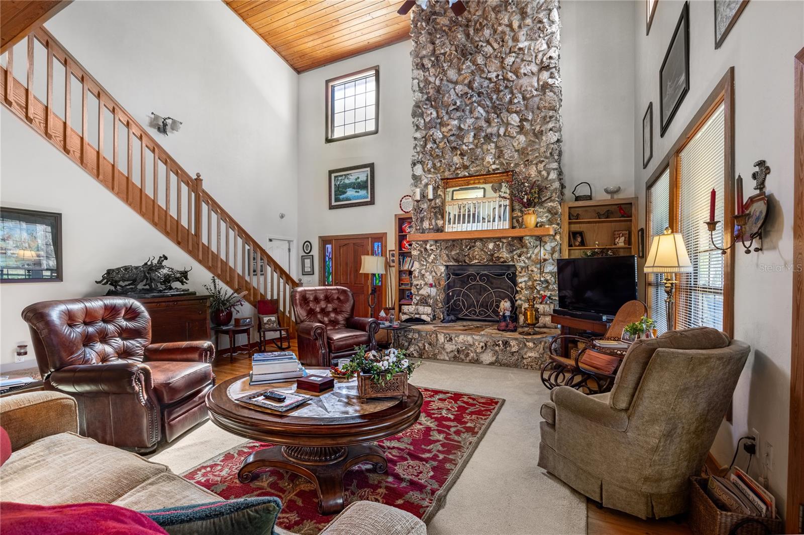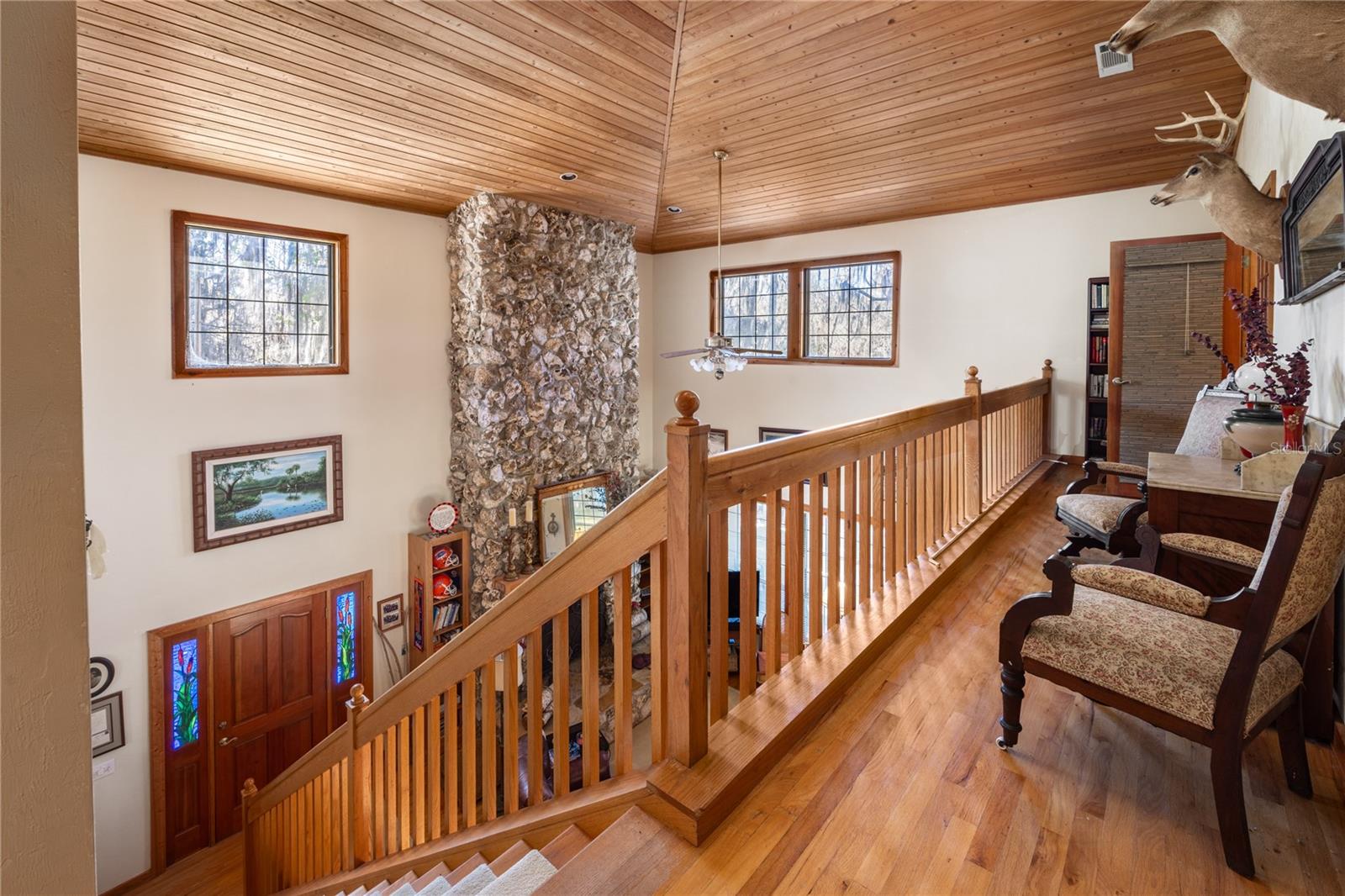 CHECK OUT THE NEW PRICE!!! Love to fish? This stunning home sits on the point where the creek meets Lake Lochloosa and will quickly become a favorite gathering place for friends and family. Truly an original home with its open floor plan and soaring two story stone fireplace, multiple porches, big kitchen, and great room with a volume ceiling you will love coming home! Located within 30 minutes of Gainesville and the University of Florida in the quiet Cross Creek area, this could be your perfect Gator retreat-enjoy Gator sports and then come home to your beautiful waterfront home. Visit historic Marjorie Kinnan Rawlings home and learn the history of the area or have dinner at the Yearling, it is always a favorite and both are just up the road. St. Augustine is about an hour away-you can enjoy the best of the lake and make an easy trip to the ocean. Do you have a boat and would like to be able to hop into it to go and fish? This home has a boathouse and a nice dock. If you'd rather fish off the dock, that works nicely also. What do you want to catch? Many varieties of fish can be caught! Call your REALTOR today for an appointment.