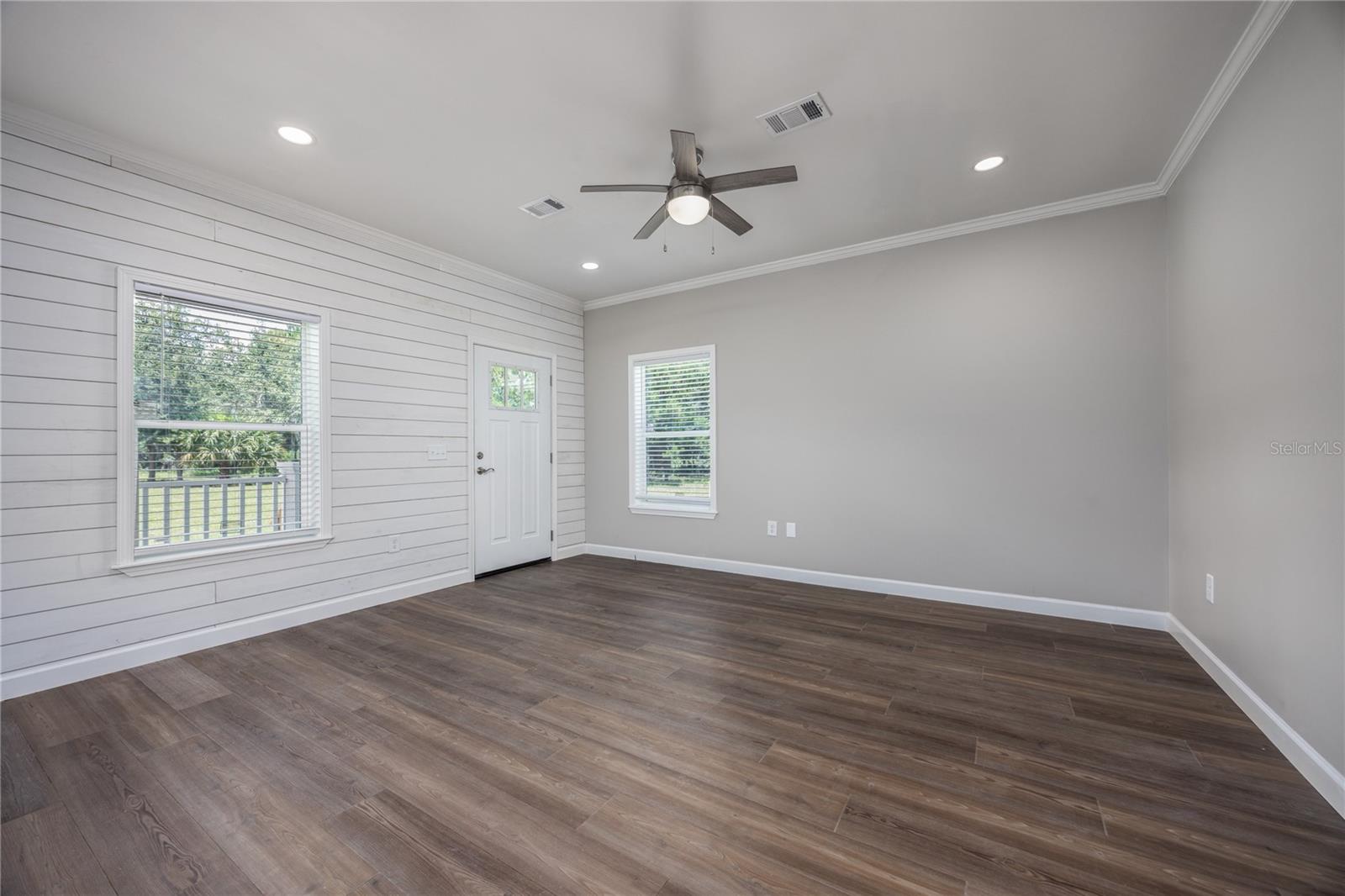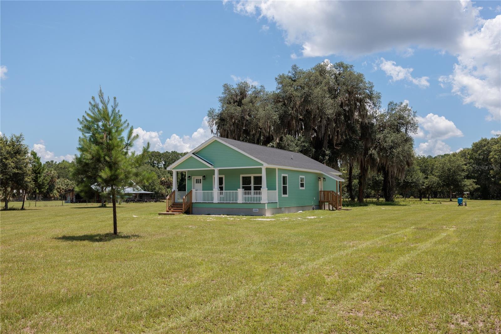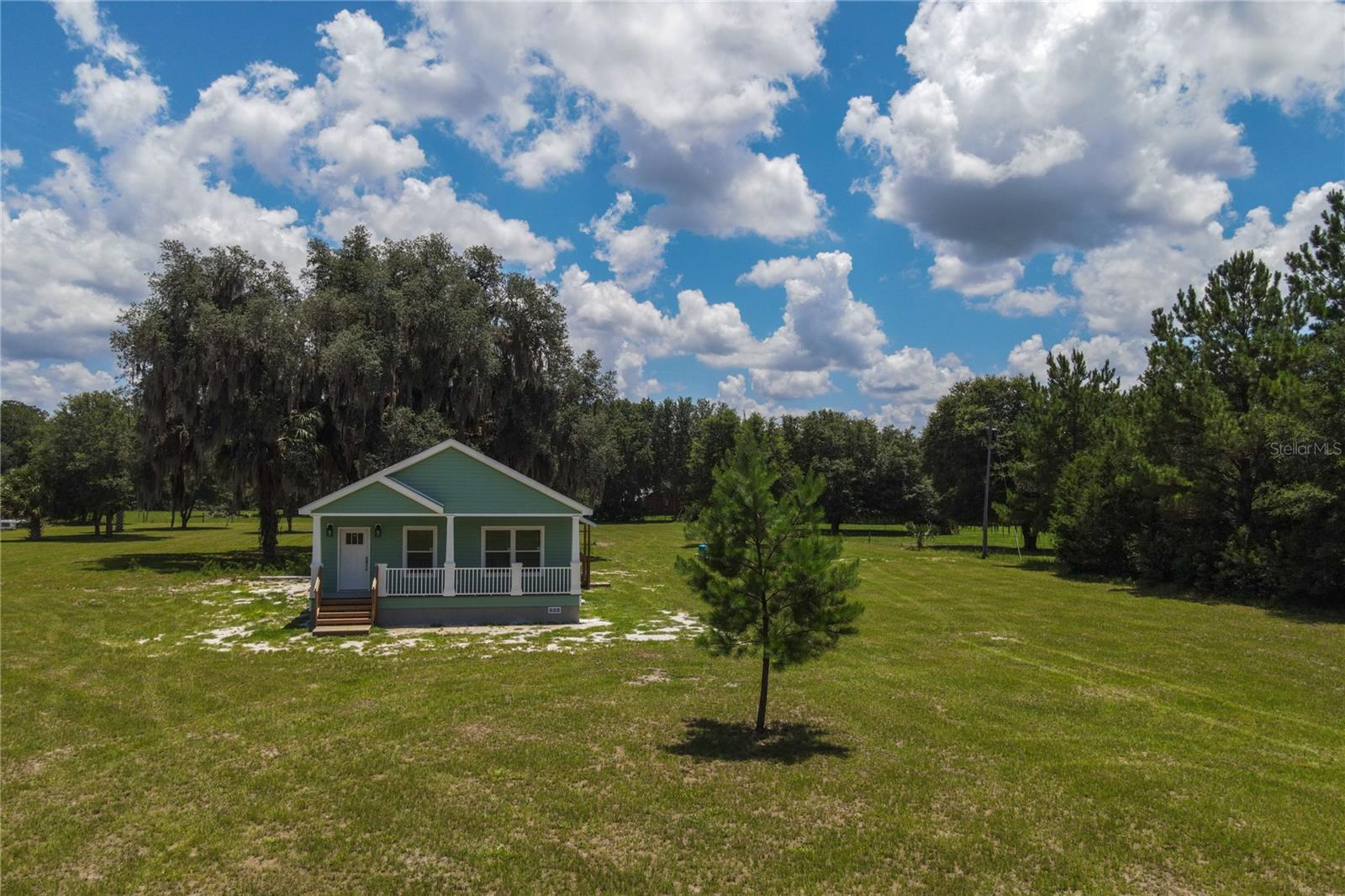 Modern New Construction on 5 Acres in Historic Cross Creek Welcome to your peaceful retreat in the heart of Old Florida. Nestled beneath a canopy of majestic oak trees and set well back from the road for ultimate privacy, this brand-new 2023-built home offers the perfect blend of modern comfort and timeless Southern charm—all just minutes from the Marjorie Kinnan Rawlings Historic State Park and boat ramp in the desirable Cross Creek community. Situated on a fully fenced, picturesque 5 acre parcel, this thoughtfully designed 3-bedroom, 2-bath home offers a total 1,476 square feet of open-concept living space with soaring ceilings, elegant crown molding, and abundant natural light throughout. The spacious living area flows seamlessly into the gorgeous kitchen, featuring granite countertops, stainless steel appliances, soft close cabinetry, and plenty of storage—ideal for everyday living and entertaining alike. The primary suite is a serene escape with high ceilings, a large walk-in closet, and a beautifully appointed en-suite bath complete with a double-sink vanity and a walk-in shower. Two additional bedrooms also offer high ceilings and ample space for guests, family, or a home office. An inside laundry room with outdoor access adds extra functionality to the layout. Built with durable Hardie Board siding and a concrete stem wall foundation, this home was constructed with both style and longevity in mind. Relax on the covered front porch with a pair of rocking chairs and take in the serene views of your oak-dotted landscape—there’s plenty of space here to create your dream mini farm, garden, or simply enjoy the natural beauty with abundance of wildlife in Cross Creek. With convenient access to both Gainesville and Ocala, this is your opportunity to own a slice of quiet country living without sacrificing accessibility. Come experience the best of Florida's natural charm and make this one-of-a-kind property your forever home.