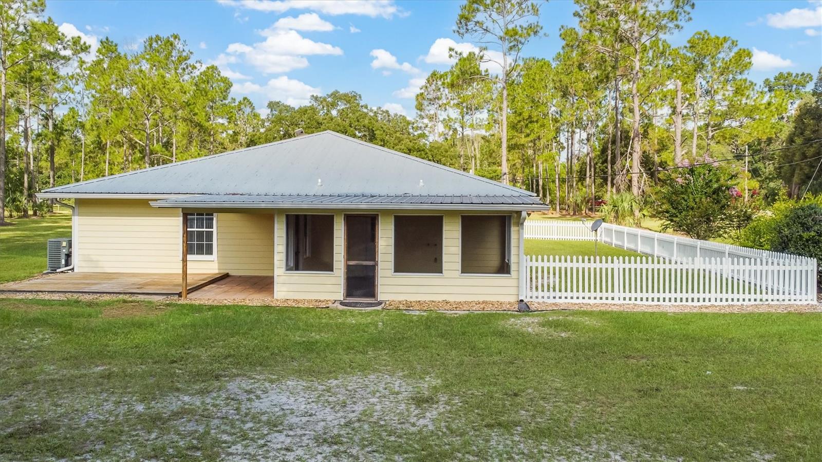 Country Living at its finest. Freshly painted and updated, split plan, 3 bedroom/ 2 bath, concrete block / Hardi board home with metal roof on 7.82 acres. Recently updated kitchen featuring hickory cabinets, black stainless-steel appliances, solid surface Corian countertops, and pressed aluminum backsplash. The bedrooms are of ample size and have plenty of closet storage along with crown molding. Large Livingroom sits in the front of the home and opens into a dining room area next to the kitchen. The home also has a screened in porch and a deck area for grilling. RV hangar with power for a large 5th wheel style RV and a workshop with power and car ports. An additional storage building is available to store a tractor or another car. A greenhouse is also included with the property. Meyer Lemon, orange, and fig trees have been planted. Other updates include a new well approx. three years ago, Roof in 2017 and the AC in 2010. Schedule your showing today.