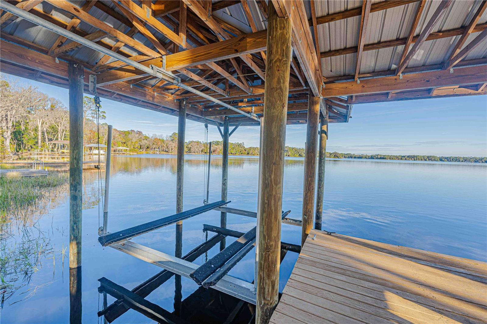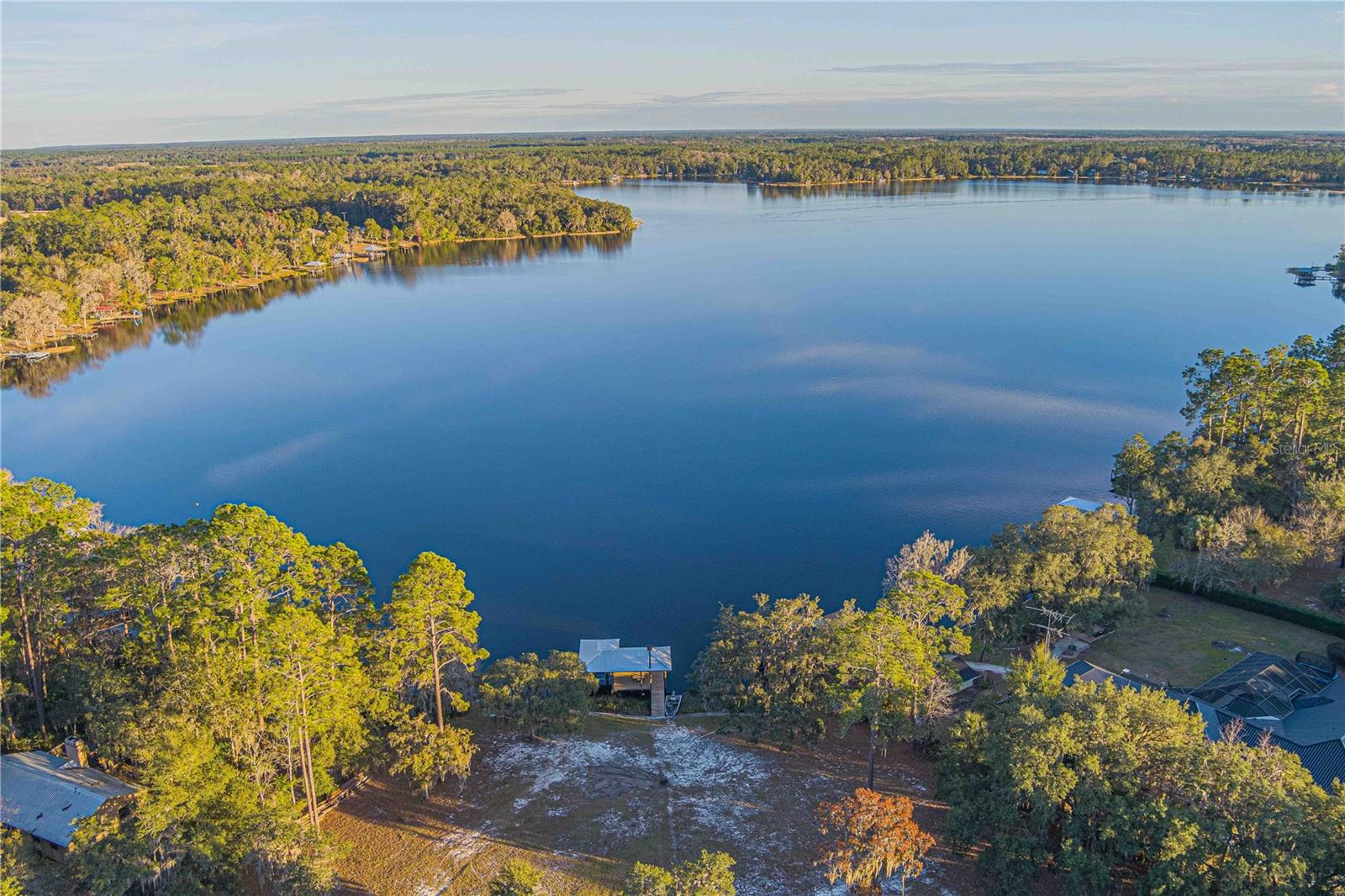 Experience the beauty and natural surroundings on this unique 4.8 acre waterfront estate on Star Lake in Hawthorne, FL. This extraordinary estate offers 125’ of water frontage and direct water access for the perfect blend of rustic beauty and modern convenience. The ideal setting for crafting your perfect Dream Home. Includes underground utilities, a new well, and a covered step-down boat dock complete with boat lift ready for you to enjoy. This property was created for the water enthusiast. Offering your own personal private access to boating, fishing, and swimming on this clear, spring-fed lake. Property includes a 1,500 sq. ft. cement block cottage with fireplace is ready to be finished into a cozy guest house or family retreat. A 2-bedroom mobile home is also located on one the parcels. This property consists of four subdivided buildable lots, each equipped with septic, water, and electric hookups, allowing for future expansion or customization. There is no HOA or deed restrictions here, ensuring you can enjoy this estate as your heart desire. The landscape is adorned with mature and rustic oak trees and hedges, along with rich wildlife, all creating a picturesque and tranquil setting nestled in a peaceful neighborhood on a paved road. This property offers the best of both worlds, seclusion and accessibility. Centrally located between Cedar Key and St. Augustine, and only a short drive to and from the University of Florida in Gainesville, it offers effortless access to both the country and the city life. Embrace the charm of Star Lake living and don’t miss this rare opportunity to own a slice of paradise by residing on this quiet rustic lake house estate today!