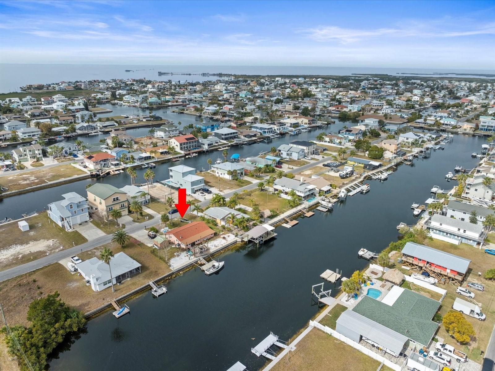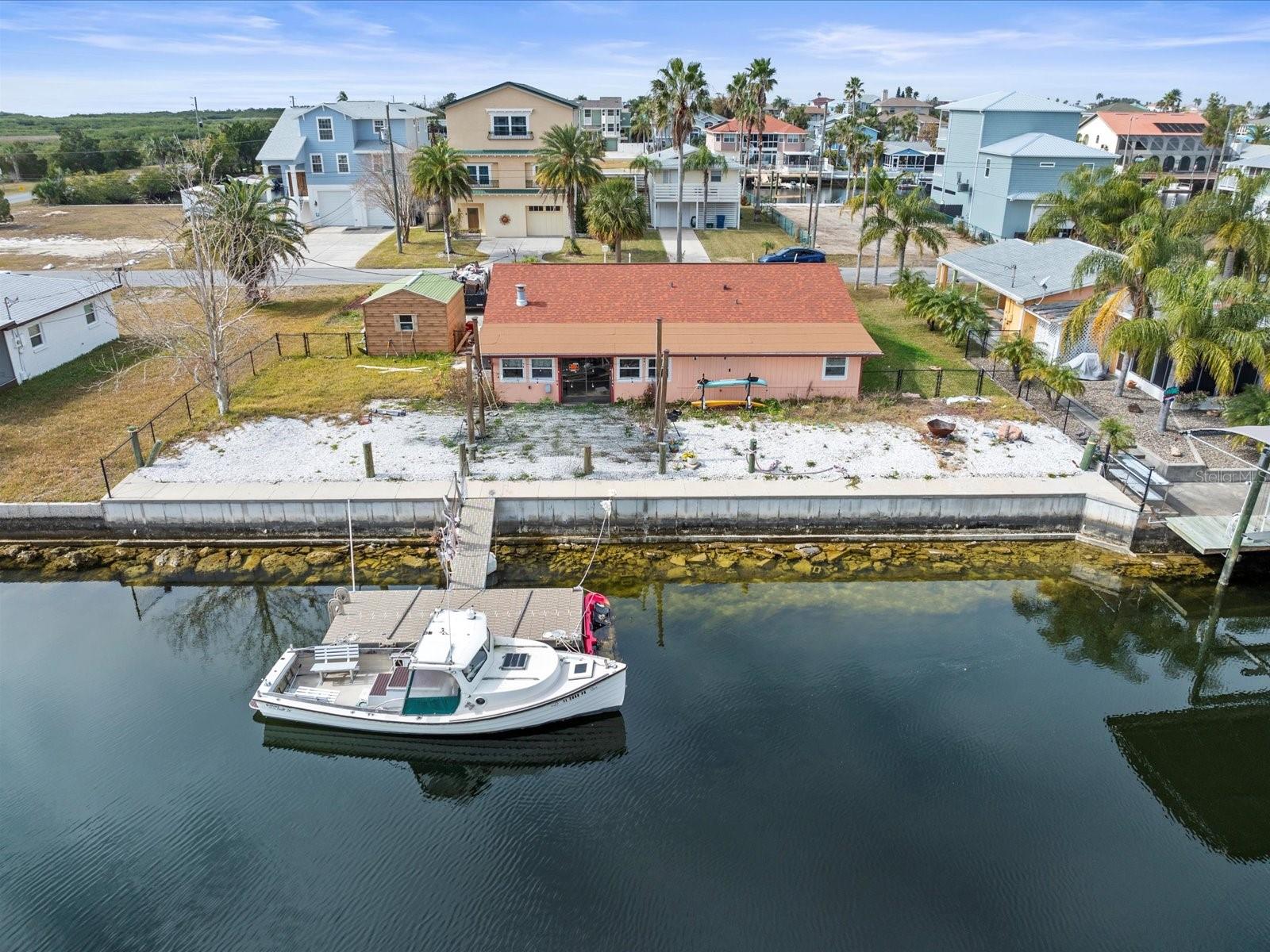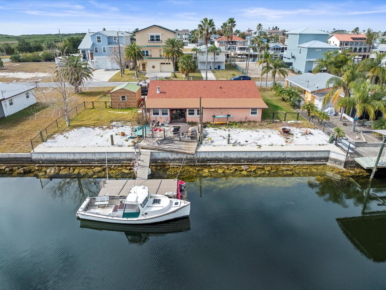 Double Lot with Direct Access to the Gulf of Mexico. Withlacoochee River Electric and Hernando County Water/Sewer on on site. Home was affected by Hurricane Helene. AC, Plumbing and HVAC have been brought up to code. Roof is 3 years old. This double lot has a 100 ft concrete seawall and boat dock for your fishing/boating pleasures. This property was affected by the Hurricanes and is being sold for the value of the improved land that offers easy access to boating and fishing in the Gulf. This is a double lot measuring 100x100 sq ft. Plenty of room for your dream home and a pool.